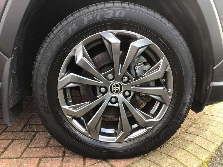 7" TFT multi information display, Analog tachometer, Apple car play and Android auto, Bluetooth system, Cyclist Detection, Drive mode selector, eCall emergency call system, ECO-driving indicator, Electric power steering, EV audible alert, Front parking sensors, Full range intelligent adaptive cruise control, Hybrid system indicator, Lane departure warning system, Lane trace assist, Lights on warning, Memory on adjustable speed limiter, MirrorLink, My T Connected services, Night Time Pedestrian Detection, Power boot opening and closing, Push button start, Rear parking camera, Rear parking sensors, Remote boot door release in cabin, Remote boot door release in key, Road sign assist - RSA, Touch 2 Go navigation system including 3D maps and voice control, Traffic sign recognition, Trip computer, Voice control system, Vehicle Stability Control (VSC), 6 speakers, 8" Multimedia display touch screen, Auxiliary socket for external MP3 player, DAB audio, Toyota touch media system, USB connection, Adaptive automatic high beam, Automatic headlamp levelling, Automatic headlights, Automatic wipers, Automatically retractable door mirrors, Black roof rails, Body colour door handles, Body colour door mirrors, Body colour rear spoiler, Body colour roof, Body coloured bumpers, Body coloured Shark-fin antenna, Dual exhaust pipes, Electric adjustable door mirrors, Electrochromatic rear view mirror, Emergency brake-light signal (EBS), Follow me home headlights, Front fog lights, Front wipers with variable intermittent facility, Heated door mirrors, LED daytime running lights, LED High mounted stop lamp, LED rear combination lights, LED rear lights, Meshed shape upper front grille, Parabola LED headlights, Power front windows, Power rear windows, Privacy glass, Rear screen wiper - intermittent, Rear side wing doors, Rear windscreen defogger, Rear wing door, Silver front under-run, Silver rear under-run, Trailer sway control, Turning signal integrated indicators in door mirrors, 12 volt front socket, 3 rear headrests, 3 seat bench in 2nd row, 60/40 split fold rear seat back, Boot light, Boot liner, Clean air filter, Cloth upholstery, Driver and front passenger personal light, Driver and front passenger Whiplash Injury Lessening seats, Driver and passenger sunvisors with illuminated vanity mirrors, Dual sided deck board in boot, Dual zone automatic air conditioning, Floor mats, Folding rear centre armrest, Front and rear bottle holders, Front centre armrest, Front footwell lights, Front headrests, Front passenger seat, Front/rear roof mounted assist grips, Grey roof lining, Illuminated entry system, Isofix child seat preparation, Leather gear shift with chrome surround, Luggage area tonneau cover, Manual telescopic and tilt 3-spoke leather steering wheel with Chrome insert, Manually height-adjustable sliding and reclining driver seat, Manually reclining and sliding front passenger seat, Multimedia switches on steering wheel, Pollen filter, Rear coat hooks, Rear door armrests, Rear passenger air vents, Rear view display in display audio screen with dynamic guide lines, Reclining rear seats, Satin chrome interior door handles, Sunglasses holder, Telephone and voice recognition switches on steering wheel, 3x3 point rear seatbelts, ABS/EBD, Acoustic vehicle alerting system, Adjustable front driver and passenger seat belt extender, Brake assist function, Brake hold function, Child proof door locks, Collision mitigation braking system, Driver/Front Passenger airbags, Driver/front passenger side airbags, Drivers knee airbag, Electronic parking brake, Electronic Stability Programme (ESP), Front and rear curtain airbags, Front and rear seatbelt reminder, Front passenger airbag detector, Hill start assist, Passenger airbag cut-off device, Pedestrian detection, Pre collision system, Seatbelt pretensioners with load limiters, Toyota safety sense, Traction control, Tyre pressure warning, Glass-breaking alarm sensors, Immobiliser, Intrusion alarm, Light - on and Key in reminder, Motion sensor alarm, Remote central locking, Smart entry + Smart start, Speed sensitive auto door locking, Tilt detection sensors, Piano black centre console with silver insert, Soft-touch black lower dashboard, Soft-touch black upper dashboard with silver insert, Full size spare wheel,