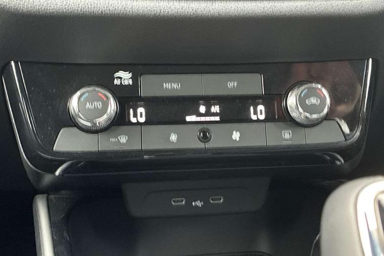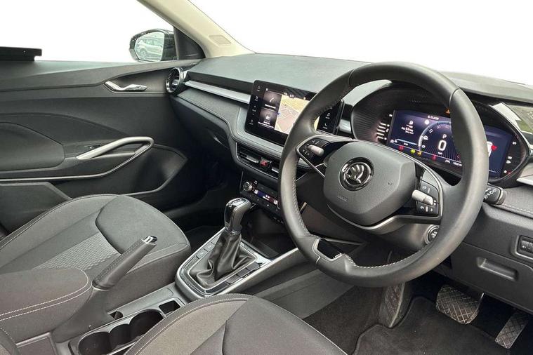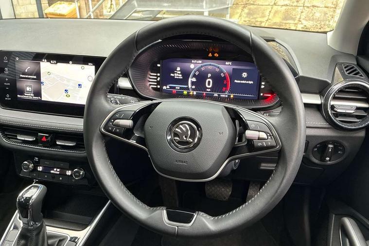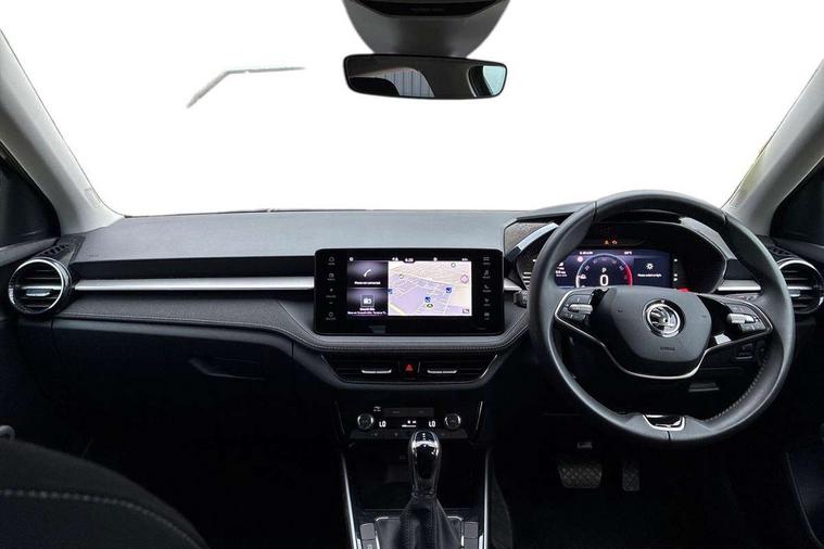 Advanced driver attention and drowsiness monitor, Bluetooth connection, Electromechanical power steering, Exterior temperature gauge, Service interval indicator, Traffic sign recognition, Virtual cockpit with 10.25" colour display, Wireless SmartLink for Apple CarPlay and Android Auto, 6 Speakers (4 in front and 2 in rear), 9.2" colour display skoda navigation system with voice control and web radio, Auxiliary socket for external MP3 player, DAB digital radio reception, Auto dimming rear view mirror, Body colour door mirrors, Body coloured bumpers, Chrome window surround, Door mirror integrated indicators, Front and rear electric windows, Front window wiper intermittent control, Headlight range control - Automatic, Ice scraper in fuel cap, LED 3rd brake light, LED daytime running lights with coming and leaving home feature, LED rear lights, Privacy glass, Rear LED fog light, Rear side wing doors, Rear window wiper with washing nozzles, Roof mounted spoiler, SKODA tailgate lettering in chrome, Unique dark chrome design logo on alloy wheels, 2 LED reading lights in front and rear, 3 rear headrests, Backrest split and folding, Central console with removable cup holder and storage box, Chrome handbrake release button, Comfort seats, Door sills with fabia badging, Dual zone air conditioning with climatronic electronic control, Fabric upholstery, Front centre armrest, Gearshift knob/handle in leather, Hand brake lever handle in leather, Height adjustable front headrests, Height adjustable front seats, Height adjustable steering wheel, ISOFIX and TopTether anchorage points to the outer rear seats, ISOFIX and TopTether on the front passenger seat, Luggage compartment lighting, Manually adjustable lumbar support in front seats, Metallic grey interior door handles, Pollen filter, Rear seat bench unsplit, Single front passenger seat, Skoda lettering on steering wheel, Storm grey headlining, Sun visors with mirror and airbag label on passenger side, Textile floor mats, Ticket holder, Umbrella in drivers door, 3-point height adjustable front seats belts with pretensioner and force limiter, Automatic warning lights in case of crash, Driver and passengers airbag with switch off function, e-Call+, ESC including ABS, MSR, ASR, EDS, HBA and XDS, Front and rear seat belt warning, FRONT ASSIST (AEB City and AEB Inter Urban), Front side airbags, Head airbags, Hill hold control, One tone horn, Pedestrian protection, Three rear 3-points safety seat belts with pretensioner and force limiter including stop function for outer rear seat belts, Tyre pressure monitoring system, Anti-theft alarm system including immobiliser, interior monitoring, backup horn, and towing protection, Central locking with radio remote control, interior controls, SAFE function and 2 foldable keys, Black painted air vents, Metallic grey central console cover, Metallic grey upper decorative trim, Satin black door and side trim panel in front, Textile microsuede grey lower decorative trim with art grey stitching, Anti-theft wheel bolts protection, Super-low rolling resistance tyres,