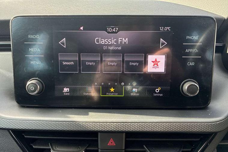 Bluetooth system, E-call, Front assist system, PAS, Service indicator, Speed limiter, Wired smartlink (includes android auto and mirrorlink), 8 Speakers, Auxiliary input socket, DAB Digital radio, Body colour bumpers, Body colour door mirrors and handles, Chrome grille surround, Dimming rear view mirror with black surround, Electrically adjustable and heated door mirrors, Front and rear electric windows, Headlight range control, Heated rear window, LED rear lights - low functionality, LED third brake light, Light sensors, Rain sensor, Rear fog lights, Rear side wing doors, Rear wiper, 12V Accessory socket in centre console, 3 seat bench in 2nd row, Chrome inner door handles, Cloth upholstery, Front head restraints, Glove compartment with illumination, Ice scraper, Isofix child seat fittings on outer rear seats, ISOFIX on front passenger seat, Manual lumbar support for front seats, Rake/reach adjustable steering wheel, Reading lights, Single front passenger seat, Sun visors with illumination on front passenger, Textile floor mats, Third rear headrest, Top tether for front passenger seat, Umbrella in driver's door, 3x3 point rear seatbelts, Airbags - driver and front passenger, ESP, Front passenger airbag deactivation switch, Front side airbags with curtain airbags, Hill hold control, Manual parking brake, Manual rear child locks, One tone horn, Rear disc brakes, Seatbelt reminder for driver an co-driver, Traction control, Tyre pressure monitor, Anti-theft alarm system with interior monitoring, backup horn, towing protection and remote central locking with SAFE system, Anti-theft wheel bolts, Electronic engine immobilizer,