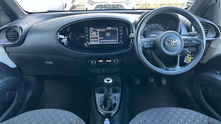 4.2" TFT colour screen, Adjustable speed limiter, Analogue speedometer, Bluetooth connectivity, Digital tachograph, Driver attention alert system, eCall emergency call system, Electric power steering, Intersection turn assist, Key reminder warning, Noise reduction kit, Pre collision system with emergency steering assist, Reversing camera with static guide lines, Smart phone integration with Apple car play/Android Auto, Speed limit display, Start and stop, Vehicle Stability Control (VSC), 4 speakers, DAB digital audio broadcast, Toyota touch 2 multimedia System with 8" Screen display, USB connector, Auto headlights, Auto wipers, Automatic headlights cut-off, Bicycle towing hook, Black side protection mouldings, Black wheel arch mouldings, Body colour door handles, Body coloured front bumper, Boot door scuff plate, Eclipse black rear bumper, Electric heated door mirrors, Follow me home headlights, Front fog lights, Front power windows, Gloss black door mirrors, Gloss black upper front grille, Headlight cut-off reminder, LED daytime running lights, LED front light guide, LED High mounted stop lamp, Manual day/night rear view mirror, Manual headlight levelling, Pagoda roof, Power adjustable door mirrors, Power back door, Privacy glass, Projector halogen headlights, Rain sensor, Rear combination lights LED bulb type, Rear side wing doors, Rear windscreen defogger, Rear windscreen wiper, Short antenna, Variable intermittent windscreen wipers, 12v power outlet - front, 2 seat bench in 2nd row, 3 spoke leather steering wheel, 50/50 split folding rear seat, Adhesive roof headlining, Adjustable speed limiter switch on steering wheel, Audio and telephone switches on steering wheel, Auto air conditioning, Black insert on steering wheel, Black roof lining, Boot light, Centre room light, Chrome interior door handles, Chrome surround on air conditioning buttons, Clean air filter, Console box storage in body color, Fabric upholstery, Floor mats, Front and rear cup holders, Front head rest deco art, Front head restraints, Height adjustable driver seat, Intelligent adaptive cruise control switch on steering wheel, ISOFIX child restraint system on rear seats, Lane departure alert switch on steering wheel, Leather gearshift knob, Manual tilt steering wheel, Manually reclining and sliding driver seat, Manually reclining and sliding front passenger seat, Multimedia switches on steering wheel, Pollen filter, Rear door pockets, Rear head restraints, Satin silver insert on gear shift knob, Single compartment glovebox with lights, Single front passenger seat, Soft tonneau cover, Sun visors with mirror on driver and passenger side, Voice recognition switch on steering wheel, Toyota safety sense pack - Aygo X, Anti lock braking system + Electronic brake force distribution, Child safety door lock, Emergency brake light signal (EBS), Hill start assist control (HAC), Passenger airbag on/off switch, Seat belt reminder for front and rear seats, Supplement restraints system (SRS) - 6 airbags, Traction control, Tyre pressure warning system, Immobiliser, Remote power door locks, Black wheel centre caps, Tyre repair kit,