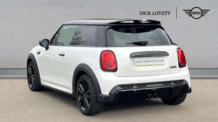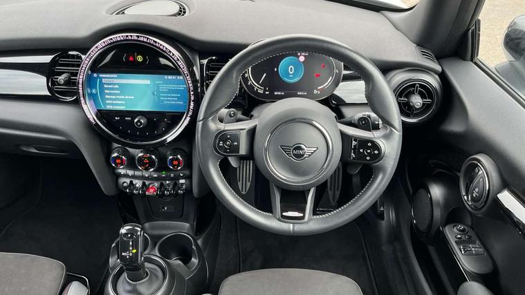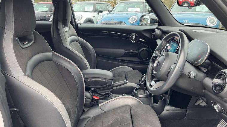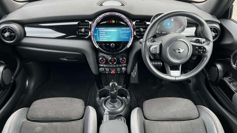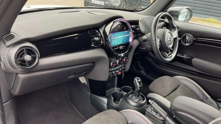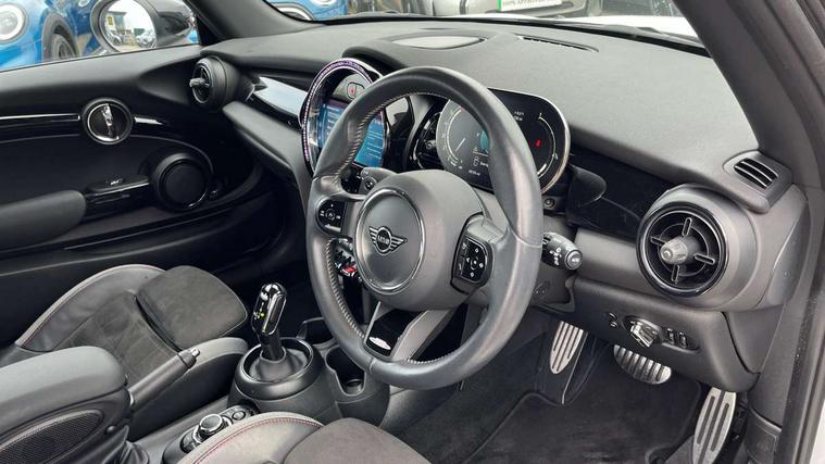 Apple CarPlay, Automatic start/stop function with brake energy recuperation, Compatible mobile phone bluetooth with audio streaming, Cruise control with brake assist, Electro-mechanical speed dependant steering assistance, Flexible car sharing preparation, Instrument cluster, MINI Driving Modes - centre toggle switch to control driving setting (sport, mid and green), Mini E-call, MINI TeleServices, On board computer, Rear park distance control, Service interval indicator, Double Vanos system, Fully variable valve control, High precision injection, Intelligent adaptive suspension, Performance Control, Steptronic sport transmission with double clutch and steering wheel paddles, 8.8" touchscreen with LED ring, FM tuner and DAB digital radio, 3rd brake light, Automatic headlight activation switch, Bonnet scoop, Dynamic brake lights, Electric front windows, Heated rear window, Heated windscreen washer jets, JCW Aerodynamic kit - Front and rear bumpers with sporty JCW styling and part-painted side sills with MINI John Cooper Works door sill finishers, John Cooper Works rear spoiler, LED headlight with closed ring and daytime driving lights, Metal door sill strips with Cooper S, Model logo Cooper S on right of tailgate, Radiator grille chrome border with honeycomb structure including S Badge, Rain sensor window wipers, Rear fog lights, Rear LED lights with union jack design, Rear window wiper, Side scuttle panel with integrated indicator, Sun/heat protection glass, Two central exhaust tailpipes with chrome finisher, White indicator lenses, 12V Accessory socket in centre console, 2 seat bench in 2nd row, 4 lashing eyes in luggage compartment, 60/40 split folding rear seat, Anthracite headliner including grab handles and clothes hooks, Carbon black colour line - Knee roll and door armrest, Chrome interior highlights, Cupholders, Front and rear isofix with front passenger airbag deactivation, Front floor mats in velour, Glove compartment, Height and length steering column adjustment, Interior lighting with 12 different colours across the dashboard, underneath door bezel with illuminated laser-engraved design on central display, JCW Sport seats with integrated headrests, adjustable thigh support and John Cooper Works logo, Leatherette gearshift lever and handbrake gaiters, LED reading lights, vanity mirror lights, front foot well light and spotlight on front seats, Manual air conditioning, Mechanical seat adjustment - forward/back & backrest for front seats and driver seat height adjust, Multifunction steering wheel, Passenger seat height adjuster, Single front passenger seat, Storage compartments in doors, Storage pocket on back of front seats, Sunvisors with vanity mirrors, Walknappa leather steering wheel with grey seam and John Cooper Works badge on Piano Black lower steering wheel spoke, Piano black exterior pack - Mini Hatchback Cooper S, 3 point seatbelts on all four seats, 6 Airbags - front, side, head and seat belt tensioners, Anti-lock braking system (ABS), DSC - Dynamic Stability Control, Front and rear disc brakes, Two tone horn, Tyre pressure monitoring system, Alarm system with tilt sensor, monitoring doors, bonnet interior and tailgate, Electronic vehicle immobiliser, Start/stop toggle with keyless go, Piano black interior trim, Tool kit,