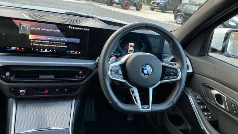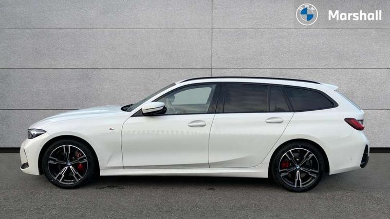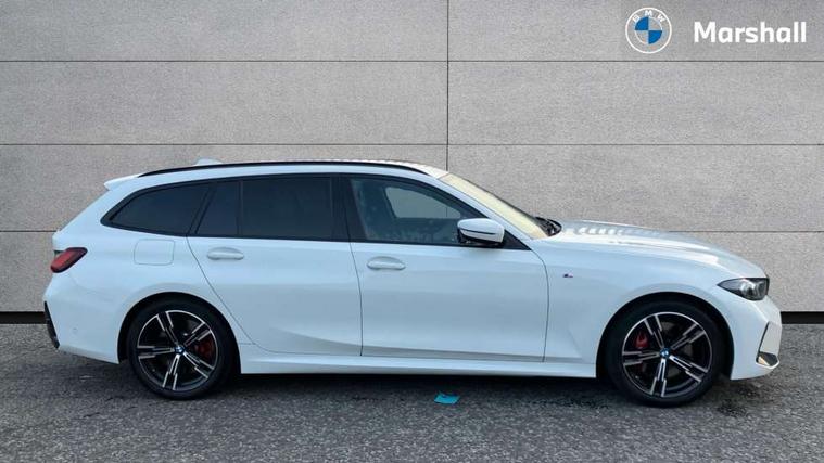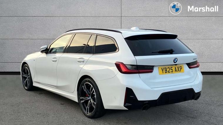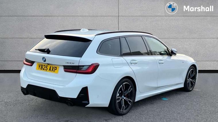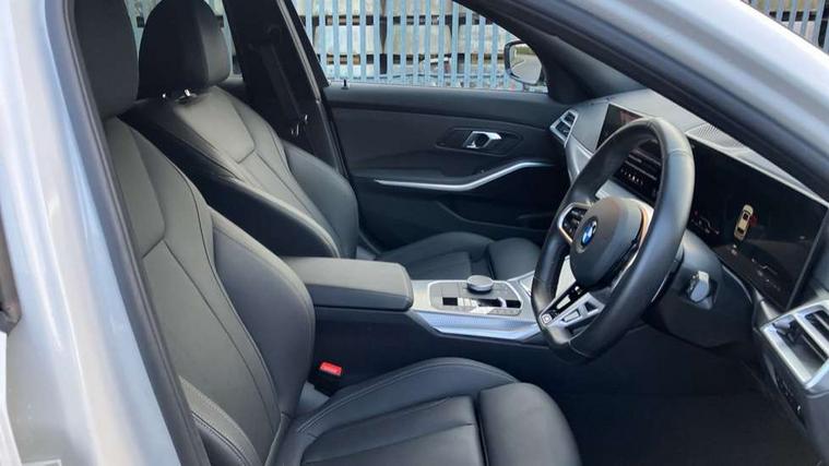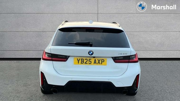 Active guard plus, Attentiveness assist, Automatic Start/stop button, Bluetooth Wi-Fi interface, BMW iDrive, BMW Teleservices, ConnectedDrive Services - last state call, Electric bootlid, Live cockpit plus with Navigation + 12.3" instrument display + 14.9" display, Intelligent voice assist, 2 USB, 4G LTE connect, Oil sensor for level and grade, Personal e-SIM, Shifting point display, Variable sport steering, Double joint spring strut front axle, Electronic differential lock control (EDLC), Fuel tank breather system, Steptronic Sport automatic transmission with steering wheel mounted gearshift paddles launch control and xtreme drive lever control, DAB tuner, 3rd brake light, Auto dimming rear view mirror, Automatic headlight beam throw control with load dependent regulating reaction, dynamic compensation of braking dive and acceleration squat, Bi-LED Low and high beam headlights, BMW emblem, engine compartment lid and tailgate, Body colour roof fin, Door sill strips, Electric windows - front and rear, with open/close fingertip control, anti-trap facility and comfort closing, Fading support, Follow me home headlight function, Front and rear bumper system with replaceable deformation elements, Front apron plastic in body colour, Fuel filler flap - right rear in body colour, Heat protection glazing on front windows and windscreen, Heated washer jets, High gloss chrome kidney frame with high gloss black kidney struts, High gloss shadow line roof rails, LED daytime running lights, LED rear lights, LED turn indicator, Licence plate panel integrated into front bumper and tailgate, M high gloss shadow line exterior trim, Matt black B-pillar finsher, Matt black window recess cover, One piece front bumper cover including towing eye cover in body colour, Rain sensor with automatic headlight activation, Rear side wing doors, Rear wiper, Reversing lights, Side frame decorative moulding black matt, Trailer stabilisation logic, Visible exhaust tailpipe finisher, Welcome lights in interior and door handle area, 12V power socket in front storage compartment, 2 front cupholder in centre console with clamping elements and matt black inlay, 3 seat bench in 2nd row, 3 spoke M Sport multifunction flat bottom leather steering wheel, 3 zone automatic air conditioning, 40:20:40 split folding rear seat with loading system, Anthracite headlining, Armrest integrated in front and rear door trim + front centre console armrest, BMW ID, Cruise control operation in steering wheel, Driving experience mode switch, Folding rear centre armrest with 2 cupholders, Front and rear headrests, Front and rear velour floor mats, Front reading light, Heated front seats, Height adjustable mechanically and infinitely variable steering column, Illuminated armrest storage compartment, Illuminated glove compartment, Illuminated luggage compartment, Lashing eyelets in luggage compartment, Single front passenger seat, Sunvisors with illuminated vanity mirrors and ticket pocket, Toolkit located in luggage compartment, Connected pack professional - 3 Series Saloon/Touring, Interior and exterior mirror pack - 3 Series Touring/Saloon, M sport exterior styling pack - 3 Series Saloon/Touring, Parking assistant pack - 3 Series, 3x3 point rear seatbelts, BMW emergency call, Child locks on rear doors, Crash sensor activating of airbags, Unlocking doors, hazard warning lights, interior light, safety battery terminal, Drive-off assistant, Driver and front passenger with seat occupancy detection for driver's and passenger side, Driver and passenger side airbags, body protection at side and airbags deploy from seat backrests, Dry braking, Dynamic brake control, Dynamic stability control + (DSC+) - Anti-lock Braking System (ABS) with brake assist and cornering brake control + Automatic Stability Control (ASC), Dynamic Traction Control - DTC, Electric parking brake including automatic hold function and automatic release of the parking brake when driving off, Front airbag deactivation, Front airbags for driver and front passenger, Head airbags in 1st and 2nd row, head protection at side, curtain airbags open from headliner above 1st and 2nd row, Plastic fuel tank, Side impact protection, Tyre pressure sensors, Ventilated front and rear disc brakes, Warning triangle and first aid kit, Alarm system, Centre lock switch, Closing system with central locking, Electronic vehicle immobiliser, Locking wheel bolts,