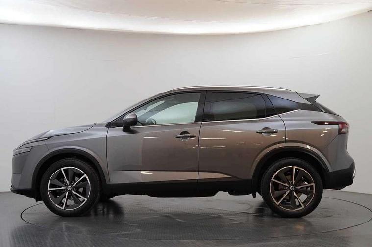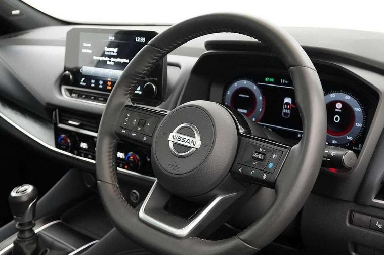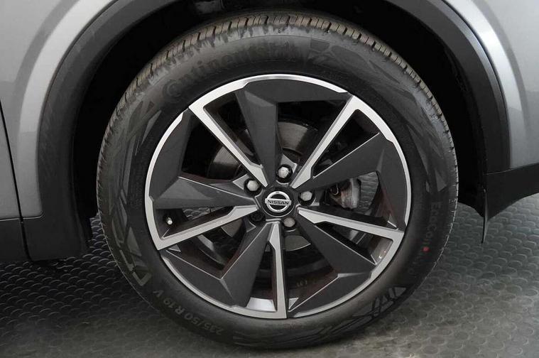 Blind spot warning, Drive modes (sport, normal, eco), Electric speed sensitive power steering, Emergency and breakdown call, Front and rear parking sensors, Full Digital 12.3" TFT Digital Combimeter, Google maps services - search, weather, 3D maps and Google street view, Hands free power tailgate, Idle stop/start system, Intelligent around view monitor, Intelligent Cruise control (ICC), Intelligent driver alert system, Intelligent forward collision warning, Intelligent lane intervention, Lane departure prevention, Lane departure warning system, Moving object detection, Nissan connect 9" touchscreen infotainment system, Nissan connect navigation, Push button starter, Rear cross traffic alert, Remote control services - door locks, lights, horn and car locator, Telematics - notifications and connectivity services, TomTom live traffic services, Traffic sign recognition with legal speed adjustment, Trip computer, Virtual personal assistant and firmware over the air capability, Wireless Apple CarPlay and wired Android Auto, Wireless charging pad, 6 speakers, AM/FM audio system with DAB, Bluetooth audio streaming, Front USB connections (Type-A and Type-C), Rear USB charging only ports (Type-A and Type-C), Auto dimming rear view mirror, Auto rear wiper when reversing, Body colour mirror caps, Body coloured door handles, Bodyside mouldings, Chrome side window finisher, Door handle with button, Dusk sensor, Electric auto folding door mirrors, Electrically adjustable and heated door mirrors with LED turn indicator, Fixed panoramic glass roof with electric sunshade, Follow me home headlights, Front and rear LED turning signals, Intelligent auto headlights, LED daytime running lights, LED rear lights, One touch front and rear electric windows with remote opening and closing, Partially body coloured bumpers, Privacy glass, Rear roof spoiler, Rear side wing doors, Rear styling plate, Roof rails, Shark fin antenna, Splash free rain sensing wipers, Super UV and infrared cut glass, Three blink turn signal, 12v power socket in dashboard and luggage, 2 way electrical driver lumbar adjustment, 2x Rear coat hooks, 3 bench rear seats in 2nd row, 3 rear headrests, 4 folding assist grip, 6 Luggage hooks - 4 on floor, 2 on side, 60/40 split folding rear seat bench, 8 way electric adjustable drivers seat, Ambient lighting around centre console, Ambient lighting in front doors, Centre console storage tray, Chrome interior door handles, Cloth/syntech leather monoform upholstery, Dark headlining, Driver and front passenger sunvisors with illuminated vanity mirrors, Driver seat back pocket, Dual zone automatic climate control with pollen filter, Front and rear door storage, Front cupholders x 2, Front door with bottle holders, Glovebox with light, Hard trunk cover, Height adjustable front headrests, Leather shift knob, Leather steering wheel, Luggage board system, Luggage space lighting, Manual lumbar support on passenger seat, Manually adjustable passenger (slide recline + lifter), Multifunction steering wheel, Passenger seat back pocket, PVC front centre console and armrest, Rear armrest with 2 cupholders, Rear door bottle holders, Single front passenger seat, Soft PVC kneepad, Steering wheel switches, Tilt/telescopic adjustable steering wheel, Two rear isofix child seat anchorage points with top tether, Welcome light and doors with console tray ambient lighting, Drive assist pack - Qashqai, Heat pack - Qashqai, Tech Pack (Drive Assist + HUD), 3x3 point rear seatbelt pretensioners + load limiters, ABS, ESP, EBD and brake assist, Active brake limited slip, Auto hold function, Child locks on rear doors, Curtain and front side, far side airbags, Driver and passenger airbags, Driver, passenger and 2nd row rear seat belt reminder, Electronic parking brake, Front seatbelt pretensioners + load limiters, Height adjustable front seatbelts, Hill start assist, Intelligent blind spot intervention, Intelligent front emergency braking with pedestrian, cyclist recognition and junction assist, Intelligent rear automatic braking, Tyre pressure monitoring system, Vehicle dynamic control, Capless fuel filler, Engine immobiliser, Nissan i-key, Rear bumper with silver insert, Remote central door locking with deadlocking, Thatcham Cat.1 alarm, 19" Alloy wheels,