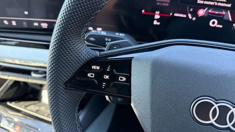 Adaptive cruise control, Advanced driver attention and fatigue montior, Audi application store, Audi assistant, Audi connect emergency call and service, Audi drive select, Audi virtual cockpit plus with 11.9" OLED colour display, Automatic start/stop system with coasting functionality, Camera based traffic sign recognition, Intersection assist, Lane departure warning, MMI navigation plus with high resolution 14.5" OLED touchscreen colour display, Park assist plus, Parking system plus with 360 display, Progressive steering with servotronic, Rear view camera, Smartphone interface, Swerve assist and turn assist, Traffic sign based speed limiter, Sports suspension lowered by 20mm, 2 USB-C ports in both the front and rear, Audi sound system impressive sound with 8 loudspeakers including centre speaker and subwoofer, 6-channel amplifier with a total output of 180 watts, DAB digital radio reception, Smartphone compartment with wireless charging, Aluminium roof rails, Aluminium window trims, Auto dimming rear view mirror, Body colour door mirrors, Door mirrors - electrically adjustable, heated, folding and auto dimming on both sides, Front and rear electric windows, Front door sill trims with aluminium inlays, illuminated with 'S' logo, High beam assist, LED headlights Plus incl. digital daytime running lights, turning light, all-weather light, motorway light, manouevring light and intersection light, LED rear lights pro incl. dynamic rear indicators and illuminated light strip with animated coming and leaving home function, LED third brake light, Privacy glass, Rear and side windows with heat insulating glass, Rear side wing doors, Rear wash/wipe, S Line badges on the front wings, S line bumpers, radiator grille and diffuser in phantom black and diffuser insert in matt anthracite, White rhombus logo projection light in exterior mirrors, Windscreen with acoustic glazing, 3 rear headrests, 3 seat rear bench, 3 spoke leather steering wheel with multi-function buttons with touch control, flattened on top and bottom, with S badging and contrast stitching, 3-zone automatic climate control, 40:20:40 split folding rear seat bench with centre armrest and cup holders, Comfort front centre armrest, Front and rear floor mats, Front seats with manual adjustment for position and 4-way electric lumbar support, Front sport seats with integrated headrest and S embossed logo, Headlining in black cloth, Heated front seats, i-Size child seat mounting on the front passenger side and outer rear seats, i-Size and top tether on the outer rear seats, Luggage compartment lid, electrically opening and closing, Manual steering column height and depth adjustment, Single front passenger seat, Stainless steel pedals and footrest, Steering wheel grips in perforated leather and shift paddles, Ambient lighting package plus - A5, 3x3 point rear seat belts, Driver airbag, Electric child safety locks, First aid kit with warning triangle and vests, Front emergency brake assist, Front passenger airbag, Front passenger airbag deactivation, Front side airbags with head airbag system and front interaction airbag, Hill hold assist, Seat belt monitoring with rear seat occupant reminder, Tyre pressure loss indicator, Anti theft alarm, Anti-theft wheel bolts, Keyless Go, Accent surfaces and control buttons in gloss black, Black dashboard with contrast stitching, Inlays in matt brushed aluminium with linear embossing, anthracite, Softwrap in leatherette with contrast stitching, Upper and lower interior elements in leatherette, Tyre repair kit,