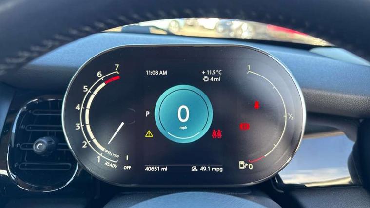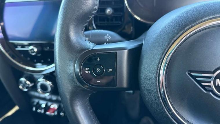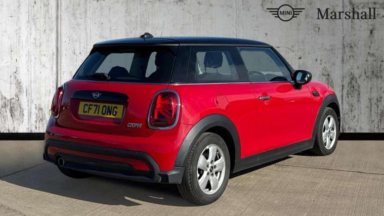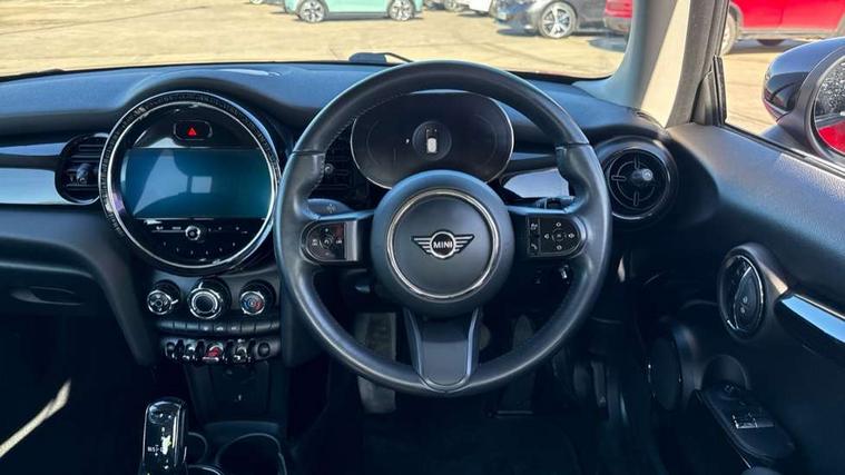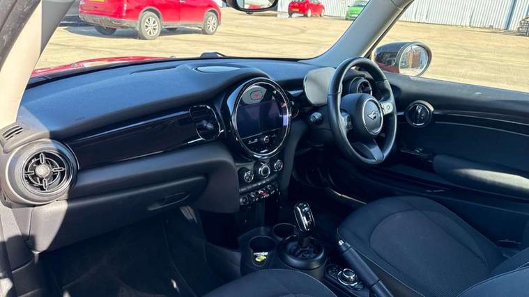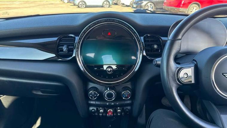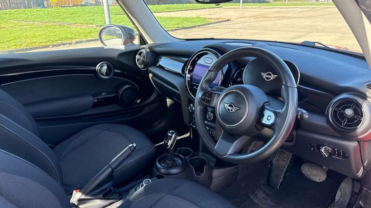 Automatic start/stop function with brake energy recuperation, Compatible mobile phone bluetooth with audio streaming, Cruise control with brake assist, Electro-mechanical speed dependant steering assistance, Flexible car sharing preparation, Instrument cluster, Mini E-call, MINI TeleServices, On board computer, Service interval indicator, Double Vanos system, Fully variable valve control, High precision injection, Performance Control, Steptronic transmission with double clutch, 4 speakers in front door trims and underneath front seats, 8.8" touchscreen with LED ring, FM tuner and DAB digital radio, Automatic headlight activation switch, Body colour fuel filler cap, Chrome border high gloss black slats radiator grille, Dynamic brake lights, Electric front windows, Exhaust tailpipe on left with chrome finisher, Heated rear window, Heated windscreen washer jets, LED headlight with closed ring and daytime driving lights, Metal door sill strips with MINI imprint, Model logo Cooper on right of tailgate, Rain sensor window wipers, Rear fog lights, Rear LED lights with union jack design, Rear window wiper, Side scuttle panel with integrated indicator, Sun/heat protection glass, White indicator lenses, 12V Accessory socket in centre console, 4 lashing eyes in luggage compartment, 60/40 split folding rear seat, Ambient lighting, Carbon black colour line - Knee roll and door armrest, Chrome interior highlights, Cupholders, Front and rear head restraints, Front and rear isofix with front passenger airbag deactivation, Glove compartment, Height and length steering column adjustment, Interior lighting with 12 different colours across the dashboard, underneath door bezel with illuminated laser-engraved design on central display, Leatherette gearshift lever and handbrake gaiters, LED reading lights, vanity mirror lights, front foot well light and spotlight on front seats, Manual air conditioning, Mechanical seat adjustment - forward/back & backrest for front seats and driver seat height adjust, Multifunction steering wheel, Passenger seat height adjuster, Satellite grey headlining including grab handles and clothes hooks, Sport leather steering wheel with speed limiter and audio/communication controls, Storage compartments in doors, Sunvisors with vanity mirrors, Tool kit, Velour floor mats, 3 point seatbelts on all four seats, 6 Airbags - front, side, head and seat belt tensioners, Anti-lock braking system (ABS), DSC - Dynamic Stability Control, Front and rear disc brakes, Single tone fanfare horn, Tyre pressure monitoring system, Alarm system with tilt sensor, monitoring doors, bonnet interior and tailgate, Electronic vehicle immobiliser, Start/stop toggle with keyless go, Piano black interior trim, Tyre repair kit,