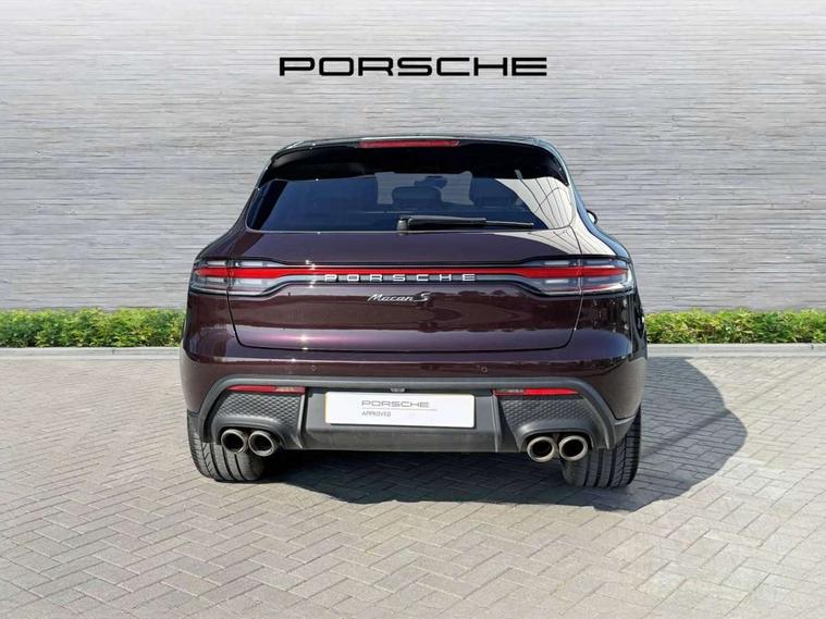 Analogue clock on dashboard, Automatic start/stop system, Automatic tailgate, Digital boost pressure gauge on colour display of instrument cluster, eCall emergency call system, Instrument cluster with high resolution 4.8-inch TFT display, gear indicator for PDK, service interval display, external temperature indicator, fuel gauge, Off-road button, On board computer, Porsche Communication Management (PCM) including online navigation module, mobile phone preparation, audio interfaces and voice control system, Sports button in centre console, 7-Speed Porsche Doppelkupplung (PDK) with automatic mode and manual controls (gearshift paddles) on steering wheel, Direct fuel injection (DFI), Gasoline particulate filter, Steel spring suspension, VarioCam Plus variable valve timing and switchable valve lift, 2 USB sockets in rear centre console, Apple CarPlay with Siri voice recognition, Connect Plus including online navigation, LTE communication module with SIM card reader, wireless internet access, Porsche Car Connect services, DAB Digital radio, Porsche Vehicle Traking System Plus (PVTS Plus), Smartphone compartment with wireless charging, Two USB C charging and connectivity ports in the front centre console storage compartment, Active radiator grille shutters, Automatic headlight activation including welcome home lighting, Bumper system with high strength cross members and two deformation elements + One threaded fixture point for towing eye contained in onboard tool kit, Dynamic cornering lights, speed-sensitive headlight and dynamic range control, adverse weather function, four-point LED daytime running lights, Electric front and rear windows with remote closing function + anti trap + one touch, Electrically folding and heated exterior mirrors, Front light modules with LED position lights and direction indicators, Front windscreen wipers with two speeds, intermittent wipe and rain sensor, Front with integrated cooling air intakes, Fully galvanised body, Heated rear window with automatic switch off, High level 3rd LED brake light integrated into roof spoiler, Loading edge protection in aluminium, Rear side wing doors, Rear window wiper with intermittent function and washer jet, Roof spoiler in high gloss black, Towbar preparation, 3 adjustable rear headrests, 3 rear seats, 4 way adjustable front head restraints, 40:20:40 split folding rear bench seat, Cloth hook b-pillar, Fold up centre console armrest with fore/aft adjustment, Front and rear bottle holders in door panels, Front passenger seat, Glove compartment, Isofix fastening system for child seats on outer rear seats, Luggage compartment cover, Particle/pollen filter with active carbon filter, Rear armrest with 2 cupholders, Storage bin in centre console, Storage compartment in side of luggage compartment and storage compartment in spare wheel recess, Storage pocket in front and rear doors, Two integrated cup holders in front with variable diameter, Two socket 12V power outlets in front console and luggage compartment, Uncovered storage compartment in centre console, Ambient comfort lighting pack - Macan, Lower exterior trim package in black - Macan, 3-point automatic seatbelts with front and outer rear seats pretensioners and force limiter + manually height adjustable seatbelt + reminder warning, 6-piston aluminium monobloc fixed caliper brakes at front, internally vented brake discs, Auto hold function, Brake discs with 360 mm diameter at front and 330 mm at rear, Child locks on rear doors, Curtain airbags along entire roof frame and side windows from A pillar to the C pillar, Electronic parking brake, Front passenger airbag deactivation facility for installation of child seats indicator in overhead console, Front side airbags integrated into seat, Full size driver and passenger airbags, Multi-Collision braking, Porsche hill control (PHC), PTM(Porsche Traction Management) and All-wheel drive with map-controlled multi-plate clutch, Roll over sensor for curtain airbag and seatbelt pretensioners, Side impact protection in doors, Tyre pressure monitoring system, Vehicle stability system, Porsche stability management (PSM) including ABS, ASR, ABD, MSR and trailer stability management, Vented discs brake with combination floating calipers at rear, Alarm system with ultrasonic interior surveillance, Dashcam prep, Engine immobiliser with key transponder, Remote control central locking, Accent trims with silver coloured finish, Tyre repair kit,