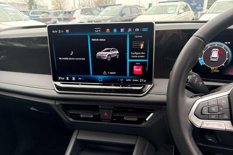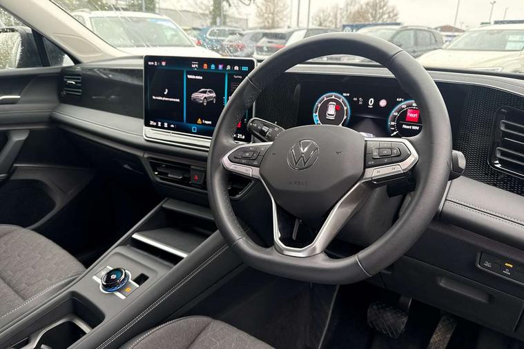 Adaptive cruise control (ACC), Advanced driver attention and drowsiness monitor, Bluetooth mobile phone interface, Digital Cockpit Pro - 10.25" high resolution dash display screen with customisable menus and information, Dynamic road sign display, E-Sim card for online connectivity, eCall emergency call service, Front Assist - Autonomous emergency braking with pedestrian and cyclist monitoring, Lane change system, Side assist, Rear traffic alert and Exit warning system, Lane keeping system Lane Assist, Multifunction front facing camera, Oncoming vehicle braking when turning including swerve support, Park assistance plus with front and rear parking sensors, Power assisted steering with speed sensitive, Start/stop system with regenerative braking, Warning signal and warning light for front and rear seatbelts not fastened, Wireless App-Connect, Front wheel drive, Digital radio reception (DAB), Diversity antenna for FM reception, Ambient lighting with logo projection, Auto dimming interior rear view mirror, Automatic headlight control system, Body coloured bumpers and air intake with chrome trim, Body coloured door handles, Body-coloured exterior mirror housings, Coming/leaving home lighting function, Heat insulating glass in side and rear windows, Heat insulating windshield, Heated rear window, High level 3rd brake light, Illuminated door handle recesses, Illuminated lightline between headlamps, Rain sensor windscreen wipers, Rear fog light on one side, reversing light on both sides, Rear side wing doors, Rear wiper, 12V outlet in center console rear and in luggage compartment, 12V socket in centre console, 3 bench rear seats in 2nd row, Air care climatronic 3 zone air conditioning system with rear air conditioning control panel, Carpet mats, front and rear, Centre console with illuminated storage compartment with sliding cover and two drinks holders, Ceramique headlining, Door and side trim panel in foam film and woven fabric, Front centre armrest, ISOFIX anchors for child seats on outer rear seats and front passenger seat compatible with i-Size, Mechanical rear seat release, Power adjustable lumbar support in front, Rear bench seat, split folding, longitudinally movable and folding with load-through hatch and centre armrest, Safety optimised front head restraints, Single front passenger seat, Sun visors with illuminated vanity mirrors, Three rear head restraints, Variable luggage compartment floor, Comfort package incl. Memory feature for Park assist and Safelock - Tiguan, Design package - Tiguan, 3 point seat belt for centre rear seats, 3 Point seat belts in front with pretensioners, 3 point seatbelts in outer rear with ECE label, Driver and front passenger airbag with front passenger airbag deactivation, Electronic parking brake with auto hold, Front and rear curtain airbags, Front and rear side airbags, Front centre airbag, Front disc brakes, Manual child proof rear door locks, Rear disc brakes, Two tone horn, Warning triangle, Anti theft wheel bolts, Soul instrument panel,