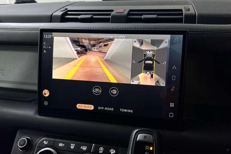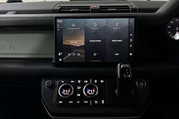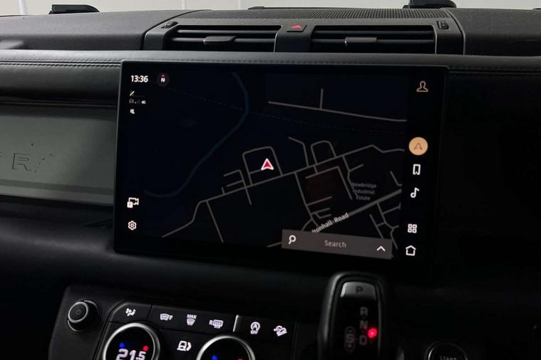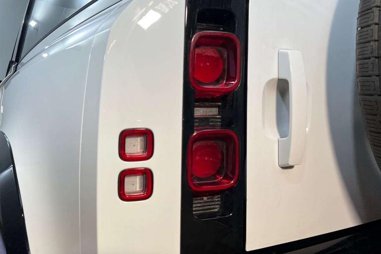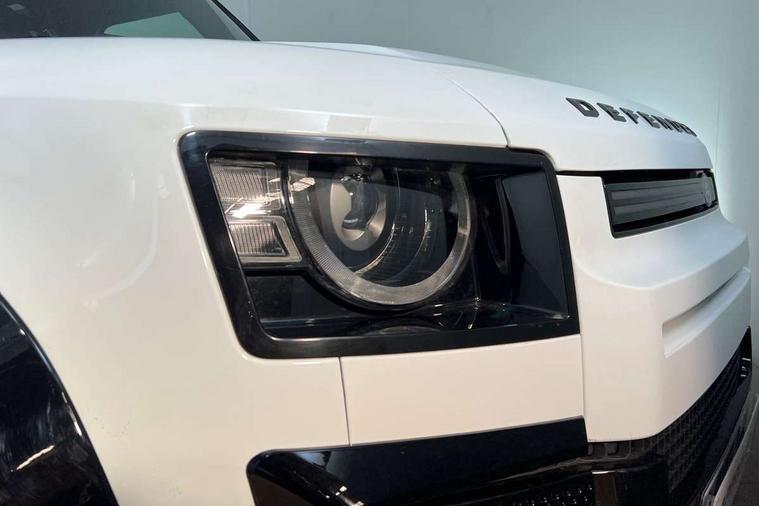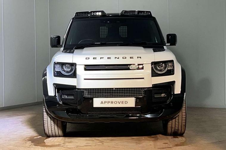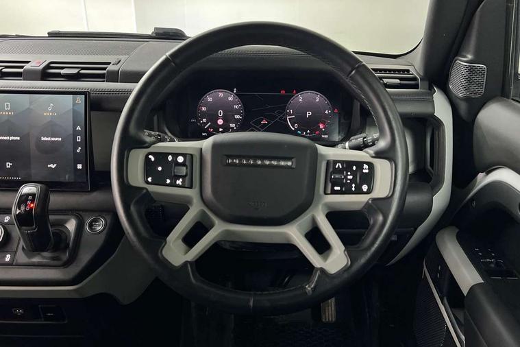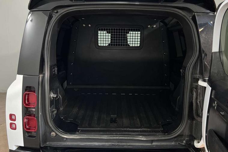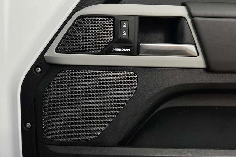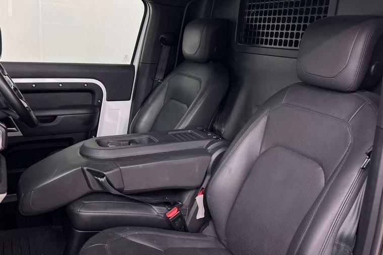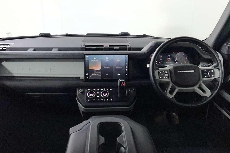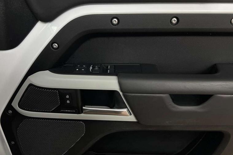 Customer Configurable Autolock, 11.4" touchscreen, 360 parking aid, 3D Surround Camera with 360 View, 180 Rear View, Front Traffic Detection, Forward Vehicle Guidance, Tow Hitch Assist and clear sight Ground View, Adaptive cruise control, Blind spot assist, Brake Hold, Driver condition monitor, Electric power assisted steering (EPAS), Lane keep assist, Low traction launch, Pivi pro connected, Rear collision monitor, Rear traffic monitor, Traffic sign recognition adaptive speed limiter, Trip computer, Tyre pressure monitor, Wade Sensing, Android Auto, Apple CarPlay, DAB Radio (Digital Audio Broadcasting), Meridian 280W sound audio system with 7 speakers with subwoofer, Alpine lights, Assisted tailgate, Auto High Beam Assist, Automatic headlight levelling, Automatic headlights and rain sensitive front wipers, Centre high mounted stop light, ClearSight interior rear view mirror, Electric heated/power fold door mirrors with approach lights and auto dimming driver side, Electric windows with one touch open/close and anti-trap, Exterior signage panel, Follow me home lighting, Front fog lights, Heated rear window with timer, Heated windscreen, LED tail light, Privacy glass, Puddle lights, Rear fog lights, Rear wash wiper, Side-hinged tailgate, Standard roof, Standard tread plates, 14 way heated and cooled electric adjustable memory front seats with 4 way manual headrests, Additional lashing points, Dual zone climate control, Durable rubber cabin flooring, Electric adjustable steering column, Footwell lights, Front jump seat and folding front centre armrest, Full height bulkhead behind row 1 seats, Glovebox storage, High sided rubber mats, Loadspace cover, Loadspace hooks, Loadspace rubber mat, Overhead stowage for sunglasses, Rear centre headrest, Rear reading light, Standard seating configuration, Sunvisors with illuminated vanity mirrors, Twin front cupholders with cover, Upgraded loadspace LED lighting, Online pack - Defender with data plan, Brake pad wear indicator, Electronic traction control, Emergency braking, Front airbags, with passenger seat occupant detector, Power operated child locks, Remote for (e-Call, Optimised assistance call, InControl app, Climate, beep and flash and door), Seat belt reminder, Intrusion sensor, Keyless entry system, Locking wheel nuts, 8 speed automatic transmission, ABS and EBA, All wheel drive, CBC - (Cornering brake control), Dynamic stability control, Electronic brake force distribution, Electronic park brake, Gradient acceleration control, Hill Descent Control, Hill start assist, Particulate filter (DPF), Push button start, Roll stability control, Trailer stability assist, Twin speed transfer box (high/low range), Extended leather upgrade,