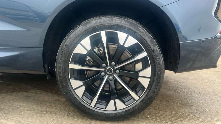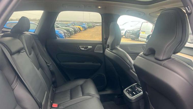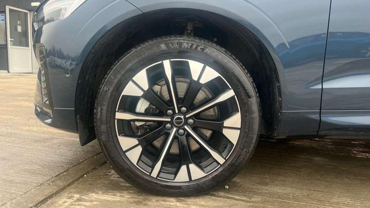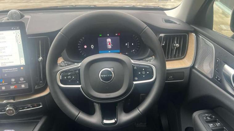 11.2" centre console touch screen, 12.3" Progressive Driver Display, 360 degree surround view parking camera with side proximity sensors, Adaptive cruise control, Adjustable steering wheel force, Android auto (Wired), Apple carplay (wired), Bluetooth handsfree system, Driver alert control with lane keeping aid, Emergency services call system, Front and rear park assist, Google Automotive Services, Intelligent speed assistance, Oncoming Lane Mitigation, PAS, Power operated tailgate with handsfree opening and closing, Service interval indicator, Speed limiter, Speed sensitive steering, Trip computer, Volvo cars services with app, Volvo on call with App, Wireless/Inductive Mobile Phone Charging, 8 speed automatic transmission with start/stop + manual change functions, Active four-C chassis + four corner adaptive damper with electronic rear air suspension, DAB Digital radio, Premium sound by Bowers and Wilkins, dirac live, dolby pro logic II surround sound, 14 speakers/1100W output and fresh air subwoofer, Steering wheel remote infotainment controls, Active bending headlights with adaptive shadow technology, Adaptive brake lights with high level LED brake lights, Auto dimming interior + exterior mirrors, Automatic headlight levelling system, Automatic LED Headlights + Active high beam incorporating daytime running lights, Dark tinted windows for rear side windows and cargo area, Electric adjustable/heated/auto power folding door mirrors, Electric front+rear windows, Front aluminium tread plates, Headlight cleaning system, High gloss black door mirrors and window surround, High gloss black front and rear bumper decoratives, High gloss black mesh front grille with high gloss black surround, Home safe and approach lighting, Integrated roof rails in high gloss black, LED front fog lights with static cornering light function, Power glass tilt and slide panoramic sunroof with sun curtain, Puddle lights, Rain sensor with automatic windscreen wiper activation, Rear side wing doors, Rear wiper, Roof antenna, Roof spoiler, Tinted windscreen, Visible VIN plate, 12V socket in front tunnel console and luggage compartment, 3 seat bench in 2nd row, 4 Zone electronic climate control, A-pillar parking ticket holder, Air purifier particulate matter (PM) 2.5 filter, B Pillar ventilation, Bright metal luggage scuff plate, Centre console cupholders and storage, Charcoal floor mats, Front and rear courtesy lights, Front and rear door pocket illumination, Front cupholder illumination, Front footwell illumination, Front reading lights, Front seat cushion extensions, Glovebox compartment with illumination, Head restraints for all seats, Heated front seats, Heated steering wheel, Height/reach adjustable steering column, Illuminated luggage compartment, Illuminated vanity mirrors + ticket holder, Inner door release handle illumination, ISOFIX attachment on outer rear seats, Load cover, Load protection net, Multi directional lumbar support, Power driver seat with memory + exterior mirrors memory, Power folding rear headrests, Power passenger seat with memory, Rear armrest with cupholder, Rear footwell and front and rear side step illumination, Rear reading lights, Rear seat concealed storage, Single front passenger seat, Tailgate illumination and ambient door lighting, Underfloor stowage compartment, Versatile split folding rear seat - 60/40, Driver assist pack without Adaptive cruise control - XC60, 5 three point seatbelts, City safety with steering support with Pedestrian + cyclist + front collision warning with full auto brake and rear auto brake, Drivers knee airbag, Dual stage driver/passenger airbags, Electronic parking brake with auto hold, First aid kit, Front seats SIPS airbags, Hill descent control - Off-road drive mode, Hill start assist, IC (Inflatable Curtains) - Full Length, Passenger airbag cut-off device, Power child locks on rear doors, Run off Road Mitigation, Run off Road Protection, Seatbelt reminder and pretensioners, SIPS (Side Impact Protection System), Slippery road and hazard light alert, Stability and Traction Control with Spin control, Engine Drag Control and Corner Traction Control, Tyre pressure monitoring system, Vehicle deceleration control with Anti-lock Brake System, Electronic Brake Distribution and Emergency Brake Assist, Warning triangle, WHIPS whiplash protection system - front, Anti-theft alarm including immobiliser/volume sensor + level sensor, Key integrated remote control central locking + fuel flap with deadlocking system and auto open/close power windows, Keyless Drive (includes Keyless Entry and Keyless Start), Locking wheel nuts, Private locking for tailgate, Tailored instrument panel with contrast stitching, Summer tyres,