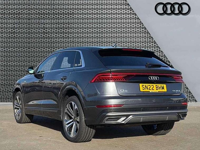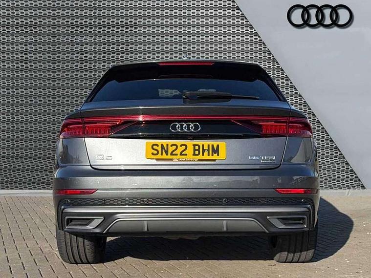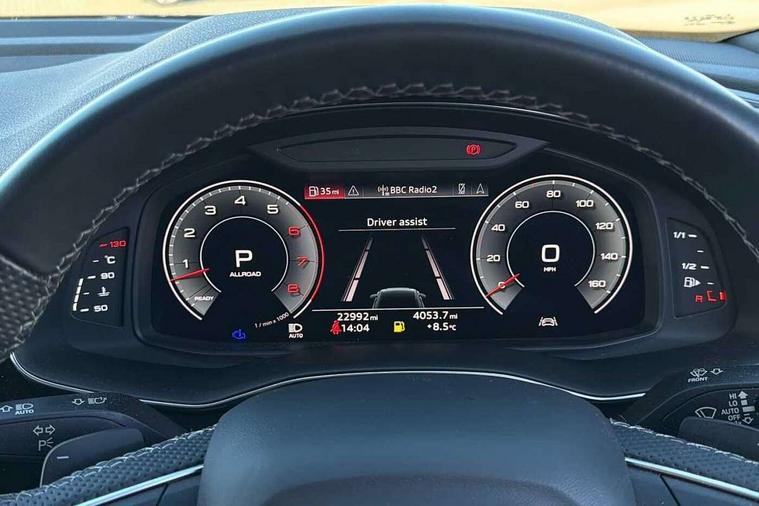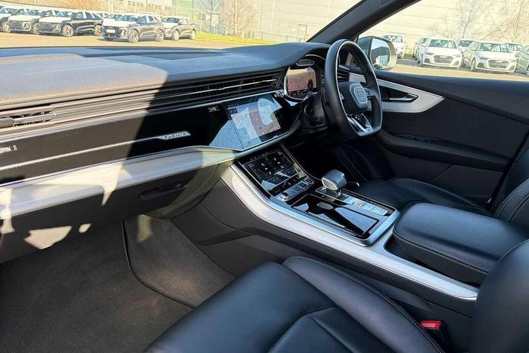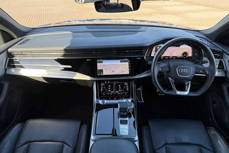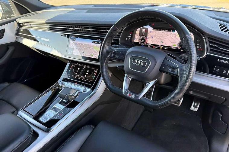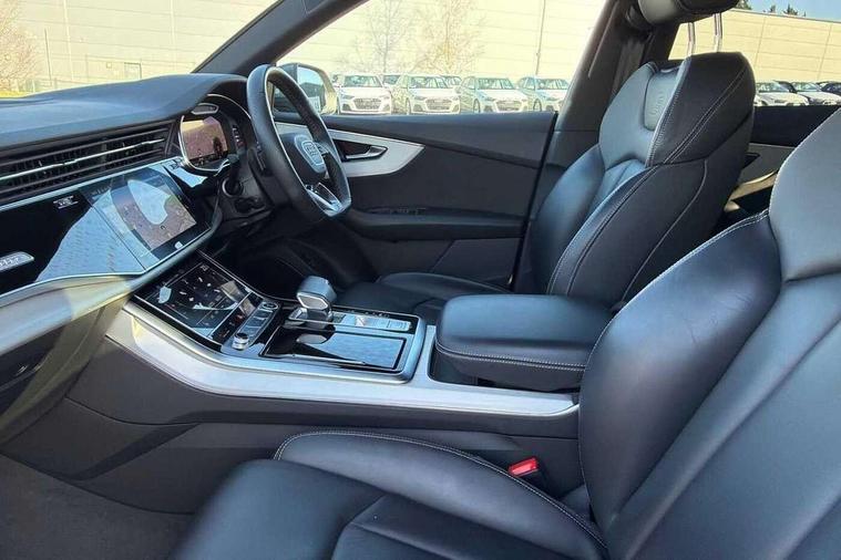 10.1" and 8.6" Dual colour touchscreens, Audi connect safety and service (e-call), Audi connect with Amazon Alexa Integration, Audi drive select, Audi parking system plus includes 360 degree display with front and rear sensors, Audi virtual cockpit - 12.3" high resolution LCD display with fully customisable instrument cluster, Automatic start/stop system, Electro-mechanical PAS, Low washer fluid indicator, MMI - Multi Media Interface control system, MMI navigation plus with MMI touch, Natural voice recognition, On board computer, Operating buttons in black, glass look with haptic feedback, Power operated tailgate, Rear view camera, Service interval indicator, Smartphone interface includes wireless Apple carplay/Android Auto, 48V Mild hybrid technology, 85 litre fuel tank, Adaptive sport air suspension, Quattro all wheel drive with self locking centre differential, Audi music interface with 2 USB ports with charge and data functions, Audi sound system with 6 channel amplifier, 180 watt amplifying capacity and 10 loudspeakers including subwoofer, Aux-in socket, DAB Digital radio, 3rd brake light, Acoustic windscreen, Aluminium window trim, Audi HD Matrix LED headlights with dynamic front and rear indicators, Auto dimming frameless rear view mirror, Body colour door mirrors, Coming/leaving home lighting function, Electric front+rear windows, Electrically folding auto dimming/adjustable/heated door mirrors with memory function, LED side indicators and kerb view function for passenger side, Headlight washers, Heat insulating glass in windshield, Illuminated door sill trims with S line logo, LED signature daytime running lights, Platinum grey front spoiler lip and diffuser insert with honeycomb grille in black, Privacy glass - dark tinted rear and rear side windows from B-pillar backwards, Rain and light sensors, Rear side wing doors, Rear wiper, S line badges on front wings, S Line body styling, S line bumpers in full body colour paint finish, S line roof spoiler, S Line side skirts, S line side ventilation grille, 2 zone automatic climate control, 4-way lumbar support for front seats, 40:20:40 split folding rear bench seat, Black cloth headlining, Comfort front centre armrest, Driver seat memory function, Electrically adjustable front seats, Front head restraints, Front/rear floor mats, Heated front seats, ISOFIX child seat mounting for front passenger seat and 2 outer rear seats with top tether child seat mounting for all 3 rear seats, LED interior ambient lighting, Luggage compartment sill protection in stainless steel, Rear centre armrest with 2 cupholders, Rear headrests, Rear seat bench plus, Single front passenger seat, Stainless steel pedals, Sunvisors with illuminated vanity mirrors, 3 point seatbelts on all seats, Audi pre sense front, Child locks on rear doors, Driver and front passenger, front side and curtain airbags, Electromechanical parking brake, Electronic Stability Control (ESC) including ABS, ASR and EDL, Front passenger airbag deactivation, Hill descent control, Hill hold assist, Predictive pedestrian protection, Seatbelt monitoring, Traction control, Tyre pressure loss indicator, Warning triangle and first aid kit, Anti theft alarm with tow away protection, Anti-theft wheel bolts and wheel loosening detection, Immobiliser, Keyless go with remote central locking, Dark matt brushed aluminium inlay, Tool kit, Tyre repair kit,