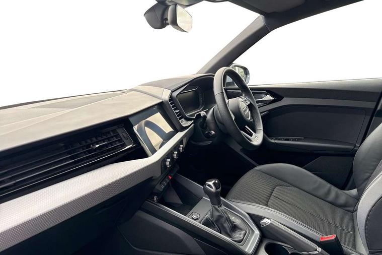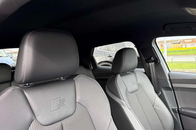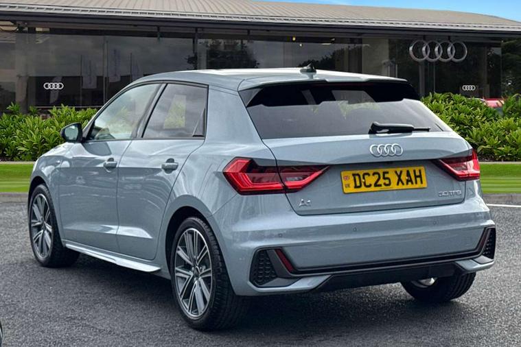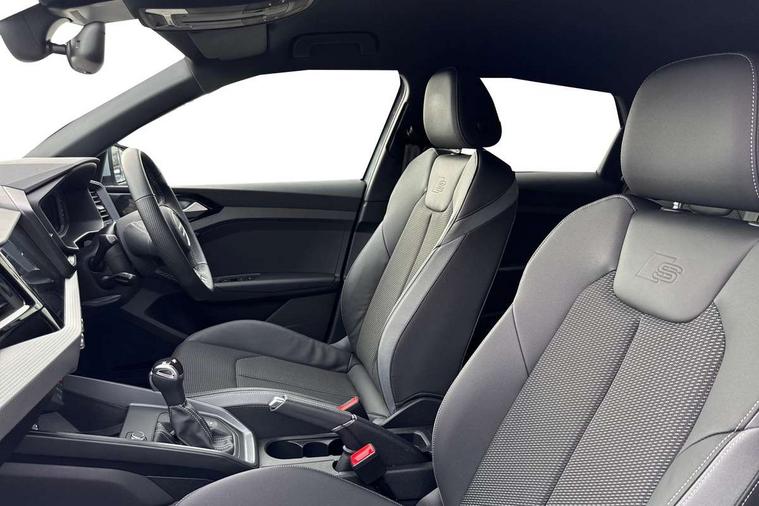 10.25" Digital instrument cluster display classis style instrument dials + speed, odometer, time, outside temperature, telephone menu + fuel level warning, Advanced driver attention and drowsiness monitor, Audi connect emergency call and service, Audi drive select, Audi remote connect and control, Audi smartphone interface, Bluetooth interface, Camera based traffic sign recognition, Cruise control, Driver's information system, Electromechanical power steering, Lane departure warning system, Rear parking sensor, Service interval indicator, Speed limiter, Start stop system with recuperation, Voice control system, Washer fluid level indicator, Sports suspension, 2 x USB type C connection points, 6 loudspeakers, DAB Digital radio, MMI radio plus with 10.1" colour MMI display screen and MMI touch, Auto dimming rear view mirror, Body coloured door mirrors, Door sill trims with aluminium inlays and S line logo in front, Electric front and rear windows, Electrically adjustable, heated, folding door mirrors with integrated LED side indicator, Front side air inlets in grained matt black and C frame in anthracite black, Headlight cleaning system, Heat insulating glass windscreen and side windows, Heated rear windscreen, High level LED brake light, LED daytime running lights, LED headlights with range control LED rear lights + dynamic rear indicators, Light and rain sensors, Privacy glass, Radiator grille and rear diffuser in matt anthracite black, Radiator protective grille frame in matt aluminium silver, Rear fog lights, Rear side wing doors, Rear wiper, S line badges on front wings, Side front spoiler lips in grained matt black, 12V socket in centre console with two cup holders, 3 rear seats with headrests, 3 seat bench in 2nd row, 3 spoke leather multi-function plus steering wheel features S badging and grips in perforated leather with contrast stitching, 40:60 Split folding rear seat or fully collapsed, Black cloth headlining, Front and rear velour black floor mats with contrast stitching in fine silver, Front head restraints, Front passenger seat, Height and reach adjustable steering wheel, Interior lighting includes roof module, front and rear reading lights and right luggage compartment lighting, ISOFIX child seat mounting for front passenger and outer rear seats including top tether attachment point of outer rear seats, Leather gear knob with aluminium trim, Leather handbrake grip, Manual air conditioning, Manual height adjustable for driver and front passenger seat, Manually adjustable lumbar support in front seats, Stainless steel pedals, Ambient lighting package - A1, Luggage compartment pack - A1, S line exterior styling pack - A1 Sportback, 3x3 point rear seatbelts, Audi pre-sense front with pedestrain and cyclist recognition, Brake assist function, Driver and front passenger airbag with front side and head airbags, Electronic Stability Control including ABS, EBD, ASR and EDL, Front passenger airbag deactivation switch, Hill hold assist, Manual rear child locks, Seatbelt height adjustment for front seats, Seatbelt monitoring, Tyre pressure loss indicator, Warning triangle and first aid kit, Anti theft alarm, Anti theft wheel bolts, Immobiliser, Remote control key with safelock, Aluminium trim for control switches, air vents and digital instrument cluster, Black dashboard, Silver grey inlays polygon structure in diamond paint finish, Structured grey accent surfaces insert of air vents, interior door handle recesses and centre console in quartz paint finish,