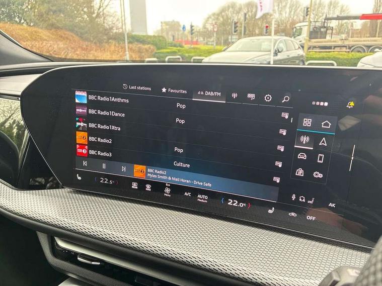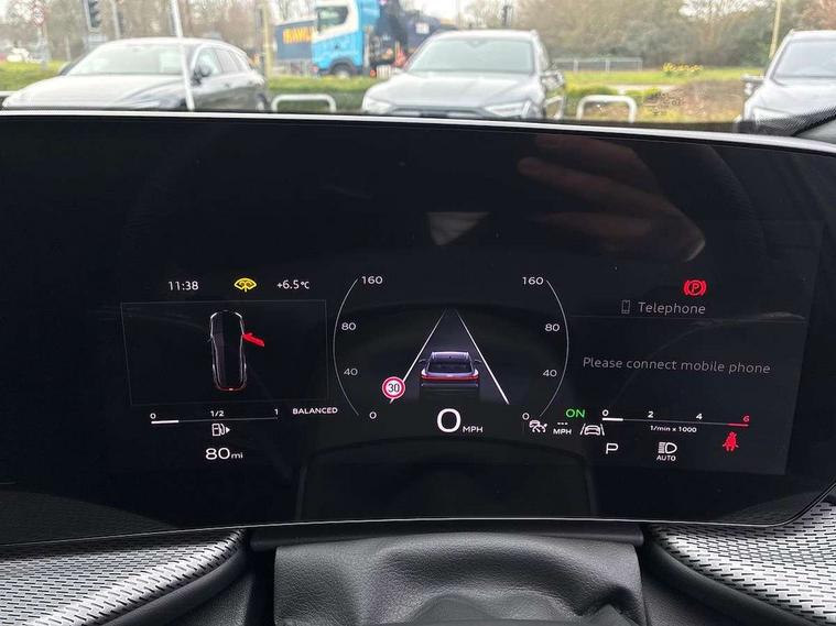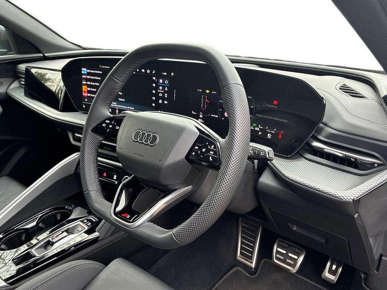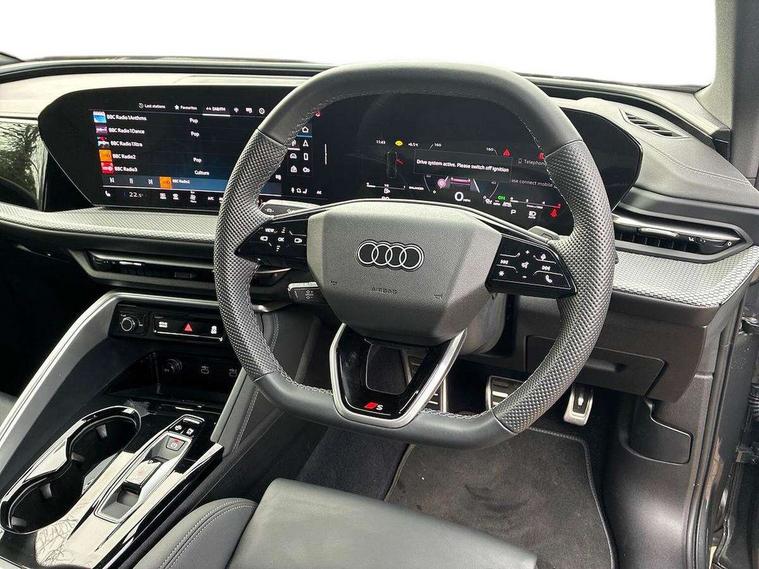 Adaptive cruise control, Advanced driver attention alert, Audi application store, Audi connect emergency call and service, Audi drive select, Audi smartphone interface, Audi virtual cockpit plus with 11.9" OLED colour display, Camera based traffic sign recognition, Fatigue monitor, Front cross traffic intersection assist, Lane departure warning system, MMI navigation plus with high resolution 14.5" OLED touchscreen colour display, Park assist plus, Parking system plus with 360 display, PAS, Reversing camera, Traffic sign based speed limiter, 2 USB-C ports in both the front and rear, Audi sound system impressive sound with 8 loudspeakers including centre speaker and subwoofer, 6-channel amplifier with a total output of 180 watts, DAB Digital radio, Smartphone compartment with wireless charging, Aluminium roof rails, Auto dimming rear view mirror, Body coloured door mirrors, Coming/leaving home lighting function, Electrically adjustable heated and folding + automatically dimming exterior mirrors, Front and rear electric windows, Front door sill trims with aluminium inlays, illuminated with 'S' logo, Grill frame, inlay and front air inlets in matt anthracite chrome, Headlight cleaning system, Heated rear window, High beam assist, High gloss window surrounds, LED headlights plus incl. digital DRL, dynamic coming and leaving home function with turning/all weather/motorway/manouevring and intersection lights, LED rear lights pro incl. dynamic rear indicators and illuminated light strip with animated coming and leaving home function, Logo projection light in exterior mirrors, Privacy glass, Projection third brake light for rear window in LED, Radiator grille in phantom black, Rear and side windows with heat insulating glass, Rear honeycombe grille in matt black with inlay in matt anthracite chrome, Rear side wing doors, Rear wash/wipe, S Line badge on the front wings, S line bumpers in contrasting Volcano grey metallic paint finish, Towbar preparation, Windscreen with acoustic glazing, 3 rear head restraints, 3 seat bench in 2nd row, 3 spoke leather steering wheel with multi-function buttons with touch control, flattened on top and bottom, with S badging and contrast stitching, Comfort centre armrest front, Deluxe 3 zone electronic climate control, Front and rear floor mats, Front sport seats with integrated head restraints, Headlining in black cloth, Heated front seats, i-Size child seat mounting on the front passenger side and outer rear seats, i-Size and top tether on the outer rear seats, Interior trim in aluminium look, Luggage compartment lid, electrically opening and closing, Manual steering column adjustment, S embossed logo on front sport seats, Single front passenger seat, Softwrap in leatherette, Stainless steel pedals and footrest, Steering wheel grips in perforated leather and shift paddles, Ambient lighting package plus - Q5, 3x3 point rear seatbelts, ABS, Acoustic vehicle alerting system, Convenience key with safelock, Driver and front passenger airbag with passenger airbag deactivation, Electric child safety locks, First aid kit with warning triangle and high visibility vests, Front emergency brake assist, Front side airbags with head airbag system and front interaction airbag, Hill hold assist, Rear seat occupant reminder, Tyre pressure loss indicator, Anti theft alarm, Anti-theft wheel bolts, Accent surfaces and control buttons in gloss black, Anthracite matt brushed aluminium inlays with linear embossing, Black dashboard with contrast stitching, Upper and lower interior elements in artificial leather, Tyre repair kit,