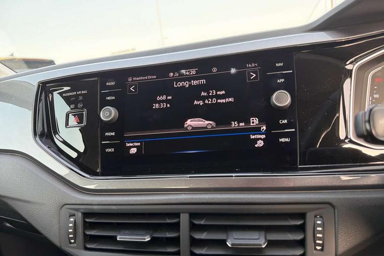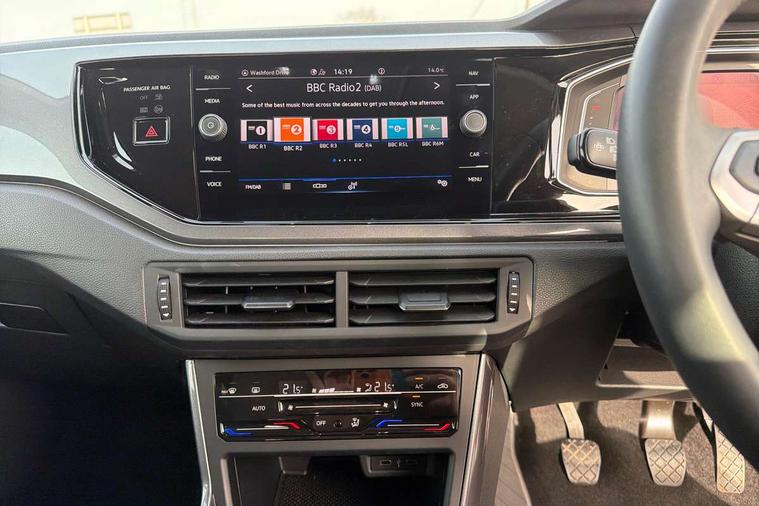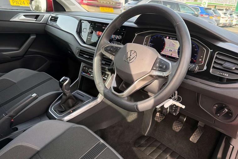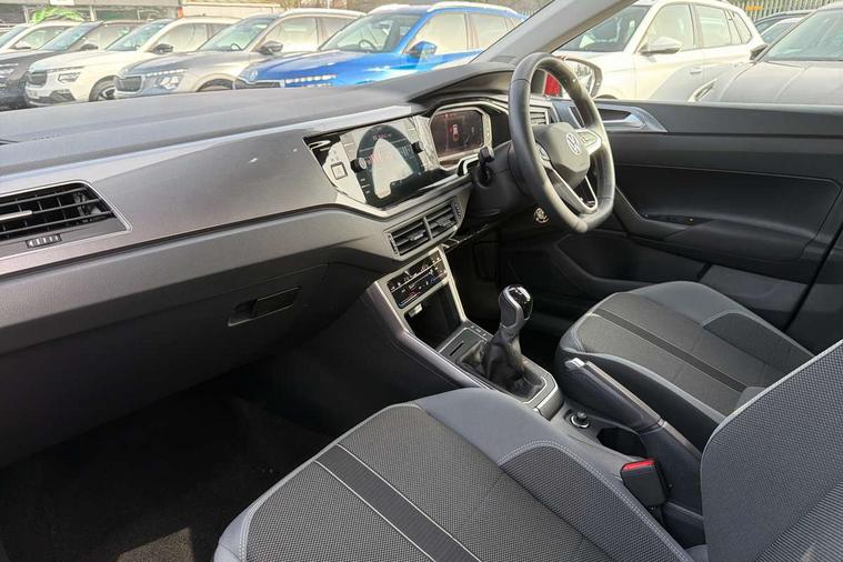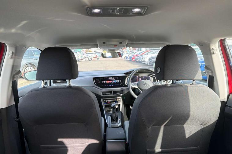 Adaptive cruise control without follow-to-stop and speed limiter, Bluetooth mobile phone interface, Digital Cockpit Pro with 10.25" Display, Driver alert system, Dynamic road sign display, Emergency call service, Power assisted speed sensitive steering, Preparation for We connect and We connect plus, Speedo and rev counter, electronic odometer, trip, service interval display and fuel gauge, Standard rear axle, Travel Assist - Lane keeping system and traffic jam assist, Travel assist including emergency assist, Trip computer, Warning signal and warning light for front and rear seatbelts not fastened, Washer fluid level indicator, Wireless app connect, Front wheel drive, Rear shock absorpion, Start-stop system with battery regeneration (recuperation - energy recovery during braking), DAB Digital radio, Diversity antenna for FM reception, Front and rear 6 speakers, Automatic dimming interior rear view mirror, Automatic headlights, Body colour door handles, Body coloured bumpers and radiator grille with chrome trims, Electric front windows, Heat insulating darkened glass in side and rear windows, Heat insulating glass windscreen, LED separate daytime running lights with coming/leaving home function, Power folding adjustable/heated exterior mirrors and front passenger exterior mirror lowering function, Rain sensor, Rear electric windows, Rear fog light, Rear side wing doors, Rear windscreen washer and wiper with interval delay, Third brake light, 12V power socket in centre console, 2 USB-C ports in the front, 2 USB-C charging sockets on the center console in the rear, 3 rear head restraints, 60/40 split folding rear seat and rear seat bench not split, Air care climatronic air conditoning system with active combination filter and 2-zone temperature control, Ambient lighting, Ceramique headliner, Chrome plated radiator grille inserts, air vent surrounds and light switch surrounds, Door and side trim panel, Driver and front passenger seat height adjustment, Driver/passenger sunvisors with illuminated vanity mirrors, Front + rear carpet mats, Front centre armrest, Front footwell illumination, Front seat backrest storage pockets, Front sports comfort seats, Handbrake lever handle in leather, Isofix child seat preparation easy-fit (for two outer rear seats, and front passenger seat) compatible with I-size, Leather trimmed gear knob, LED interior light with switch off delay and dimmer, 2 reading lights front and rear, Luggage compartment cover, Luggage compartment floor, Luggage compartment lighting, Lumbar adjustment for front seats, Multifunction steering wheel, Single front passenger seat, Standard pedal cluster, IQ LED matrix headlights pack - Polo, Light and vision pack - Polo, 3 point height adj front seatbelts + pretensioners, 3x3 point rear seatbelts, ABS, Driver and front passenger airbag with front passenger airbag deactivation, Drivers and front passengers safety optimised head restraints, ESC (Electronic stability control) + EDL (Electronic Differntial lock) and ASR (Traction control), Extended and predictive pedestrian/ cyclist protection, Front curtain and side airbags with center airbag, Front disc brakes, Hill hold control, Manual child lock in rear doors, Rear drum brakes, Single tone horn, Tyre pressure loss indicator, Alarm with interior protection, Anti-theft alarm system with interior monitoring, backup horn, and towing protection, Anti-theft wheel bolts, Electronic engine immobiliser, Chrome applications on rotary light, mirror adjustment, window regulator switches, outlet with frame in black, Deep iron gloss decorative inserts in dash and front door panels, Low rolling resistance tyres,