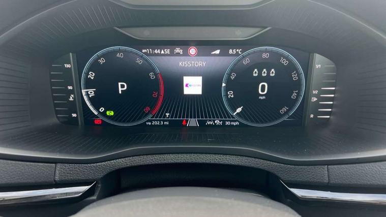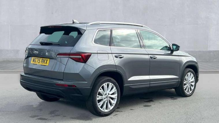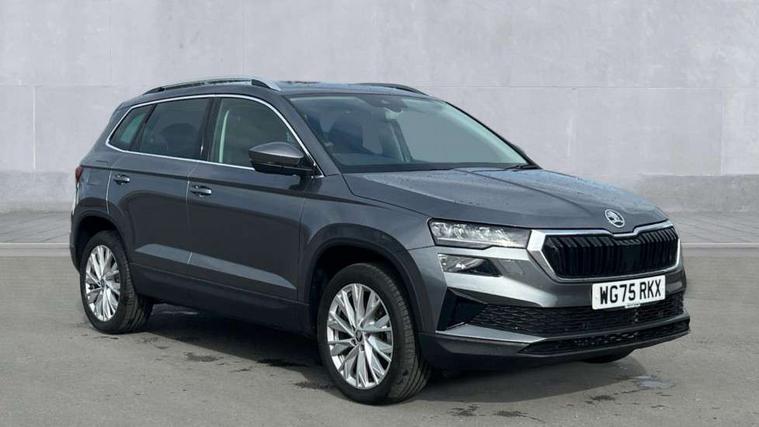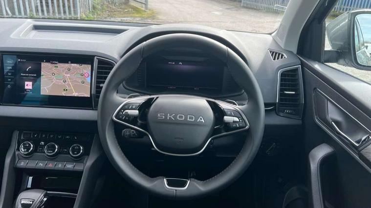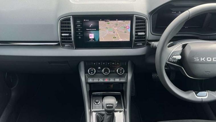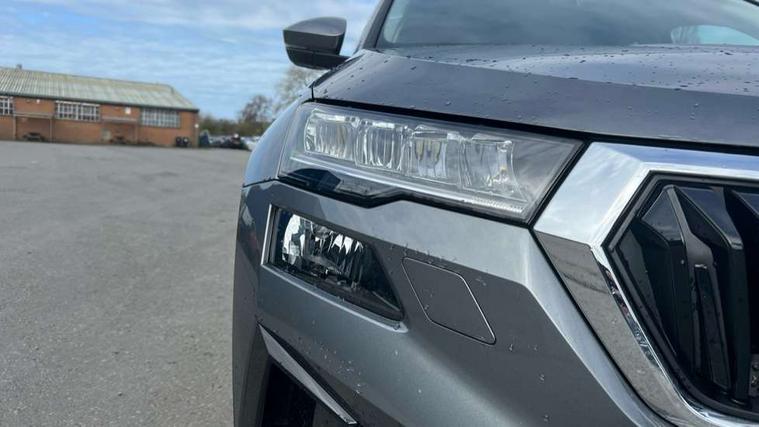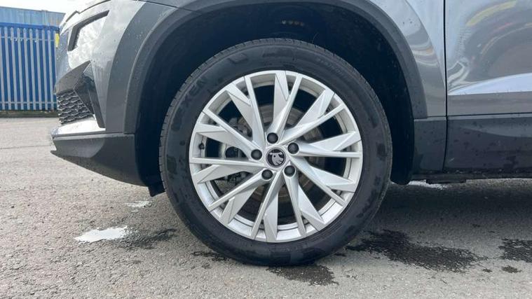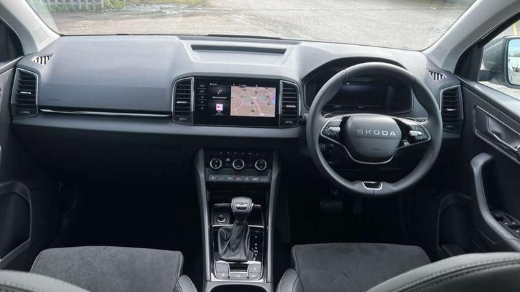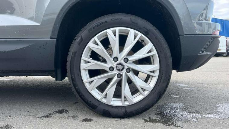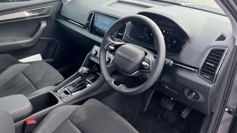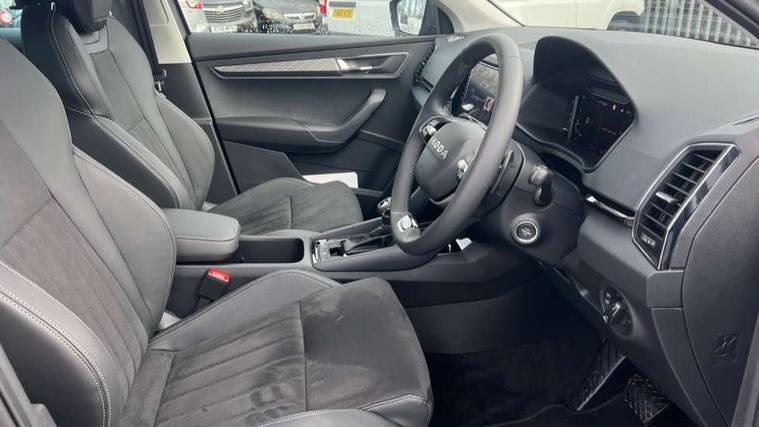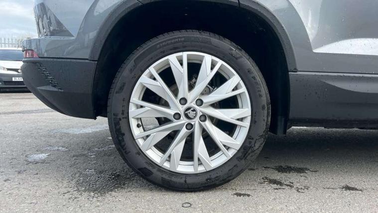 Advanced driver attention and drowsiness monitor, Drive Mode Selection including ECO function, Electro-mechanical PAS, Emergency services call system, Outside temperature gauge, Sensor for driver assistance systems, Service interval indicator, SmartLink wireless for Apple and wired for Android, Start/stop system with regenerative braking, Traffic sign recognition, USB C Port x 2 in front centre console, Virtual Cockpit - 10.25" digital display, Virtual pedal with electrically operated boot door, Wireless smartphone charging, DAB radio with Bluetooth, USB connection, Acoustic glass, Aero front windscreen wipers with intermittent function, Auto dimming rear view mirror with light and rain sensors, Black electric window control buttons, Body colour door mirrors and handles, Electric front and rear windows with child proof lock, Extended rear roof spoiler, Heated rear windscreen, LED daytime running lights, LED rear lights with high functionality welcome effect and dynamic indicators, Light assistant (coming/leaving home/tunnel light), Plastic scuff plates in door apertures, Privacy glass, Rear side wing doors, Rear window wiper with washer system and intermittent control, Safety reflectors on front doors, Third brake light, Unique dark chrome design logo on alloy wheels, 1.5 litre bottle holders in driver and front passenger door panels, 12V socket in boot, 12v socket in front centre armrest with storage compartment and rear air vents, 2 spoke leather heated multifunction steering wheel with DSG paddles, 2 x Tablet holder, 3 rear height adjustable headrests, 3 seat bench in 2nd row, 4 foldable roof handles with rear coat hooks, Black floor carpet, Cargo elements in boot, Chrome inner door handles, Decorative door sills with KAROQ badging, Foldable hooks in the boot, Front head restraints, Height adjustable front three point seats belts with tensioners, Height/reach adjust steering wheel, Ice scraper, Illuminated glovebox, Illuminated luggage compartment, Interior noise suppression, Isofix child seat preparation for front passenger seat, Isofix child seat preparation outer rear, Manual lumbar support for front seats, Pearl grey interior ceiling, Pen holder, Pollen filter, Rear backrest release from boot, Rear boot cover, Rear package tray, Rear reading lights, Rear seats fixed folding and divided 60:40, Rubbish bin door, Safety vest holder, Single front passenger seat, Skoda lettering on steering wheel, Storage box in upper central dashboard closed, Sunvisors with illuminated vanity mirrors, Textile floor mats, Ticket holder, Columbus pack - Karoq, Design Pack - Karoq, Non Smokers pack, Parking pack - Karoq, Automatic door unlocking in case of crash, Automatic fuel cut off in case of crash, Driver airbag, Electronic parking brake with auto hold function, Emergency rear braking signal, ESC (incl. ABS+MSR+ASR+EDS+HBA+DSR+RBS+MKB), Front side airbags, Head airbags, Hill hold control, Knee airbags, Passenger airbag with switch-off function, Pedestrian monitor, Power operated child safety locks, Seatbelt reminder signalisation and pretensioner for all seats, Three point seatbelts rear, Two tone horn, Tyre pressure monitor, Alarm with interior monitoring, back up horn and tilt sensor with safe function, Electronic engine immobiliser, Keyless entry and start/stop, Remote central locking with 2 remote folding keys, Black centre console, Chrome framed air vents, Satin black dashboard, Anti-theft wheel bolts protection, Breakdown and tool kit,