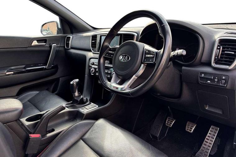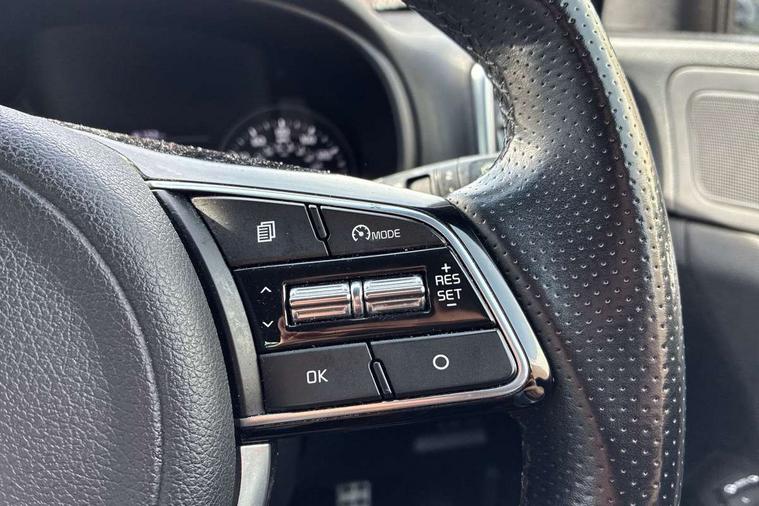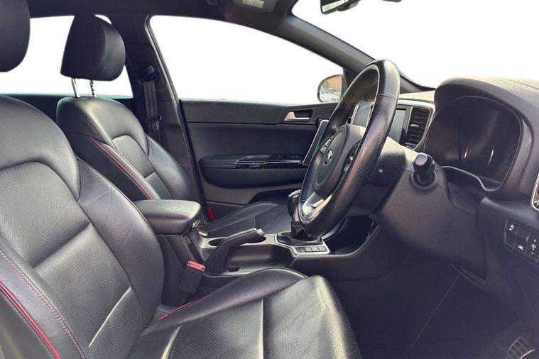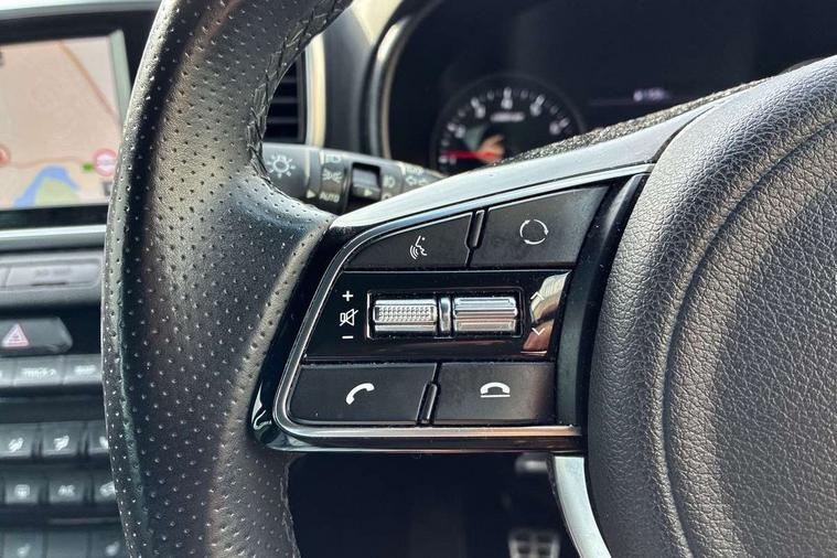 4.2" supervision colour cluster display, 8" touchscreen satellite navigation with European mapping and traffic messaging channel, Android auto with voice control, Apple car play with voice control, Cruise control + speed limiter, Driver attention warning, Emergency stop signalling system, Front parking sensor, Kia connected services featuring TomTom live, Lane keep assist, Rear parking sensor, Reversing camera, Speed limit information, Speed sensitive power steering, Telematics system with UVO connect services, Trip computer, Windscreen washer level indicator, Intelligent Stop and Go, 6 speaker audio system, Bluetooth audio streaming, DAB Radio with MP3, Rear USB port, Steering wheel mounted audio controls, USB/iPod/auxiliary input connections, All round electric windows with drivers auto up/down function, Auto dimming rear view mirror, Automatic lighting control, Automatic window defogger, Black wheel arch body mouldings and side sills with dark chrome insert, Body colour door handles with chrome inserts, Body colour door mirrors, Chrome window surround, Dark chrome front bumper insert, Dark chrome front grille surround, Electrically adjustable/heated/folding door mirrors with LED indicators, Front wiper de-icer, High beam assist, High gloss black blade mesh radiator grille, LED Bi-Function headlights, LED daytime running lights, LED ice cube front fog lights, LED rear lights, Privacy glass - Rear windows and tailgate, Rain sensing front wipers, Rear spoiler, Rear wiper, Roof rails, Shark fin antenna, Silver painted front and rear skid plates, Tinted glass, Trailer stability assist, Welcome and follow-me home light functionality, Wide view drivers door mirror, 12V power in front and rear centre console, 3 x passenger assist grips, 60/40 split folding rear seat, Air filter, All-round height adjustable headrests, Aluminium door scuff plates, Aluminium pedals, Black headlining, Centre cabin light, Centre console storage box, Chrome boot sill guard, D-Shaped sports leather steering wheel and perforated inserts with GT-Line logo, Driver and front passenger side sunvisors with illuminated vanity mirrors, Driver's seat manual height adjust, Drivers seat power lumbar support, Dual zone automatic air conditioning, Front and rear door storage, Front cabin LED map light with sunglasses case, Front door courtesy reflectors, Front seat and rear pockets, Front/rear centre armrests, Gear shift indicator, Glovebox illumination, Heated front and outer rear seats, Interior door lock/unlock function, ISOFIX Child seat top tethers and anchor fixings, Leather trimmed door armrests, Leather trimmed gearshift, Luggage area light, Luggage area load cover, Luggage net with hooks, Rear centre armrest with cupholder, Rear coat hooks, Satin chrome interior door handles, Tilt/telescopic adjustable steering wheel, Two tone leather upholstery, Ventilation ducts to rear compartment, Active front headrests, All round 3-point seatbelts, Anti-lock braking system with electronic brakeforce distribution, Dual front side airbags, Electronic stability control with downhill brake control, Front passenger airbag cut-off switch, Front seatbelt pretensioners + load limiters, Height adjustable front seatbelts, Hill start assist control (HAC), Impact sensing auto door unlocking, Rear door child safety locks, Traction control, Twin curtain airbags with roll over sensor, Twin front airbags, Tyre pressure monitoring system, Advanced anti-theft system including immobiliser and alarm, Door deadlocks, Engine Start/Stop Button with Smart Entry System, Locking wheel nuts, Speed sensitive auto door locking, Visible vehicle identification number, High gloss black centre fascia, 19" alloy Wheels B-type, Tyre mobility kit,