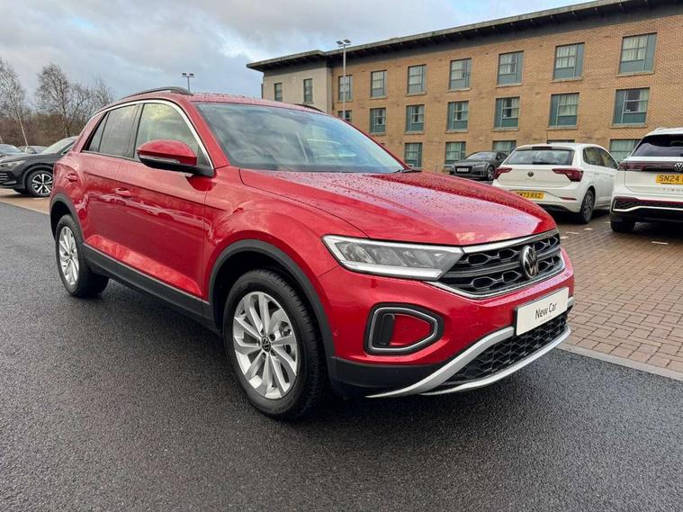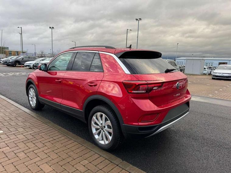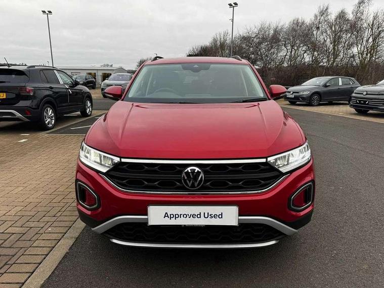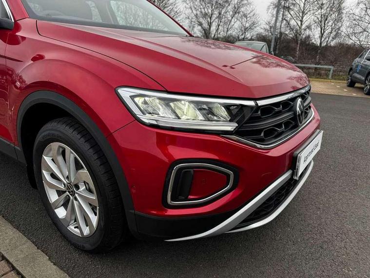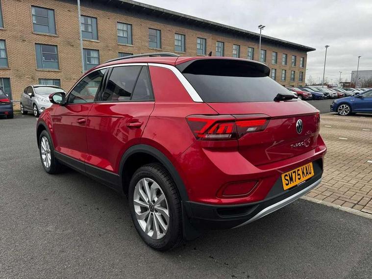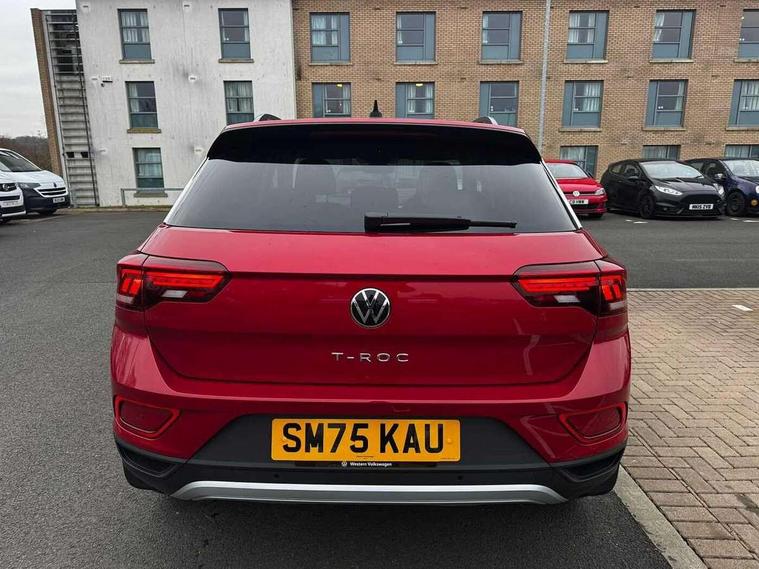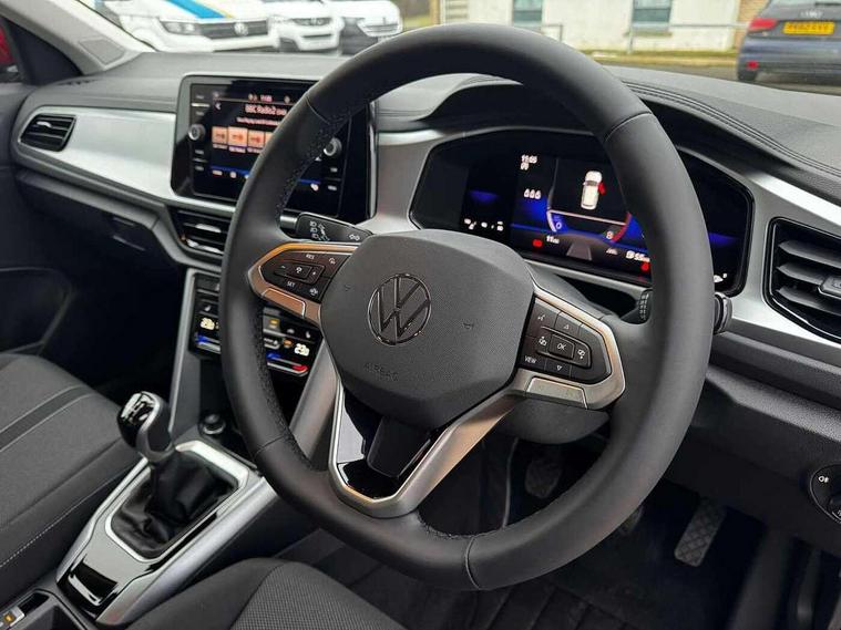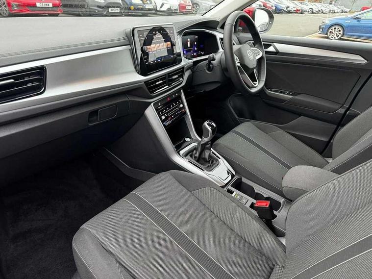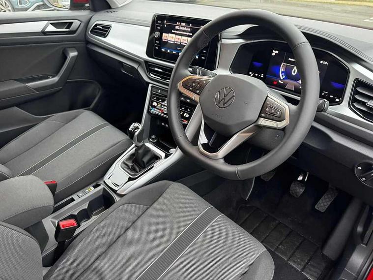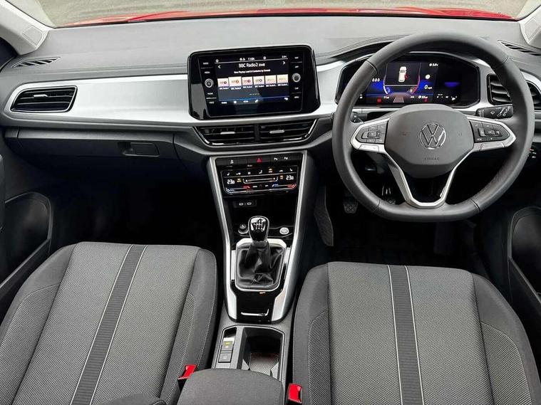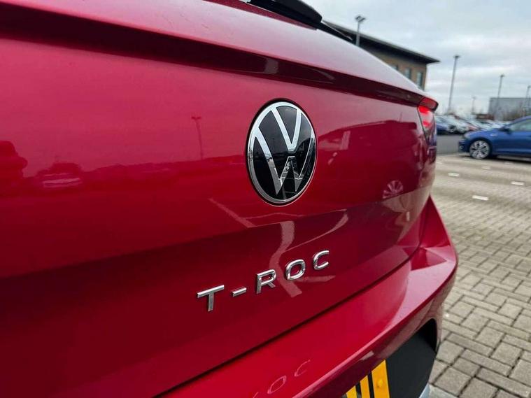 Advanced driver attention and drowsiness monitor, Dynamic road sign display, Emergency call service, Lane keeping system Lane Assist, Mobile phone interface, Modified key software - reduce switch off time for key status change to Long no motion, Online services, Park assist including front and rear parking sensors, Power assisted speed sensitive steering, Rear view camera, Service interval indicator, Tailgate/trunk lid release from outside, Think blue trainer driver tips and journey analysis, Warning sound and light for front seatbelts unfastened, Wireless app connect, Battery regeneration during braking, Front shock absorption, Rear shock absorption chassis with increased ride height, Start/stop function with battery regeneration, DAB Digital radio, Diversity antenna for FM reception, Music playback - MP3, WMA and AAC files, SD card slot, Simultaneous pairing of 2 compatible mobile devices, Title and cover art display, We Connect and We Connect Plus functionality, Auto dimming interior rear view mirror, Automatic hazard lights activation under emergency braking, Automatic headlight control with LED separate daytime running lights with coming/leaving home function, Black roof rails, Body coloured bumpers and radiator grille with chrome trim and front fog lamps with chrome bezel, Body coloured exterior mirror housings and door handles, Electrically adjustable and heated door mirrors, Extended roof spoiler, Exterior mirrors aspherical on driver side, convex on front passenger side, External USB type C socket and charging sockets, Front windscreen wiper with intermittent wipe and 4 position delay, Heated rear window, LED 3rd brake light, LED rear combination lamps, LED rear number plate lights, Power windows with comfort operation and circuit breaker, Privacy glass for rear side windows and rear window, Rain sensor, Rear exhaust tailpipe, Rear fog light on one side and reversing lights on both sides, Rear side wing doors, Rear wash/wipe with intermittent wipe setting, Remote electrically foldable door mirrors, puddle lights and reverse activated passenger's door mirror, 12V power socket in centre console, 3 rear head restraints, 3 seat bench in 2nd row, 4 load lashing points in luggage compartment, Air care climatronic air conditoning system with active combination filter and 2-zone temperature control, Black stitching for floor mats, Ceramique roof liner, Cloth upholstery, Door and side trim panel in cloth, Drawer under drivers seat, Driver/front passenger seat height adjustment, Front centre armrest, Front comfort sports seats, Front cupholders x 2, Front reading light, Front seat back storage pockets, Glove compartment door with light, Instrument lighting, white adjustable panel illumination, Interior ambient lighting and surround lighting, Interior light delay, Isofix child seat preparation, Leather gearshift handle, Load-through provision with cup holder when folded down ('Unsplit rear seat bench, split folding backrest, with centre armrest), Luggage compartment lighting, Lumbar support for driver's and front passengers seat, Non-folding front passenger seat backrest, Single front passenger seat, Storage compartment in left and right luggage area, Storage compartment in rear doors, Storage compartments in driver and front passenger doors, Sunvisors with illuminated vanity mirrors, Variable boot floor, height adjustable and removable, Driver assistance pack without proactive passenger protection - T-Roc Life/Match, 3 point height adj front seatbelts + pretensioners, 3 point seatbelts in outer rear with ECE label, ABS, Child locks on rear doors, City emergency braking and pedestrian monitoring, Driver and front passenger airbag with front passenger airbag deactivation, Driver and front passenger safety-optimised head restraints, Drivers seatbelt reminder, Electronic parking brake, Electronic Stability Control (ESC) inc EDL (Electronic Differential Lock) and ASR (Traction Control), Front and rear passengers curtain airbag system including front side airbags, Front disc brakes, Hill start assist, Predictive pedestrian protection, Rear disc brakes, Two tone horn, Tyre pressure loss indicator, Volkswagen roadside assistance, Alarm with interior protection, Keyless locking and starting system keyless access with safelock, Pewter matt decorative inserts for intrument panel, centre console and door panels at the front, Trims for alloy wheels,
