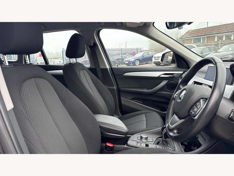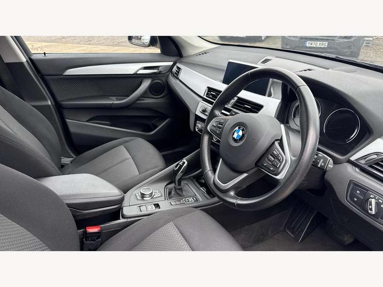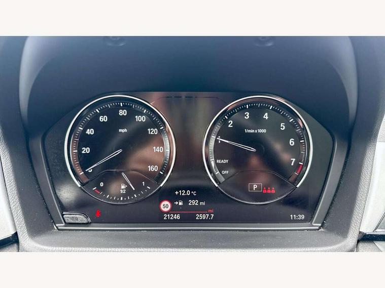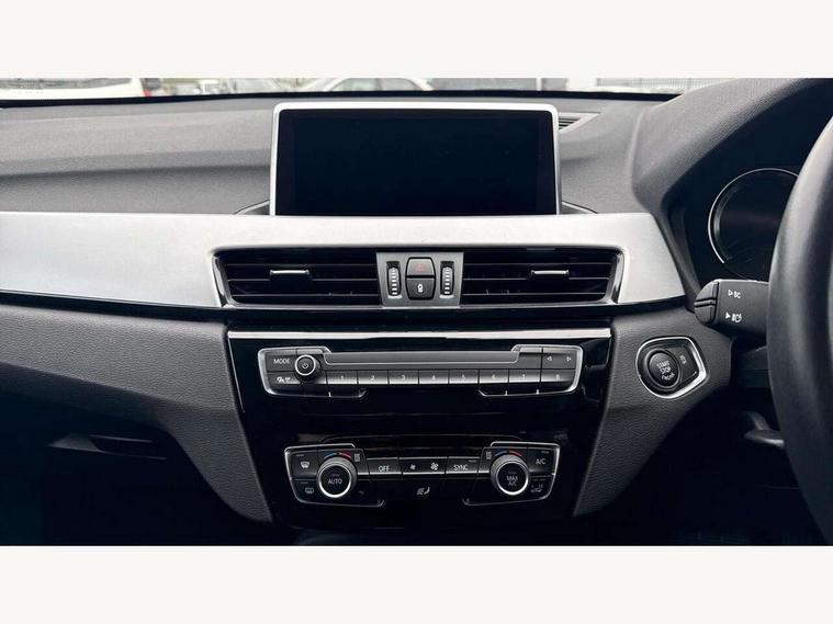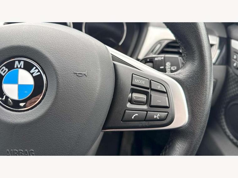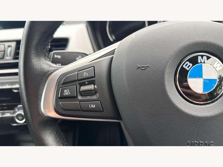 Active Guard incl speed limiting and lane departure functions with auto steering, and front collision warning with brake intervention, Ambient temperature display, Apple CarPlay, Arrow pointers, north up, direction of travel and perspective map displays, Attentiveness assist, Automatic tailgate opening, BMW ConnectedDrive, BMW Online services, BMW remote services, BMW Teleservices, Brake pad wear indicator in front and rear, Characteristic map controlled oil pump system, Cruise control with brake assist, Front axle single joint with specific axle kinematics to minimise drive influences on steering + provide increased rigidity agile driving behaviour, Front/rear park distance control (PDC), Instrument cluster with Black optic display featuring superimposed dials and 5.7" colour display, Instrument cluster with speedometer with miles per hour read out, tachometer and fuel gauge, Integrated hard drive with map data updates via USB interface, Lights on warning by audio warning signal when ignition is switched off, On board computer, Operation by iDrive with direct selection buttons and 8 programmable buttons, Optimum shift indicator, Outside temperature gauge, Park assist system, Personal Profile - automatic lock when driving away selectable, Real time traffic information, Rigidly mounted rear subframe - Multi link construction with separate spring / damper configuration and excellent driving characteristics, Service interval indicator, Servotronic PAS, Tyre puncture warning system, 12V compressor with integrated sealant injection bottle and hose, Aluminium lightweight construction including crankcase, Anti-roll bars, Balancer shaft, Double VANOS, Drive performance control with ECO PRO comfort + sport mode, Electronic differential lock control (EDLC), High precision injection, Performance Control, Seven speed dual clutch automatic transmission (DCT), Standard suspension, Stop/start function, Turbocharger with Valvetronic, Twin tube gas filled shock absorbers with degressive characteristic curve, BMW professional radio includes amplifier power 100w, Two mide range speakers in door trims and two woofers as central bass speaker under front seats, DAB Digital radio, Adjustable headlights, Aero curtain, Automatically dimming rear view mirror, Black roof rails, BMW Icon design LED daytime driving lights, Body colour bumpers, Body colour door handles, Body colour door mirrors, Direction indicator side lights integrated exterior mirrors, Dynamic brake lights, Electric windows - front and rear, with open/close fingertip control, anti-trap facility and comfort closing, Electrically adjustable door mirrors with aspheric on driver side, convex on passenger side with integrated indicators, Follow me home headlights, Front air guide finished in black silver, Front and rear bumper system, Green tinted heat protection glazing glass, Headlight beam throw control, Heated door mirrors, Heated windscreen washer jets, High level third brake light, Kidney grille with 14 chrome black vertical bars, LED direction indicator lights in headlight eyebrow, LED front fog lights, Lightweight engineering, Model designation, Rain sensor including auto headlights activation, Rear fog lights, Rear window aerial, Rear window wash/wipe, Reversing light in rear light cluster, Roof mouldings in matt black, Shark fin antenna, Sill cover finished matt black, Single chrome exhaust tailpipe, Two eye face design on light, Visible VIN plate, Welcome lighting, 12v power point in centre console, 2 cup holders in front, 3 rear headrests, 3 spoke sport leather steering wheel, 40:20:40 split folding rear bench seat, Black door sill finishers with BMW designation, Boot light, Centre armrest in 20 degree part rear seat backrest, Child seat ISOFIX attachment for two outer rear seats and front passenger seat with anchorage points, Conditioned based service, Driver/front passenger seat backrest back with luggage net, Dual zone automatic air conditioning, Four grab handles integrated in roof linings, Front and rear side armrests integrated into door trim, Front centre armrest/sliding cover, Front centre interior light over interior mirror and rear centre automatic interior light when door is opened/ignition switched off or via remote key, Front standard seats, Front/rear adjustable head restraints, Illuminated glovebox, Leather gearknob/gaiter/handbrake grip, Luggage area underfloor compartment, Luggage compartment access via recessed handle below tailgate, Luggage compartment lighting, Manually adjustment steering wheel column, Multifunction steering wheel, Rear coded belt buckles, Standing free front adjustable armrest and fixed in different positions, Steering wheel gearshift paddles, Velour floor carpets, Extended storage package - X1, ABS/EBD, Audio/visual collision warning system, Automatic Stability Control (ASC), Battery safety cut-off, BMW emergency call, Brake drying, Brake energy regeneration, Braking readiness, Collision mitigation braking system, Cornering brake control (CBC), Crash Sensor - activates hazard/interior lighting + unlocks doors, Driver/Front Passenger airbags, Driver/front passenger side airbags, Dynamic brake control, Dynamic stability control + (DSC+), Dynamic Traction Control - DTC, Electronic parking brake, Front and rear head airbags, Front passenger airbag deactivation, Front seatbelt force limiters, Front ventilated disc brakes, Hill start assist, Pyrotechnically pre-tensioned front seatbelts, Rear disc brakes, Rear door child safety locks, Seatbelt security check for driver and front passenger, Side impact protection, Three point seat belts in all seats, Twin horns, Tyre pressure monitor, Warning triangle and first aid kit, Central locking switch for all doors, fuel filler cap and luggage compartment, Check control system for monitoring of lights and door/luggage compartment open warning, Engine immobiliser, Locking wheel bolts, Remote control Thatcham category 1 alarm, Remote control with integrated two key, St