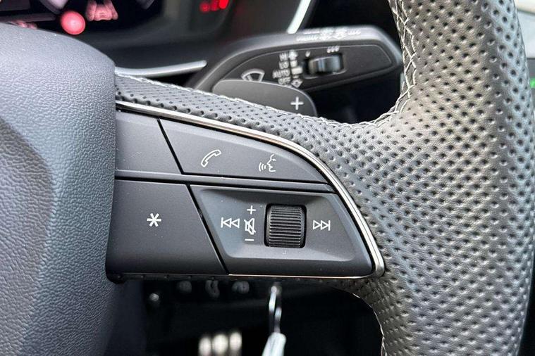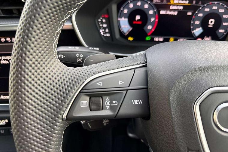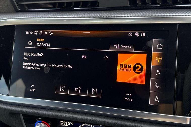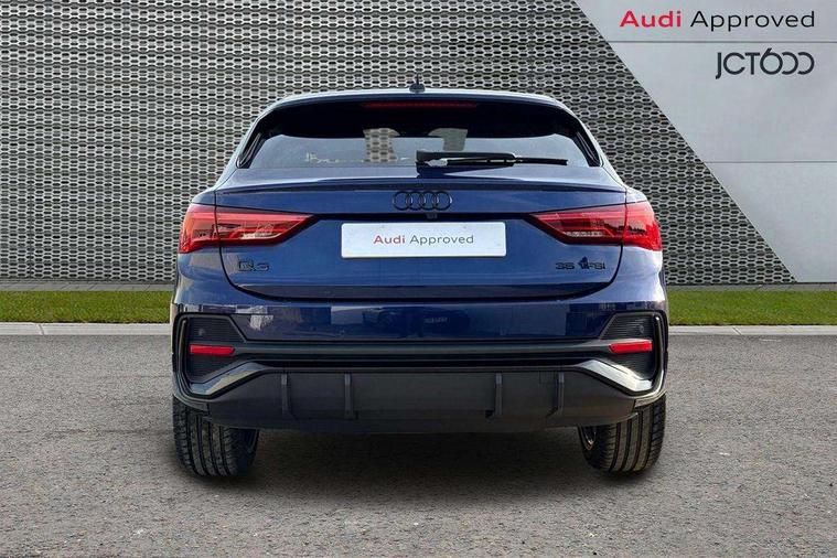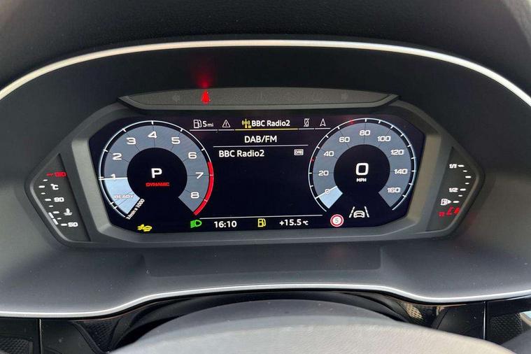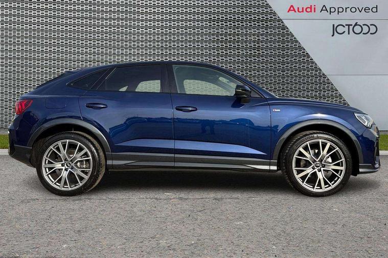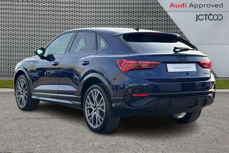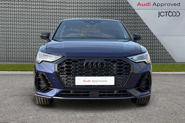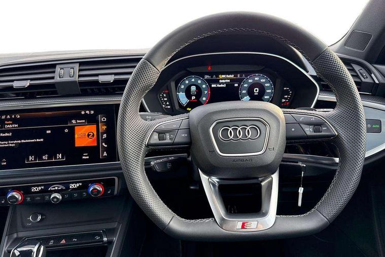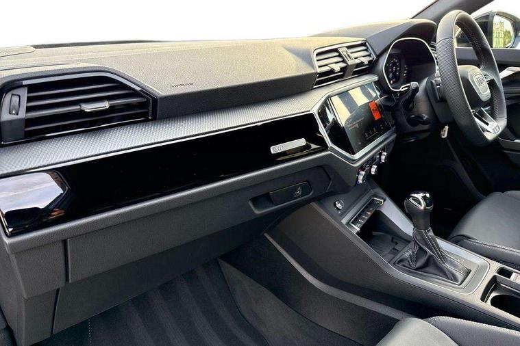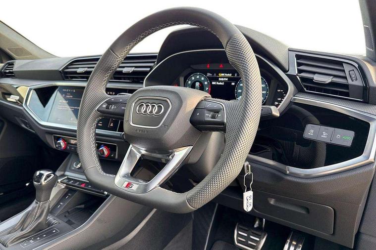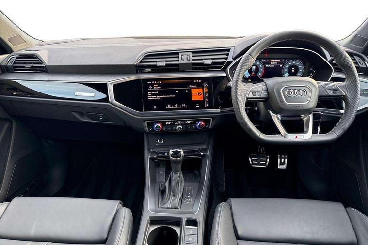 Audi connect safety and service, Audi drive select, Audi lane departure warning, Audi Virtual Cockpit - 10.25" display, Bluetooth interface, Camera based traffic sign recognition, Distraction and Fatigue warning, Legal emergency call, MMI Navigation Plus with high resolution 10.1 inch touchscreen colour display, Power operated tailgate, Progressive steering, Service interval indicator, Smartphone interface includes wireless Apple carplay/Android Auto, Start stop system with recuperation, Voice control system with natural language interaction, Sports suspension, 2 USB-C ports with charge and data functions, 6 passive loudspeakers, DAB digital radio module, Acoustic windscreen, Audi Beam uses LEDs to project the Audi logo onto the ground as you exit your Q3, Auto dimming door mirrors, Auto dimming frameless rear view mirror, Electrically folding, adjustable and heated door mirrors with integrated LED side indicators and kerb view function for passenger side, Front and rear electric windows, Front fog lights, Front underbody protection in manhattan grey paint finish, High gloss black finish B and C pillars, Honeycomb design radiator grille in matt anthracite black, LED Dynamic rear indicators, LED headlights with LED daytime running lights, LED rear lights, LED third brake light, Privacy glass dark tinted rear and rear-side windows (from B-pillar backwards), Rain and light sensors, Rear diffuser grille in grained matt black, Rear diffuser strip in matt anthracite black, Rear side wing doors, Rear underbody protection in matt black, Rear wiper, S line front and rear bumpers and side skirts in contrasting Manhattan grey paint finish, Variable front intermittent wipers, 12V socket in rear centre console, 3 seat bench in 2nd row, 40:20:40 folding with manual adjustment for 60:40 forwards/backwards position and backrest angle, Adjustable rear seat bench/backrest with centre armrest and cupholder, Black carpet mats, Black cloth headlining, Dual zone electronic climate control, Electric lumbar support, Front and rear black floor mats with contrast stitching in rock grey, Front and rear headrests, Front centre armrest, Height and reach adjustable steering wheel, Illuminated door sill trims with S logo, ISOFIX child seat mounting for front passenger with airbag deactivation and outer rear seat including top tether attachment point for outer rear seats, Luggage compartment sill protection in stainless steel, Manual front seats with height adjustment, Perforated leather gearknob, Single front passenger seat, Stainless steel pedals, Twin leather upholstery with front sport seats + S embossing, Black styling pack - Q3, Non smoking pack - Q3, 3x3 point rear seatbelts, 6 airbags - Driver, front passenger, curtain and side windows, Audi pre-sense front with pedestrain and cyclist recognition, Electrically operated child locks on rear doors, Electromechanical parking brake, Electronic stabilisation control including ABS, ASR and EDL, Front seatbelt reminder, Hill descent control, Hill hold assist, Pre sense basic, Seatbelt monitoring, Tyre pressure warning, Warning triangle and first aid kit, Anti theft wheel bolts, Immobiliser, Remote central locking, Thatcham approved category 1 anti theft alarm, Aluminium look interior elements, Detail dashboard around MMI touch colour display in glass look, black with surround in aluminium look, Leatherette door armrest, Piano black inlay,