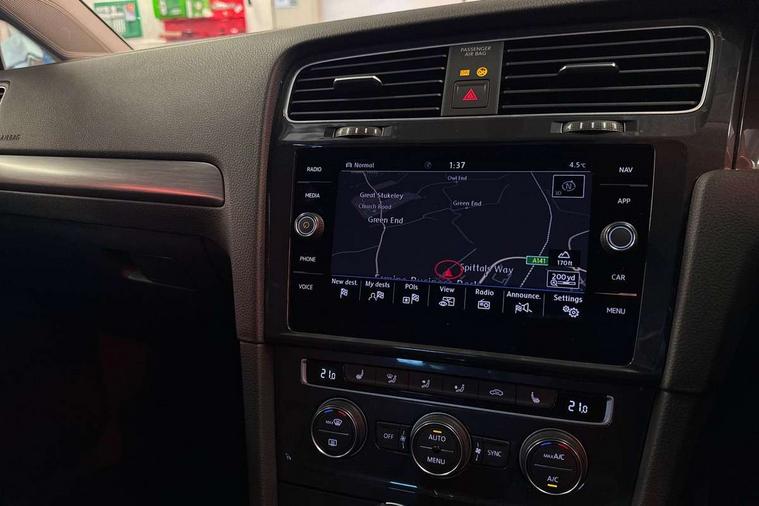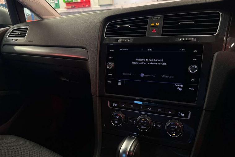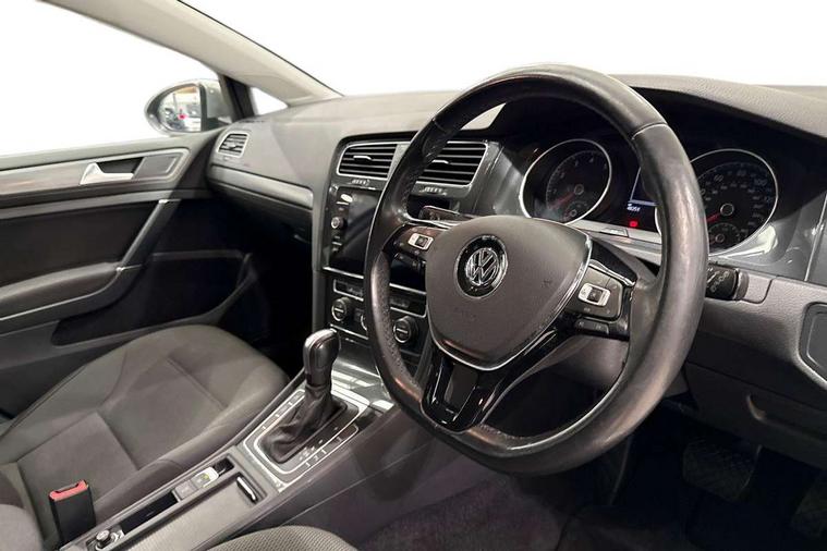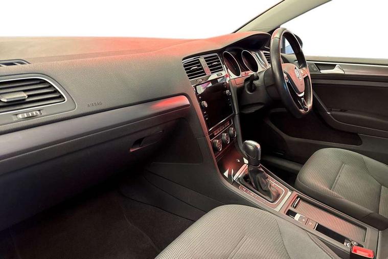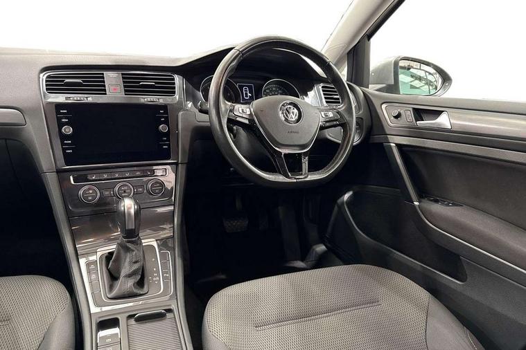 Brushed dark silver decorative inserts in dash and door panels, Chrome plated air vent surround, Chrome-plated light switch surround, Polar night black decorative inserts in centre console, Convenience Pack - Golf, Mirror pack - Golf, Winter pack - Golf, Steel space saver spare wheel, Alarm with interior protection and deactivation via infotainment system, Electronic engine immobiliser, Composition media system, DAB Digital radio receiver, Driver Personalisation profile selection, MP3/WMA compatability, Multi device interface (MDI) via USB connection, Premium USB cable in choice of either Apple or Android smartphone compatibility, SMS Functionality, Title and cover art display, USB and SD card connectivity, Volkswagen media control, 3 rear three point seatbelts, Airbags - Driver's and front passenger's, curtain airbag, Driver's knee, front side impact and passenger's airbag deactivation switch, Anti-lock Braking System (ABS) with Hydraulic Brake Assist (HBA), Automatic post collision braking system, Child locks on rear doors, Driver/Passenger optimised head restraints, Electronic parking brake with auto hold, Electronic stability control (ESC) including Electronic differential lock (EDL) and ASR (Traction control) with deactivation via infotainment system, Front ventilated disc brakes and rear disc brakes, Pre crash preventive occupant protection, Three point height adjustable front seatbelts with tensioners, Tyre pressure loss indicator, Black front air intake and radiator grille with chrome insert, Black rear diffuser, Body colour bumpers, Body colour door handles, Body colour door mirrors with integrated indicators, Dusk sensor + automatic driving lights, Electric front windows, Electric rear windows, Electrically adjustable and heated door mirrors, Fully galvanised body, Heated rear windscreen, High level 3rd brake light incorporating LED Technology, LED front fog lights with static cornering light function, Range adjustable headlights via infotainment system with LED daytime running lights, Rear fog lamp, Rear number plate lights incorporating LED technology, Rear tinted glass 65% light absorbing from B pillar backwards, Rear window aerial, Rear window wash/wipe with intermittent wipe, Reflectors in all doors, Tailgate with integrated rear roof spoiler, Windscreen wipers/ intermittent wipe + 4 position delay, 12V socket in luggage compartment, 3 rear headrests, 4 load lashing points in luggage compartment, 60/40 split folding rear seat backrest, Bag hook in luggage compartment x 2, Climate control - 2 zone electronic air conditioning with automatic air recirculation and allergy filter, Cooled glovebox, Cover for storage compartment in centre, Dust/pollen filter, Front and rear reading lights X 2, Front centre armrest with storage compartment and two rear air vents, Front seat back storage pockets, Grab handles front x 2, rear x 2 with integrated coat hooks, Height and reach adjustable steering wheel, Illuminated vanity mirrors, Instrument lighting white adjustable panel illumination, Interior light delay, Isofix preparation for 2 rear child seats, Load through provision with rear centre armrest and cupholders x2, Luggage compartment lighting, Overhead storage box, Pearl grey headlining, Storage box in luggage compartment, Storage compartment in roof console with cover, Storage compartments in centre console, Storage compartments in front doors, Storage compartments in rear doors, Stowable luggage compartment cover, Sun visors, Variable boot floor, height adjustable and removable, 'Lights On' Reminder warning buzzer, ACC - Adaptive cruise control with front assist, forward collision warning, distance monitoring, city emergency brake and speed limiter, Bluetooth telephone and audio connection for compatible devices, Brake pad wear indicator warning light, Driver alert system, Driving Mode Selection with four preset modes - Eco, normal, sport or individual modes, Multifunction computer with visual gear change recommendation for fuel consumption, Power assisted speed sensitive electro-mechanical steering, Push tank flap, Speed limit display, Speedo, rev counter, electronic odometer, trip, service interval display, exterior temperature and fuel gauge, Stop/start system, Think blue trainer driver tips and journey analysis, Warning buzzer and light for front seatbelts unfastened, Battery regeneration during braking, XDS electronic differential lock,
