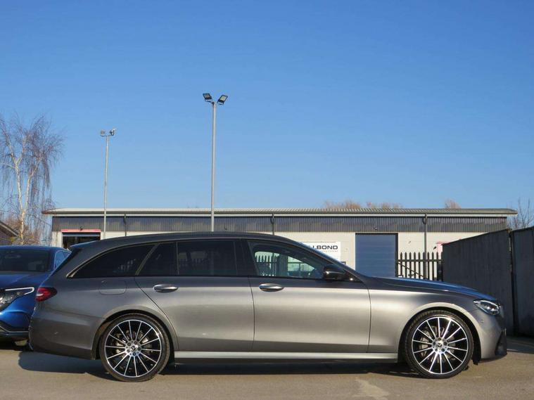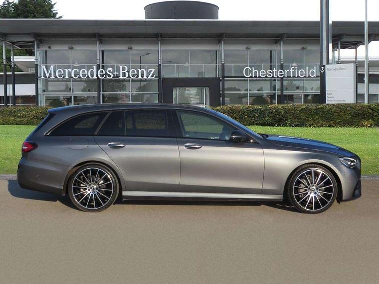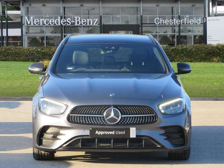 Attention assist, Brake wear warning display, Cockpit display 10.25" widescreen digital instrument cluster, Direct steer speed sensitive steering, DYNAMIC SELECT with a choice of driving modes (ECO, Comfort, Sport, Sport+ and Individual), Easy-pack tailgate - Powered opening/closing automatically, ECO start/stop function, Emergency call service, High resolution 10.25" multimedia colour display, MBUX voice control activated by keywords "Hey Mercedes", Mercedes connect me, Outside temperature display, Remote boot release, Service indicator (ASSYST), Smartphone integration via Android Auto/Apple CarPlay, Media Interface, USB and Bluetooth interface, Status display for rear seat belts in instrument cluster, Touchpad without controller, Traffic sign assist, Trip computer in multifunction display showing current fuel consumption, Wireless charging, 25 litre AdBlue tank, 66 litre fuel tank, 9G TRONIC 9 speed automatic transmission, Agility control sports suspension with selective damping system and lowered by 15mm, Diesel particulate filter, Incorrect fuelling protection, Rear air suspension with level control, 2 USB ports in centre console, 2 USB ports in the rear, Burmester surround sound system with 13 speakers and a 9 channel amplifier with total output of 590 watts, MBUX multimedia system with DAB digital radio and touchpad including satellite navigation, 3rd brake light, Adaptive brake lights, Aerial integrated in rear window, AMG bodystyling front and rear aprons in polished aluminium, Chrome pins diamond radiator grille, surround in high gloss black, single louvre in chrome with insert in high gloss black and integral star, Chrome roof rails, Electric windows with one touch opening/closing and obstruction sensors, Electrically adjustable and heated door mirrors, Front apron in high gloss black, High gloss black exterior mirror housing, High gloss black rear bumper with chrome trim, Illuminated front door sill panels with Mercedes-Benz lettering, LED High Performance headlamps including integral LED daytime running lamps and adaptive highbeam assist, LED rear lights, Panoramic electric glass sunroof, Privacy glass Includes rear side windows and rear windscreen, Rain sensor with automatic headlight activation, Rear side wing doors, Rear wiper, Tail lights, Top surround of side windows in polished aluminium, Visible twin pipe exhaust system integrated into bumper, Waistline trim strip in high gloss black, 3 seat bench in 2nd row, 3 spoke multifunction flat bottom AMG steering wheel with chrome inserts and touch control buttons, trimmed in black nappa leather, 40:20:40 split folding rear bench seat, Artico man-made leather upper dashboard and beltlines with contrast stitching, Automatic child seat recognition sensor, Black door pins, Black roof lining, Central stowage compartment with 12 V socket in centre console, USB socket for use with Android Auto and Apple CarPlay, Courtesy lights in rear grab handles with reading light functionality, Floor mats with AMG lettering, Four way partially front electric seat adjustment, Front centre armrest with stowage compartment, Glasses compartment in overhead control panel, Glove compartment - lockable, air conditioned and illuminated, Head restraints for driver and front passenger (four-way adjustability) and in rear (two-way), Heated front seats, Interior lighting - 64 colour Ambient lighting, Leather upholstery, Seat occupancy sensor for front passenger seat, Single front passenger seat, Steering column electrically adjustable for height and reach, Steering wheel multifunction with gearshift paddles, Steering wheel touch control buttons for audio and onboard settings, Sunvisors with illuminated vanity mirrors, THERMOTRONIC automatic climate control system with 3 climate zones, Mirror pack - E Class, Parking package including 360 degree camera - E Class, Seat comfort pack - E Class, Stowage pack - E Class Estate, 3x3 point rear seatbelts, Active bonnet pedestrian safety measure which detects an impact and raises bonnet, Adaptive brake system with HOLD function and brake drying in the wet, Airbags - sidebag for driver and front passenger with combined thorax/pelvis bag, Anti-lock braking system (ABS), Childproof locks manually operated for rear doors and electrically operated for rear power windows, Driver and adaptive front passenger airbags, Drivers knee airbag, Electronic parking brake, Electronic Stability Programme, Hill start assist, ISOFIX child seat attachment points two outer rear seats, Perforated brake discs with Mercedes Benz lettering, Pre-Safe anticipatory safety system, Tyre pressure monitoring system, Warning triangle and first aid kit, Window airbags, Alarm system/interior protection/immobiliser, Central locking with interior switch, automatic locking and crash sensor with emergency opening function, Chrome surround in electric key, Keyless entry go starting function, Grey open pore ash wood trim and centre console in grey open pored ash wood, 20" AMG multi spoke light alloy wheels painted in high gloss black with high sheen finsih, Summer tyres, TIREFIT with tyre inflation compressor,