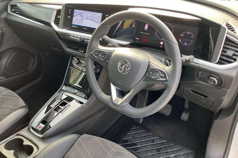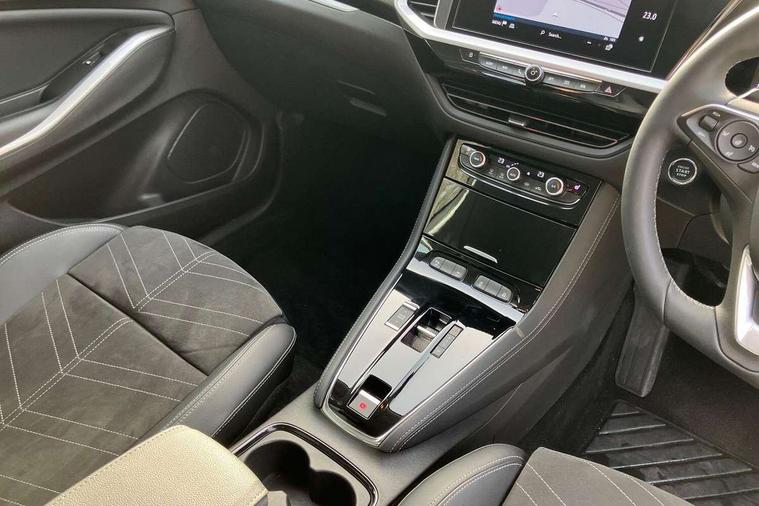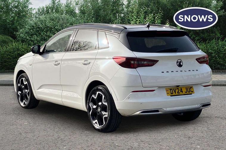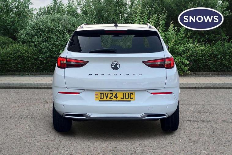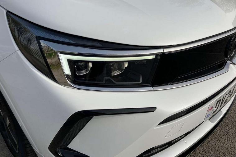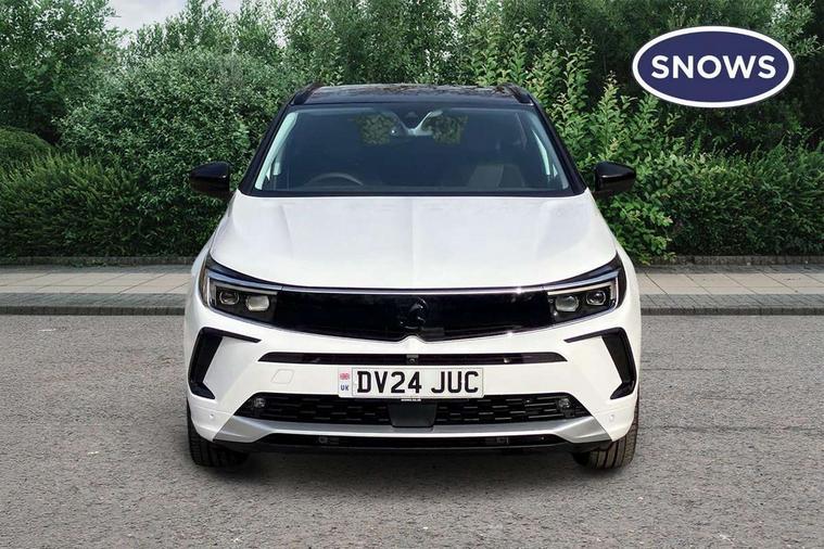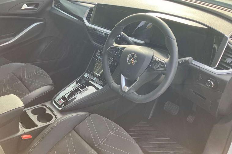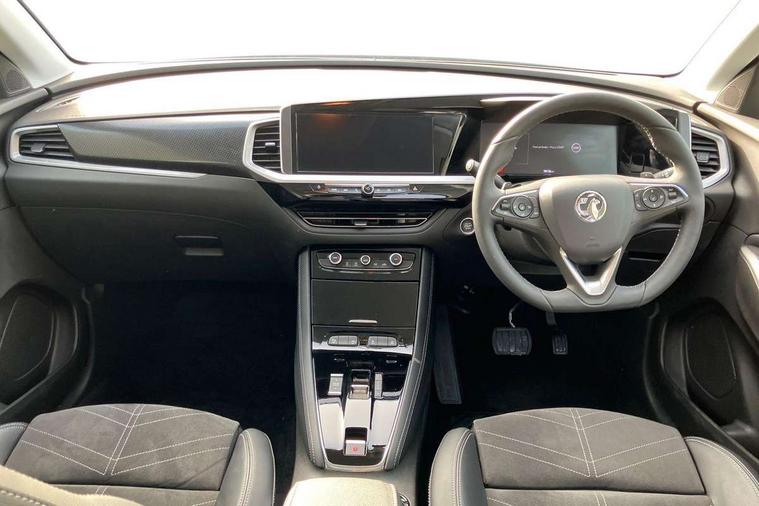 Central facia display with digital clock, outside air temperature and audio information, Digital fuel gauge with low fuel level warning light, Digital rev counter, Digital speedometer, Digital water temperature gauge with warning light, Drive mode selector (Eco, Normal, Sport), Driver drowsiness alert system, Driver information - Total mileage, service indicator, oil life, Front and rear parking distance sensors with 360 degree rear view camera and advanced park assist, Gearshift up/down indication light, Highway integration assist (Lane positioning assistant and Adaptive cruise control), Lane departure warning system, Lane keep assist, Lights on audible warning, Multi function trip computer - Trip odometer, vehicle range, average speed and fuel economy, instantaneous fuel economy and driving time, Multimedia Pure Panel Navigation System incl 10" colour touchscreen, 12" digital instrument cluster & satellite naviagtion, Power operated tailgate with foot sensor, Side blind spot alert, Speed sensitive electric power assisted steering, Speed sign recognition, Start/stop system, Vauxhall connect including Emergency call (SOS e-call) and Breakdown call (b-call), Wireless charger for mobile devices, Anti-roll bars, Compound crank rear suspension with coil springs and gas pressure dampers, Independent decoupled MacPherson strut front suspension with gas pressure dampers and coil springs, anti-roll bar, Six speaker - four front + two rear, Steering wheel mounted audio/phone/cruise controls, Automatic lighting control, Automatically dimming anti dazzle rear view mirror, Black door mirrors, Black side window trim, Body colour door handles, Body colour lower front and rear bumpers, protective wheel arches and lower door cladding, Body colour upper front bumper, Collapsible windscreen wipers, Dark tinted rear windows, Door to door illumination, Electric adjustable/heated/folding door mirrors, Electrically operated front and rear windows with safety auto reverse and one touch up/down facility, Front wiper system spraying directly from wipers, Hazard warning lights, Heated rear screen with timed cut off, Heated windscreen, High beam assist, High gloss black exterior detailing, High gloss black Griffin for Vizor and tailgate with high gloss black Grandland tailgate lettering, High gloss black roof rails, High level centre rear brake light, IntelliLux adaptive LED pixel headlights and LED tail lights, Intermittent rear window wash/wipe, LED daytime running lights, LED front fog lights, Magic wash, Manual headlight beam levelling, Rain sensor windscreen wipers, Rear side wing doors, Rear spoiler, Reversing light, Shark fin aerial, Silver effect protective front and rear skid plate, Soundproof insulated windscreen, Two speed windscreen wipers with variable intermittent wipe, Upper and lower bumper design, Vizor front grille, Welcome lighting, 12V electrical accessory socket in front, 3 bench rear seats in 2nd row, 3 spoke heated flat bottom leather effect steering wheel with satin chrome effect bezel, 6 way adjustable Ergonomic active heated sports style front seats AGR approved with seat cushion extension and lumbar adjustment, 60/40 split folding rear seat with centre rear seat armrest and load though facility, Advanced predictive logic control system using a sun sensor, Alcantara upholstery, Ambient centre console downlighter, Automatic air direction and fan speed with manual override, Charcoal filter, Chrome effect interior door handles, Covered storage compartment in centre console and in driver armrest, Driver's centre armrest, Driver/passenger sunvisors with illuminated vanity mirrors, Dual zone electronic climate control, Front door pockets with 2.6 litre capacity, Front seat back storage pockets, Fully carpeted luggage area, Height adjustable headrests, Illuminated luggage area, ISOFIX on front passenger and rear outer seats, Luggage compartment cover, Reach + rake adjustable steering column, Rear centre seat head restraint, Rear door pockets with 1.8 litre capacity, Rear passenger compartment heating ducts, Rear reading lights, Two drinks holders in centre console, Anti-lock braking system (ABS), Automatic emergency braking with pedestrian detection, Child proof locks on rear doors, CSC - Cornering stability control, Deactivation switch for front passenger front and side impact airbags, Deflation detection system, Driver airbag, Dual seatbelt pretensioners on front seats, EBD - Electronic brakeforce distribution, Electronic parking brake, Electronic stability program (ESP) including traction control, Forward collision alert, Front brake ventilated disc 304mm diameter, Front passenger airbag, Front seat side impact airbags, Full-size curtain airbags for driver and front passenger, Hill start assist, Hydraulic Brake Assist (HBA), Inertia reel lap and diagonal seatbelts for all seats, Load limiters on outer rear seatbelt retractors, Pretensioners on outer rear seatbelt retractors, Rear brake ventilated disc 268mm diameter, Smart seatbelt reminder for front and rear seats, Tyre pressure monitoring system, Central locking, Deadlocking system, Electronically protected audio equipment, Engine deadlock immobiliser, Keyless entry and start, Locking wheel nuts, Remote security alarm system, Black door panels with black premium leather effect inserts, Dax decor facia panel with palladium medium finish, 19" diamond cut bi-colour alloy wheel,