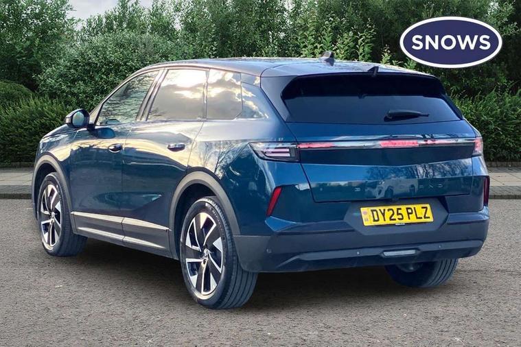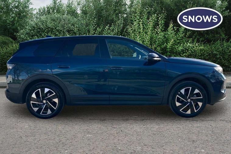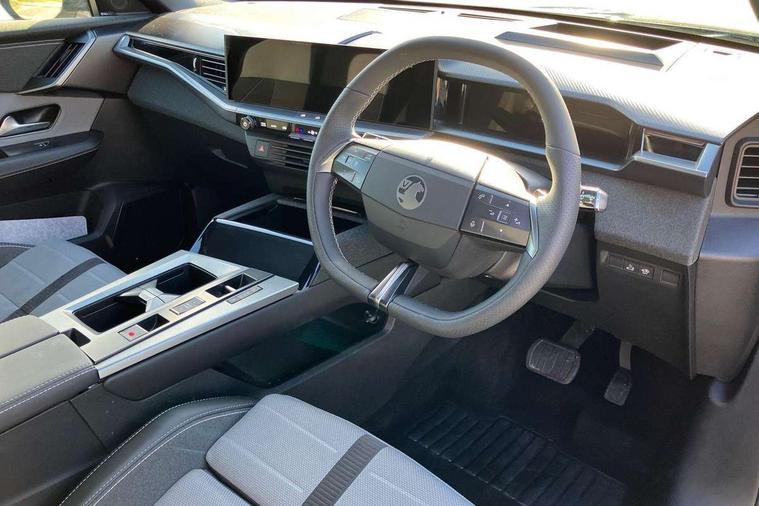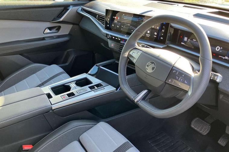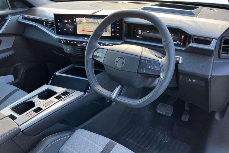 10" digital instrument cluster, 16" multimedia navigation with wireless Apple Carplay/Android auto, 360 degree surround camera, Anticipated intelligent speed adaptation, Central facia display with digital clock, outside air temperature and audio information, Curve speed adaptation, Digital fuel gauge with low fuel level warning light, Digital rev counter, Digital speedometer, Digital water temperature gauge with warning light, Drive mode selector (Eco, Normal, Sport), Driver information - Total mileage, service indicator, oil life, Electric power steering, Front and rear parking sensors, In-crash braking, Intelli-HUD (Extended heads up display), IntelliDrive 2.0 - Semi autonomous lane change assist with lane positioning assist, rear cross traffic alert and side long range blind spot detection, Lights on audible warning, Multi function trip computer - Trip odometer, vehicle range, average speed and fuel economy, instantaneous fuel economy and driving time, Power tailgate, Speed sign recognition, Start/stop system, Vauxhall connect including Emergency call (SOS e-call) and Breakdown call (b-call), Wireless charger for mobile devices, Anti-roll bars, Compound crank rear suspension with coil springs and gas pressure dampers, Independent decoupled MacPherson strut front suspension with gas pressure dampers and coil springs, anti-roll bar, Stability control, 2 rear USB-C sockets, AM/FM and DAB radio, Premium focal Hifi sound system includes 10 speakers and subwoofer, Radio controls on steering wheel, Acoustic windscreen, Auto headlights, Automatic headlight beam levelling, Black door mirrors, Black grained wheel arch claddings, Body colour door handles, Dark tinted rear windows, Electrically defrosting driver and passenger door mirrors, Electrochromic frameless rear view mirror, Front illuminated griffin, Front wiper system spraying directly from wipers, Grained lower door claddings, Heated windscreen, High gloss black front and rear bumpers, High gloss black roof spoiler, Illuminated rear Vauxhall, IntelliLux LED headlights with 3D illuminated vizor, welcome and farewell animation, 11 driving modes and adaptive high beam assist, Intermittent rear window wash/wipe, LED 3rd brake light, LED daytime running lights, LED tail lights, Magic wash, Panoramic opening glass roof, Power folding door mirrors with memory function and reverse mode, Power front and rear windows, Rain sensor windscreen wipers, Rear side wing doors, Rear wipers with camera cleaning, Two speed windscreen wipers with variable intermittent wipe, Welcome lighting, 10 way manual adjustable heated front seats with AGR approved with pneumatic lumbar support, cushion nose extension and power tilt, 2 cupholders with slider, 3 12V plugs, 3 bench rear seats in 2nd row, 3 spoke leather effect steering wheel with dimpling, 7 colour ambient lighting, Automatic air conditioning, Centre console armrest, Chrome effect interior door handles, Clean cabin system, Cooled glove box and central console storage with LED light, Dashboard and door panels polychromatic ambient lighting, Dual zone electronic climate control, Front door storage with 1.5 litre capacity, Front seat back storage pockets, Fully carpeted luggage area, Heated steering wheel, Height adjustable headrests, Illuminated vanity mirrors, Intelli air, Paddle shifts, Pixel storage, Rear armrest, Rear centre seat head restraint, Rear clothes hooks on B pillar trims, Single passenger seat, Sunglasses Box, Touch sensitive front and rear reading lights, Anti-lock braking system (ABS), Automatic emergency braking system, Child proof locks on rear doors, Deactivation switch for front passenger front and side impact airbags, Deflation detection system, Driver airbag, Dual seatbelt pretensioners on front seats, EBD - Electronic brakeforce distribution, Electronic parking brake, Front and rear ventilated discs, Front passenger airbag, Front seat side impact airbags, Full-size curtain airbags for driver and front passenger, Hill assist control, Hydraulic Brake Assist (HBA), Inertia reel lap and diagonal seatbelts for all seats, Load limiters on outer rear seatbelt retractors, Pretensioners on outer rear seatbelt retractors, Rear 3 point ISOFIX, Smart seatbelt reminder for front and rear seats, Tyre pressure monitoring system, Central locking, Deadlocking system, Electronically protected audio equipment, Engine deadlock immobiliser, Keyless entry and start, Locking wheel nuts, Remote security alarm system, Mistral dark ambience, 19" Diamond cut alloy wheels, Tyre repair kit,