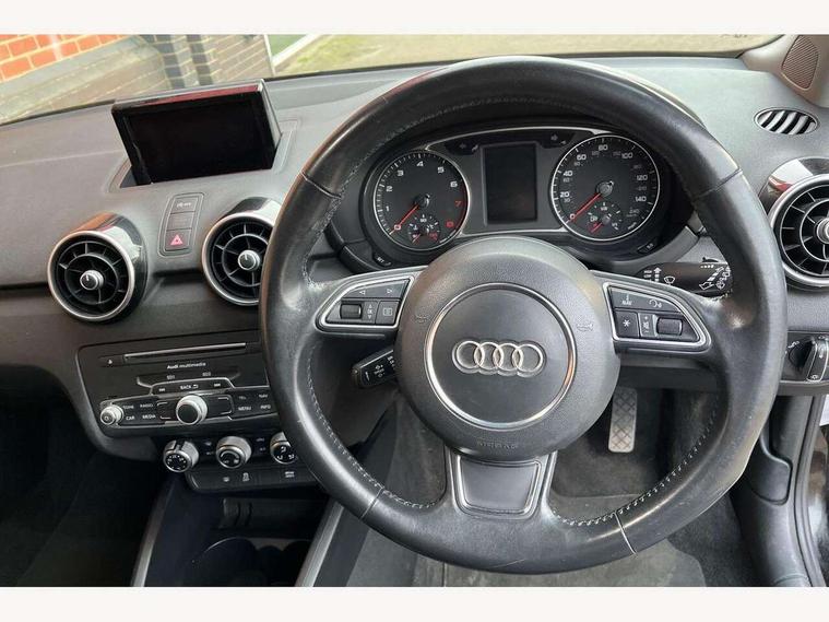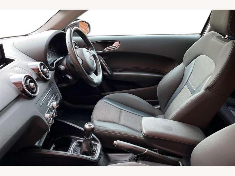 Audi drive select, Electro-mechanical PAS, Low washer fluid indicator, Service interval indicator, Voice control system, Additional SD card reader, Audi music interface, Bluetooth audio streaming, DAB Digital radio, Adaptive brake lights, Electric adjustable door mirrors, Electric front windows, Front fog lights, Heat insulating glass, Heated door mirrors, Heated rear windscreen, Rear wiper, 12V Accessory socket in centre console, 3 spoke leather multifunction sports steering wheel, Adjustable rear head restraints, Cupholders in centre console, Door sills trims with aluminium inlays, Front floor mats, Front head restraints, Front seats - 'Easy Entry', Front sports seats, Height adjustable front seats, Illuminated glovebox, Isofix attachments on outer rear seats, Jack and tool kit, Leather handbrake, Lumbar adjustment for front seats, Rake/reach adjustable steering wheel, Split folding rear seats, Connectivity pack - A1, ABS/EBD, Brake assist function, Driver and passenger side airbags, Driver/Front Passenger airbags, EDL, ESP with ASR, First aid kit, Front and rear seatbelt reminder, Front passenger airbag deactivation, Head airbags, Height adjustable front seatbelts, Rear three point seatbelts x 2, Tyre pressure monitor, Warning triangle, Locking wheel bolts, Remote control central locking, Thatcham category 1 alarm + immobiliser, Tyre repair kit,