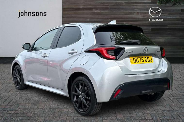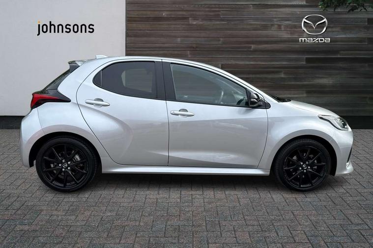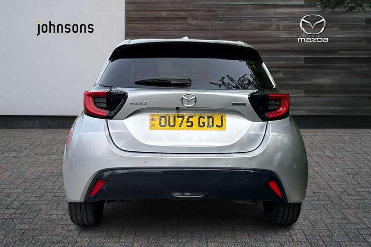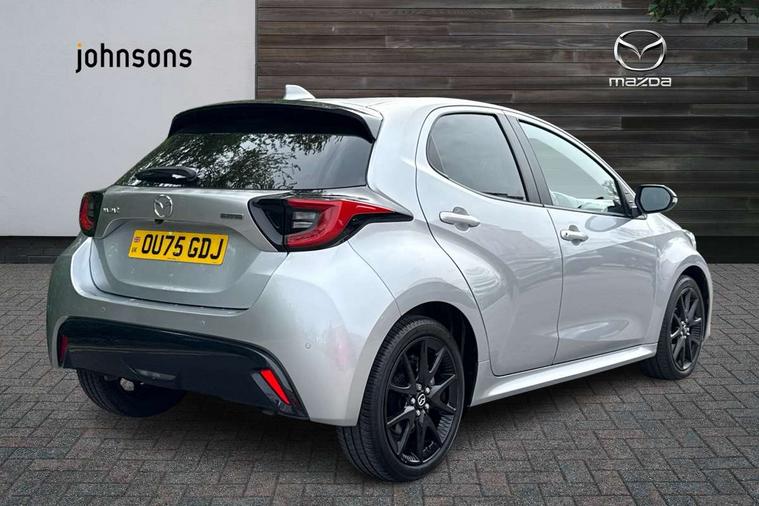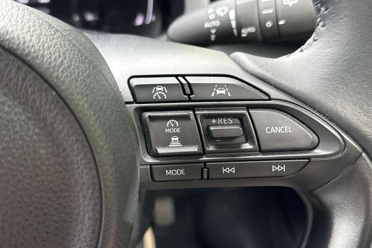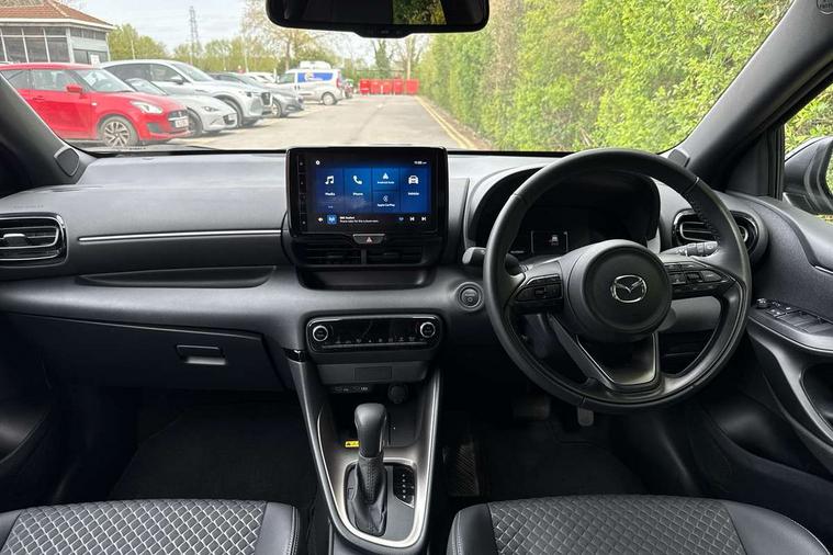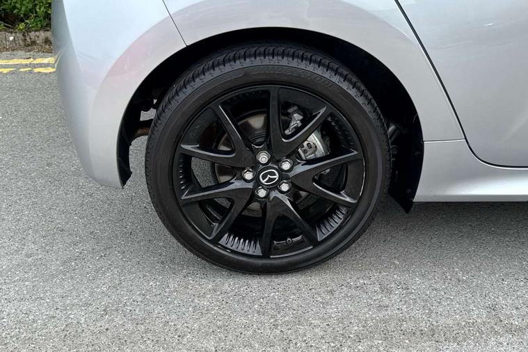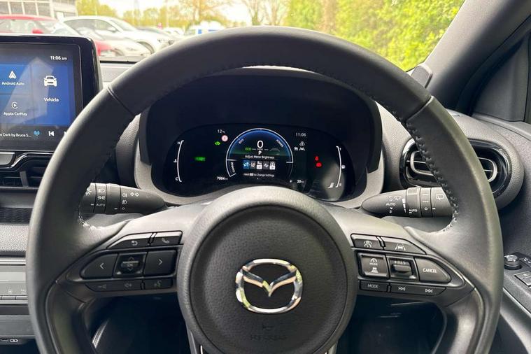 7" Digital instrument cluster with speedometer and hybrid system indicator, Adjustable speed limiter, Drive mode selector (Eco, Normal and Power), Driver attention alert system, Dynamic radar cruise control, E-call with GPS, EV drive mode, Front and rear parking sensors, Integrated bluetooth, Lane tracing assist includes Lane centering, Lane departure alert, Steering assist and Vehicle sway warning, Multi-information display, PAS, Push button start and stop, Qi wireless charging, Rear cross traffic alert with auto braking, Reversing camera, Road sign assist - RSA, Service indicator, Tailgate, Trip computer, Wireless Apple CarPlay and wired Android Auto, i-stop, 6 speaker audio system and 9" colour screen centre display, DAB Digital radio, Steering wheel mounted audio/bluetooth controls, USB type C port, Auto dimming rear view mirror, Auto folding door mirrors, Automatic high beam - AHB, Body coloured front bumper, Body coloured rear bumper with gloss black lower mouldings, Coming home function, Dusk sensing headlights, Front and rear electric windows, Gloss black electric adjustable/heated door mirrors, Gloss black front grille, Gloss black rear roof spoiler, Hybrid badge, LED front fog lights, LED headlights with manual headlight levelling and LED daytime running lights, LED rear combination light with LED turn signals, LED third brake light, Mazda unique tailgate garnish, Piano black lower window garnish, Privacy glass in rear side and rear windows, Rain sensing front wipers with adjustable sensitivity and speed, Rear side wing doors, Rear wash wiper, Shark fin antenna, Welcome lighting, 12V power outlet, 3 seat bench in 2nd row, 60/40 split fold down rear seats, Ambient lighting, Black roof lining in pillar and ceiling, Cloth/Synthetic leather upholstery, Driver, front passenger and two rear door storage, Driver, Front passenger and two rear grab handles with coathooks, Drivers seat manual slide recline and height adjustment, Drivers/front passengers with covered vanity mirrors and light, Dual zone climate control, Front centre armrest with console storage, Front head restraints, Front passenger seat manual slide, recline and height adjust, Front sport seats, Glovebox, Interior courtesy light with LED illumination, ISOFIX child seat anchorage points attached on outer rear seats, Leather handbrake, Leather wrapped gearshift, Leather wrapped steering wheel with telescopic and tilt adjustment, Luggage compartment light, Seatback pocket at rear of the front passenger seat, Single front passenger seat, Three height adjustable rear head restraints, 2x3 point front seatbelts with pre-tensioners, 3 point seatbelts on all rear seats, Airbags - driver and front passenger, Anti-lock braking system (ABS), Blind spot monitoring with rear cross parking support brake function, Collision mitigation braking system, Driver and passenger central airbags, Dynamic stability control + Traction control, Electronic parking brake with auto-hold and auto-disengage function, Emergency brake light signal (EBS), ESP, Front and rear curtain airbags, Front passenger airbag cut-off switch, Front side airbags, Hill start assist control (HAC), Manual child lock in rear doors, Pre-crash safety system - PCS, Rear parking support brake, Regenerative braking system, Seatbelt reminder audible warning, Tyre pressure monitoring system, Deadlocking system, Remote central locking, Smart keyless entry, Thatcham approved immobiliser and alarm, 17" Alloy wheels, Emergency tyre repair kit,