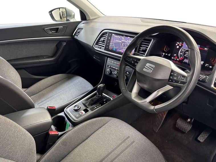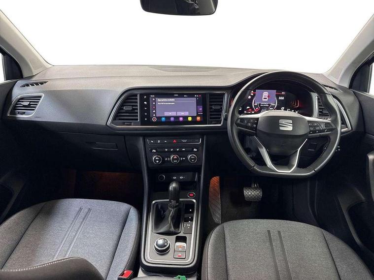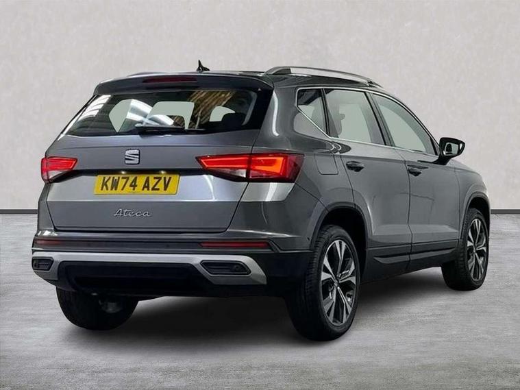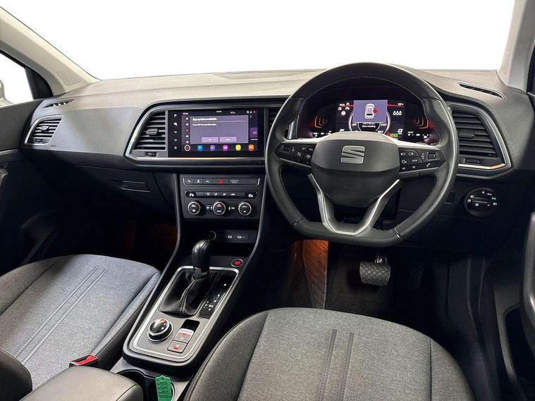 8" Digital cockpit, Colour multi-function on board computer display, Cruise control system with speed limiter, E-call, Outside temperature gauge, PAS, SEAT drive profile with driving experience button - Normal, Sport, Eco and Individual mode, gearshift, steering and throttle response, Self parking functionality (includes front and rear parking sensors), Start/stop system, Tailgate, Trip computer, wired and wireless full link smartphone integration, Wireless phone charger, Steering wheel mounted audio/phone controls, Black wheel arch surrounds, Body colour bumpers, Chrome front grille frame, Chrome roof rails, Chrome side window trim, Daytime running lights, Door mirrors with welcome light silhouette, Dynamic headlight range control with self adjusting whilst driving, Electric adjustable/heated/folding door mirrors, Front and rear electric windows, Full LED headlamps with lens and LED front fog lamps with cornering function, LED 3rd brake light, LED rear tail lights, Rear exhaust tailpipe, Rear fog lights, Rear side wing doors, Rear wash/wipe, Variable front intermittent wipers, 12V socket in front, 3 seat bench in 2nd row, 60/40 split folding rear seat, Cloth upholstery with front comfort seats, Drawer under right front seat, Dual zone climate control, Front and rear head restraints, Front centre armrest, Front seat back storage pockets, Height adjustable driver and passenger seat with lumbar adjustment, ISOFIX points in outer rear seats with top tether anchorage points, Leather sports steering wheel and gear knob, Rear armrest and easy back seat release mechanism from boot, Single front passenger seat, Steering wheel mounted gearshift paddles, Convenience pack - Ateca, Interior lighting pack - Ateca, Navigation system pack with DAB - Ateca, Safety and driving pack with attention and drowsiness assist - Ateca, 3x3 point rear seatbelts, ABS, Traction control system (TCS), Electronic stability control (ESC) and Electronic differential lock system (XDS), Airbags - Driver and front passenger airbag with deactivation, front side, two curtain and driver's knee airbags, Electric parking brake with auto hold function, Front and rear seatbelt reminder, Front assist with autonomous emergency braking, Hill hold control, Manual rear child locks, Single tone horn, Tiredness recognition system, Tyre pressure monitoring system, Alarm, Keyless entry, Locking wheel bolts, Remote central locking, Chrome interior detailing, 18" Performance machined alloy wheels 36/2 in nuclear grey,
