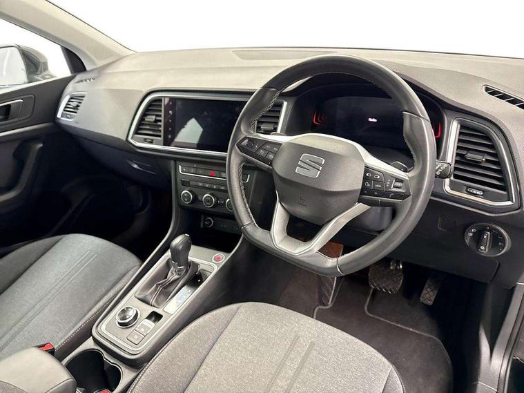 8" Digital cockpit, Colour multi-function on board computer display, Cruise control system with speed limiter, E-call, Outside temperature gauge, PAS, SEAT drive profile with driving experience button - Normal, Sport, Eco and Individual mode, gearshift, steering and throttle response, Self parking functionality (includes front and rear parking sensors), Start/stop system, Tailgate, Trip computer, wired and wireless full link smartphone integration, Wireless phone charger, Steering wheel mounted audio/phone controls, Black wheel arch surrounds, Body colour bumpers, Chrome front grille frame, Chrome roof rails, Chrome side window trim, Daytime running lights, Door mirrors with welcome light silhouette, Dynamic headlight range control with self adjusting whilst driving, Electric adjustable/heated/folding door mirrors, Front and rear electric windows, Full LED headlamps with lens and LED front fog lamps with cornering function, LED 3rd brake light, LED rear tail lights, Rear exhaust tailpipe, Rear fog lights, Rear side wing doors, Rear wash/wipe, Variable front intermittent wipers, 12V socket in front, 3 seat bench in 2nd row, 60/40 split folding rear seat, Cloth upholstery with front comfort seats, Drawer under right front seat, Dual zone climate control, Front and rear head restraints, Front centre armrest, Front seat back storage pockets, Height adjustable driver and passenger seat with lumbar adjustment, ISOFIX points in outer rear seats with top tether anchorage points, Leather sports steering wheel and gear knob, Rear armrest and easy back seat release mechanism from boot, Single front passenger seat, Steering wheel mounted gearshift paddles, Convenience pack - Ateca, Interior lighting pack - Ateca, Navigation system pack with DAB - Ateca, Safety and driving pack with attention and drowsiness assist - Ateca, 3x3 point rear seatbelts, ABS, Traction control system (TCS), Electronic stability control (ESC) and Electronic differential lock system (XDS), Airbags - Driver and front passenger airbag with deactivation, front side, two curtain and driver's knee airbags, Electric parking brake with auto hold function, Front and rear seatbelt reminder, Front assist with autonomous emergency braking, Hill hold control, Manual rear child locks, Single tone horn, Tiredness recognition system, Tyre pressure monitoring system, Alarm, Keyless entry, Locking wheel bolts, Remote central locking, Chrome interior detailing, 18" Performance machined alloy wheels 36/2 in nuclear grey,