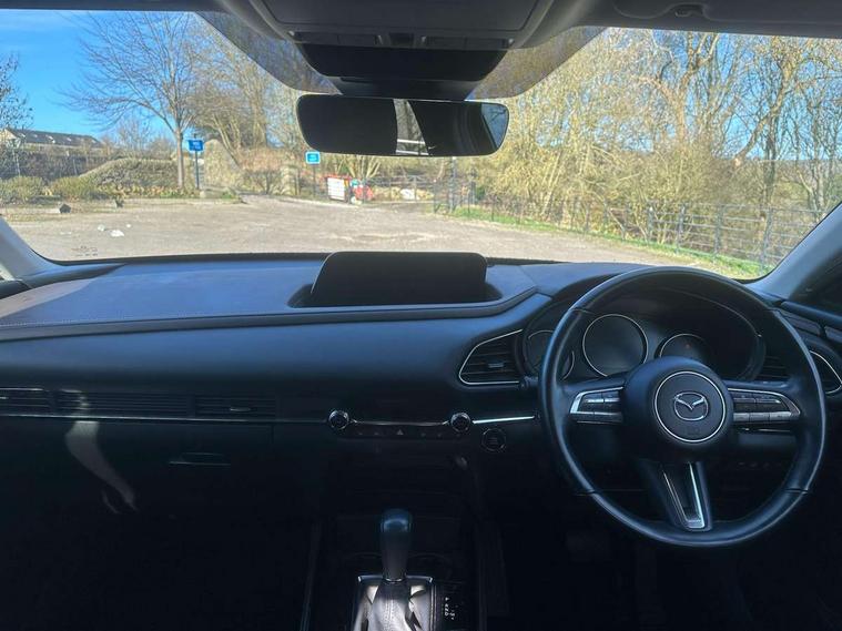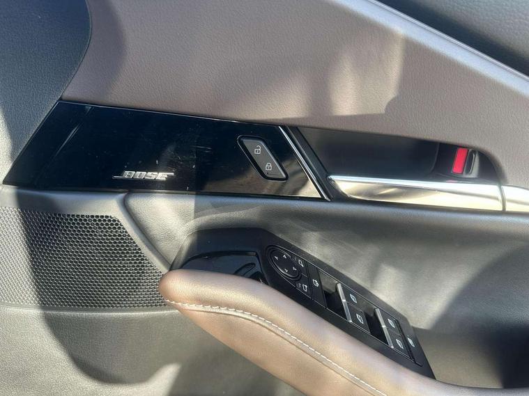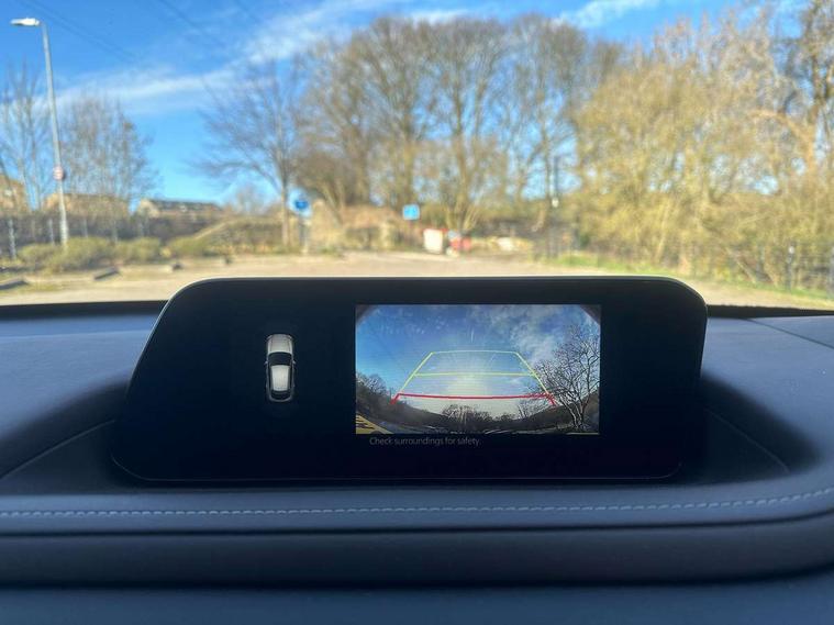 7" TFT Colour driver instrument panel display, 8.8" Colour centre touch screen display with Mazda Connect infotainment, Adaptive cruise control (Mazda radar cruise control) features stop and go, Apple car play/Android Auto, Blind spot monitoring with rear cross traffic alert, Drive mode selector, Driver attention alert system, E-call with GPS, Emergency stop signalling system, Engine start/stop button, Front and rear parking sensors, Integrated bluetooth, Integrated Mazda navigation system, Intelligent speed assist, Lane keep assist system (LAS) with Lane departure warning system (LDWS), Mazda connected services, PAS, Power lift gate, Reversing camera, Service indicator, Tailgate, Traffic sign recognition, Trip computer, Windscreen projected colour active driving display (HUD), i-stop, 2 USB charging ports in front inner central armrest, AM/FM and DAB radio, Bose surround sound system with 12 Speaker, Bose center point, Bass match and audio pilot technology, Multimedia Commander including separate volume dial, Steering wheel mounted audio/bluetooth controls, Adaptive LED Headlights, Auto dimming driver's door mirror, Auto headlight levelling, B-pillar and C-pillar garnishes in piano black finish, Body coloured, electrically adjustable, heated auto power folding door mirrors with integrated indicators, Chrome finish signature wing in front grille, Coming/leaving home lighting function, Door mirrors with adjustable memory and tilt-down function when reversing, Dual chrome exhaust, Dusk sensing headlights, Electric front/rear windows with one touch auto up/down, Frameless auto dimming interior rear view mirror, Front kodo turn signal, Gloss black front grille, Gloss black rear roof spoiler, High beam assist, LED signature daytime running lights, Privacy glass (rear side windows and rear screen), Rain sensing front wipers with adjustable speed and intermittent wipe, Rear fog lights, Rear side wing doors, Rear wiper, Signature LED rear combination lights, Third brake light, 12V power outlet in centre console, 3 seat bench in 2nd row, 60/40 split fold down rear seats, Chrome horn pad ring, Chrome interior trim accents with steering wheel centre bezel, surround of engine start / stop button and glove box handle, Dashboard, door cards and front centre armrest in rich brown leather, Driver and front passenger visors with covered vanity mirror and driver ticket holder, Driver's seat, power tilt, slide, recline, height and lumbar adjustment, Driver, front passenger and two rear door storage, Driver, Front passenger and two rear grab handles with coathooks, Dual zone climate control air conditioning with rear air vents, Folding rear centre armrest with two cup holders, Front and rear (x3) head restraints, Front and rear LED lighting, Front armrest, Front centre storage with two cupholders with lid, Front passenger seatback pockets, Front passengers seat manual slide, recline and height adjustment, Glovebox illumination, Heated front seats with 3 stage setting, Heated steering wheel, ISOFIX child seat anchorage points attached on outer rear seats, Leather upholstery with interior accents, Leather wrapped gear shift knob, Leather wrapped steering wheel with telescopic and tilt adjustment, LED luggage compartment lighting, Light roof headlining and pillars, Paddle shift controls, Rear armrest inner material in cloth, Roof mounted sunglasses holder, Single front passenger seat, 3 point ELR front seat belts x2 with pretensioners, 3 point ELR rear seat belts, Anti-lock braking system (ABS), Drivers knee airbag, DSC - Dynamic Stability Control, Electronic parking brake with auto disengage function and auto hold function, Front and rear curtain airbags, Front dual stage driver and single stage front passenger airbags, Front passenger airbag cut-off switch, Front side airbags, Front smart city brake support, G-Vectoring control plus, Hill launch assist, Manual child lock in rear doors, Mild Hybrid system with regenerative braking, Seatbelt reminder for driver/front passenger and rear seats, Traction control system (TCS), Tyre pressure monitoring system (TPMS), Remote central locking with deadlocking and automatic door lock when driving, Smart keyless entry, Thatcham accredited alarm and immobiliser, Dark vinyl door panel inserts, 18" Bright alloy wheels, Emergency tyre repair kit,