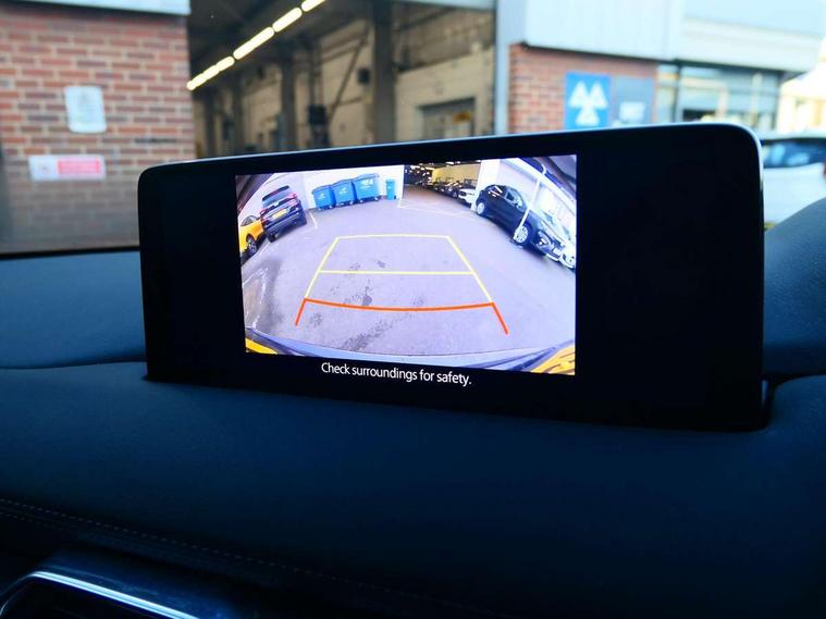 10.25" display with Mazda Connect infotainment, 7" colour TFT display, Advanced blind spot monitoring, Apple car play/Android Auto, Bluetooth connectivity with voice control, Collision prevention assist, Connected services, Cruising Traffic Support, Drive mode selector, Electric power steering, Emergency stop signalling system, Engine start/stop button, Forward collision warning, Front and rear parking sensors, Integrated navigation system, Intelligent speed assist, Lane departure warning system, Lane keep assist, Radar cruise control with Stop and Go, Reversing camera, Service indicator, Traffic sign recognition (TSR), Trip computer, Windscreen projected colour active driving display (HUD) with memory, i-stop, 2 USB sockets in rear, 2x USB sockets in front, 6 speakers, AM/FM radio, Bluetooth audio streaming, DAB Digital radio, Multimedia Commander including separate volume dial, Steering wheel mounted audio controls, Adaptive front lighting system, Auto dimming rear view mirror, Automatic headlights, Black inlay dashboard panel, Body colour door mirrors, Body colour roof spoiler, Body coloured front and rear black lower bumper mouldings, Bright finish signature wing, Coming/leaving home lighting function, Door mirror integrated indicators, Dual chrome tailpipes, Dusk sensitive headlamps, Electric front/rear windows with one touch auto up/down, Front grille in gloss black finish, Gloss black B and C pillars garnish, High beam assist, Intermittent rear wash/wipe, LED auto levelling, LED daytime running lights, LED front fog lights, LED Headlights, LED third brake light, Power folding and heated door mirrors, Power tilt/slide sunroof, Privacy glass (rear side windows only), Rain sensing front wipers, Rear side wing doors, Satin black side mouldings, Scuff plates, Shark fin antenna, Signature LED rear combination lights, Vinyl with wood grain metal inlay door trim panel, Windscreen wiper de-icer, 12v electrical power outlet, 3 seat bench in 2nd row, 3 stage heated front seats, 40:20:40 Karakuri fold-flat seat system, 6 way electric adjustable passenger seat, 8 way electric driver seat with lumbar support + memory, Cargo room flat floor board with waterproof undertray, Driver seat power slide, recline and height adjustment, Driver, Front passenger and two rear grab handles with coat hooks, Driver/passenger front seatback pockets, Driver/passenger sunvisors + illuminated vanity mirrors (drivers with ticket holder), Dual zone climate control, Folding centre armrest with 2 cup holders, Front and rear door pockets, Front centre storage with two cupholders, Front passenger seat power slide, recline and height adjustment, Heated steering wheel, Humidity sensor, Illuminated glovebox, Interior dome light with integral spotlight, ISOFIX child seat anchorage points attached on outer rear seats, Karakuri tonneau cover, Leather upholstery, Leather wrapped steering wheel and gear knob, Light roof lining, Luggage compartment LED lighting, Luggage compartment power outlet, Paddle shifts, Rear air vents, Rear headrests, Rear seat recline, Roof mounted sunglasses holder, Single front passenger seat, Three height adjustable head restraints, Tilt/height adjustable steering wheel, White interior LED illumination lighting, 3 point front seatbelts with pre-tensioners, 3 rear 3 point seatbelts, ABS, Advanced Smart City Brake Support - SCBS, Child locks on rear doors, Driver and front passenger side airbags, DSTC-Dynamic Stability and Traction Control, Dual front airbags, Electronic brake force distribution, Electronic parking brake with auto hold, ESP, Front and rear curtain airbags, Front passenger airbag deactivation, G-Vectoring control, Hill hold assist, Seatbelt reminder front and rear, Single stage passenger airbags, Smart brake support with forward obstruction warning, Tyre pressure monitoring system, Automatic door locking when moving off, Deadlock, Immobiliser, Power door locks, Remote central locking, Smart keyless entry, Thatcham Cat.1 alarm, 19" diamond cut black alloy wheels, Tyre repair kit,
