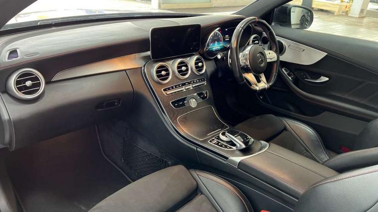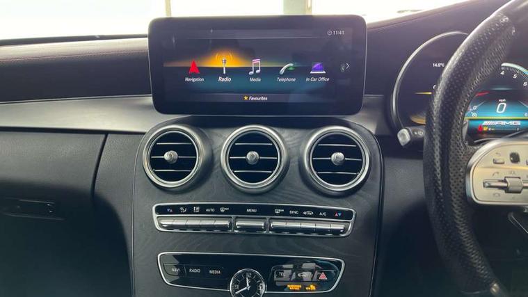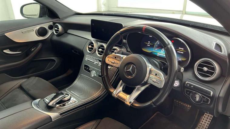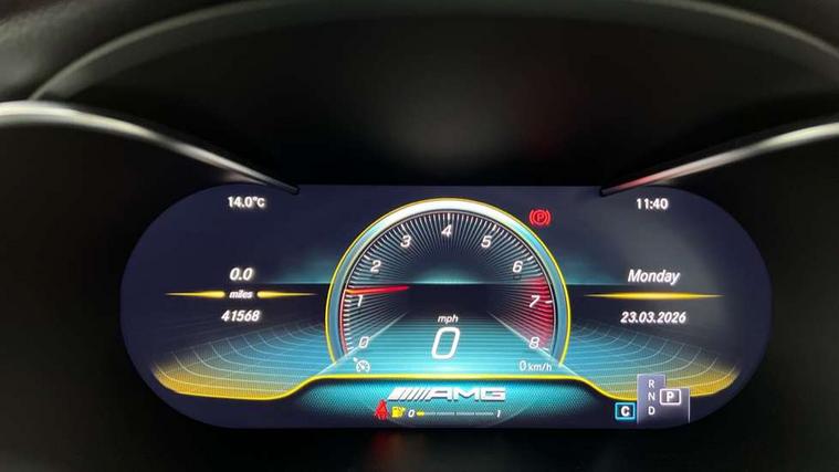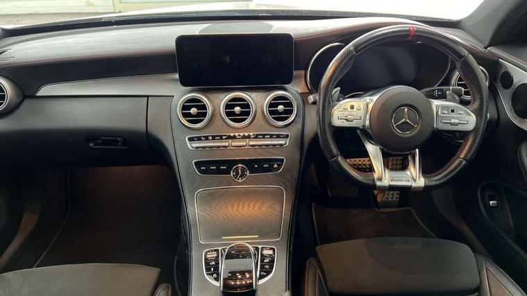 12.3" Active TFT crystal driver's instrument display, 2 stage speed sensitive sport steering, Active park assist with parktronic system, AMG boot logo in central screen, Attention assist, Bluetooth interface for hands free telephone, Collision prevention assist plus, Comand Online HDD Nav with media interface, radio/CD/DVD/MP3, 10.25 screen, linguatronic voice control, DYNAMIC SELECT with a choice of driving modes (ECO, Comfort, Sport, Sport+ and Individual), ECO start/stop function, Mercedes me connect including emergency call system, accident recovery, breakdown management and maintenance, Multi function trip computer, Outside temperature display, Pre-wiring for SD navigation system, Remote boot release, Reversing camera, Service indicator (ASSYST), Smartphone integration with Apple CarPlay and Android auto, Status display for rear seat belts in instrument cluster, Wireless charging, 66l fuel tank with increased capacity, 9G Tronic plus 9 speed automatic, AMG performance 4MATIC with torque control distribution, AMG Ride Control sports suspension, Petrol Particulate Filter, Audio 20 with integrated media interface and bluetooth handsfree function, DAB digital radio tuner, Mid-range sound system, SD card slot, Two USB ports and one SD Card slot in centre console, Adaptive brake lights, AMG bodystyling - front apron with distinctive air intakes and AMG rear apron with diffuser look, AMG design radiator grille with double louvre in matt iridium silver with AMG lettering, AMG performance exhaust system, Body coloured bumpers, Door sill panels with AMG lettering, Electric windows with one touch opening/closing and obstruction sensors, Exterior mirrors heated and electronically adjustable, Full LED tail lamps, Green tinted glass, LED daytime running lights, LED Indicators, LED third brake light, Multi beam LED headlights, Privacy glass (rear side windows and rear screen), Radio aerial integrated into rear window, Rain sensor windscreen wipers, Side windows surround in polished aluminium, V8 Bi-Turbo 4Matic badge on front wings, 2 cupholders in front centre console, 2 rear head restraints, 3 spoke flat bottom multi-function sports leather steering wheel in black with topstitching in red, 40:20:40 split folding rear seats, Artico man-made leather upper dashboard and beltlines with contrast stitching, Auto Mercedes-Benz child seat recognition sensor, Electrical height and back adjustment front seat, Floor mats with black leather edging red piping and AMG logo, Front centre armrest with storage compartment, Front head restraints, Front LED reading lights, Heated front seats, Illuminated glove compartment stowage, Interior lighting - 64 colour Ambient lighting, Sports pedals with stainless steel surfaces and rubber studs, Steering wheel audio controls, Steering wheel gearshift paddles, Sunvisors with illuminated vanity mirrors, THERMATIC 2 zone automatic climate control, Interior lighting package - C Class, Mirror package - C Class, Seat comfort pack - C Class, Stowage space pack - C Class, 2 rear seatbelts, 3 point automatic seatbelts, Active bonnet, Adaptive brake system with hold function, hill start assist and brake drying function, Anti-lock braking system (ABS), Automatic seatbelt pretensioner for driver and front passenger, Brake calipers with AMG lettering + perforated brake discs, Dual stage airbags - driver and front passenger, front sidebags, driver kneebag, pelvis bag and windowbags for driver, front and rear passengers, Electronic parking brake, Electronic Stability Programme (ESP), ISOFIX child seat attachment points with top tether in rear, Red seat belts, Sports braking system with larger brake discs, Tyre pressure monitoring system, Warning triangle and first aid kit, Anti-theft alarm system/interior protection with tow-away protection and interior monitoring systems, Central locking with interior switch, automatic locking and crash sensor with emergency opening function, Chrome surround electric key, Immobiliser, Artico man-made leather dashboard with red contrast stitching,
