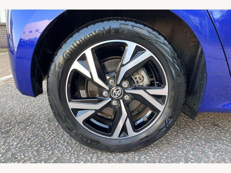7" Digital Combimeter, Adaptive cruise control, Adjustable speed limit with speed warning, Bluetooth connectivity, Colour binocular inspired displays with digital speedometer, E-call, Electric power steering, Hybrid energy display, Multi information display switches on steering wheel, Reversing camera, Smartphone integration with Apple CarPlay and Android auto, Tailgate, Voice recognition, Vehicle Stability Control (VSC), 4 speakers, 9" Multimedia touch display, Toyota Touch 3 system with DAB radio, USB connection, Acoustic windscreen glass, Auto windscreen wipers, Automatic headlights, Body coloured door mirrors, Electric adjustable heated door mirrors, Follow me home headlights, Front auto power windows with anti jam protection, Full LED rear lights, LED daytime running lights, LED front fog lights, LED front light guide, LED Headlights, LED High mounted stop lamp, LED Indicators, LED rear light guide, Manual headlight levelling, Painted chequered front grille, Rain sensor, Rear auto power windows with anti jam protection, Rear privacy glass, Rear side wing doors, Rear spoiler, Rear wiper, Shark fin antenna, Turning signal integrated indicators in door mirrors, Variable front intermittent wipers, 3 adjustable rear headrests, 3 seat bench in 2nd row, 3 spoke leather steering wheel, 60/40 split folding rear seat, Active headrests, Adjustable boot height, Auto air conditioning, Coat hooks in rear grab handles, Cup holders (2 front & door), Data Communication Module (DCM) connected services, Fabric upholstery, Front armrest, Glovebox, Grey roof lining, Height adjustable driver's seat, Isofix seat fixing, Leather gearshift, Pollen filter, Shopping bag hooks, Single front passenger seat, Tilt/telescopic steering column, 3 point seatbelts on all rear seats, ABS+EBD+Brake assist, Electronic parking brake, Emergency brake light system (EBS), Front passenger airbag on/off switch, Front seatbelt reminder, Hill start assist control (HAC), Rear child proof door locks, Rear seat belt reminder, Supplemental Restraint System (SRS) 8 airbags: Driver & passenger's airbags, dual side curtain airbags, side impact airbags, front centre airbag, Toyota Safety Sense 3 with over the air updates, Tyre pressure warning system, 2x Master key, Alarm/immobiliser, Remote powered central double locking doors, Soft touch instrument panel, Space saver spare wheel,