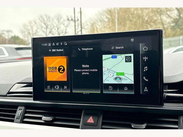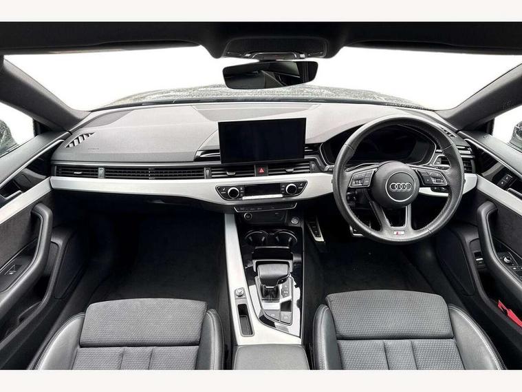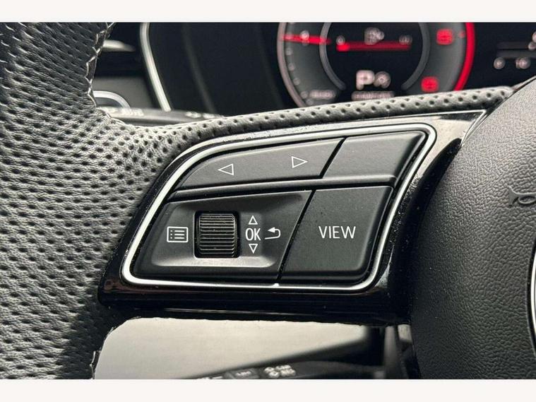 Audi connect safety and service (e-call), Audi connect with Amazon Alexa Integration, Audi drive select (Auto, Comfort, Dynamic, Efficiency and Individual), Audi parking system plus with front and rear sensors, Audi smartphone interface, Audi virtual cockpit - 12.3" full colour digital instrument cluster, vehicle/engine speed, Radio/media information+Driver assistance systems, Automatic start-stop system with coasting functionality and efficiency programme, Bluetooth interface, Electro-mechanical power steering, Email, calendar and text messages displayed via MMI, MMI nav+ with MMI touch - 10.1" high resolution MMI display, touch sensitive, 3D map, route/country info, dynamic route guide, personal route assist, Power operated tailgate, Rear view camera, Service interval indicator, Voice control system, Diesel particulate filter, Sports suspension lowered by 23mm, 8 passive loudspeakers, CD player, DAB digital radio reception, Two additional USB ports for rear passenger in rear centre console, Two SDXC card slots, Audi matrix LED headlights with LED rear lights + dynamic front and rear indicators, Auto dimming door mirrors, Auto dimming rear view mirror, Body colour bumpers, Body colour door handles, Body colour front spoiler lip, Body colour side sill trim, Body coloured door mirrors, Electric adjustable heated door mirrors, Electric folding door mirrors, Electric front windows, Front fog lights, Honeycomb structure radiator grille in grained matt black, Kerb-view function for passenger side, LED daytime running lights, LED side indicator lights integrated into door mirrors, LED third brake light, Matt aluminium silver tailpipe trim, Privacy glass, Rain and light sensors, Rear side wing doors, S line badges on front wings, S line front and rear bumpers with side skirts, S Line rear diffuser in matt anthracite black with trim strip in matt aluminium silver, Side air inlets in grained matt black with matt aluminium silver inlay, Variable front intermittent wipers, Windscreen with acoustic glazing, 3 seat bench in 2nd row, 3 spoke high multifunction leather sport steering wheel with paddle shfit and S badging perforated leather grips, 4 way electric lumbar support for driver and front passenger, 40/20/40 split folding 3 seater rear bench seat, Adjustable steering column, Black cloth headlining, Black perforated leather gearknob, Contrast stitching on seats, steering wheel and gear lever gaiter, Deluxe 3 zone electronic climate control, Front centre armrest, Front head restraints, Front/rear floor mats, Heated front seats, Illuminated door sill trim with S logo, ISOFIX child seat mounting and top tether, Luggage compartment mat, Manual seat adjustment, Rear centre armrest, Rear headrests, Single front passenger seat, Stainless steel pedals, Sunvisors with vanity mirrors, LED interior light pack - A5/RS5, 3x3 point rear seatbelts, 6 airbags - Driver, front passenger, curtain and side airbags, Electromechanical parking brake, Electronic Stabilisation Control (ESC) including ABS, ASR and EDL, Front passenger airbag deactivation, Height adjustable front seatbelts, Hill hold assist, Manual child lock in rear doors, Multi collision brake assist, Pop-up bonnet for pedestrian protection, Pre sense city, Seatbelt monitoring, Tyre pressure warning, Variable restraint system, Warning triangle and first aid kit, Anti theft alarm system, Anti theft wheel bolts, Immobiliser, Keyless Go, Remote central locking, Matt brushed aluminium inlays, Tool kit, Tyre repair kit,
