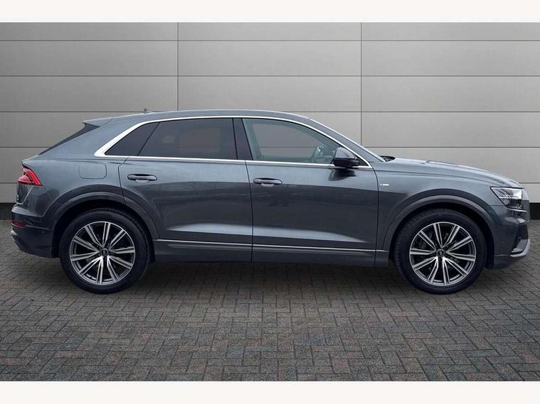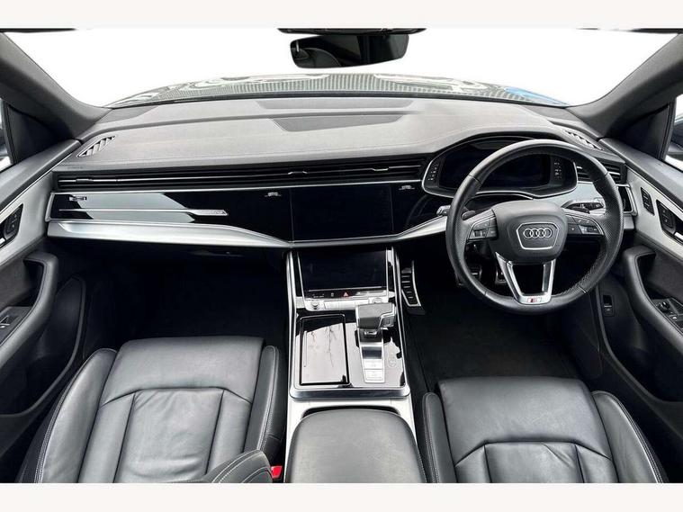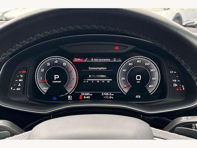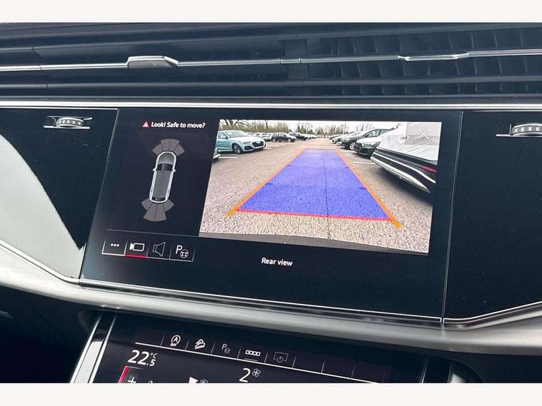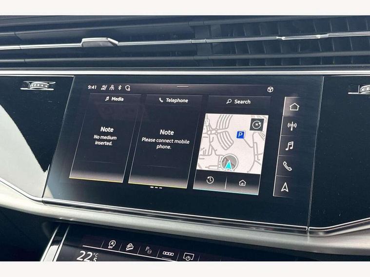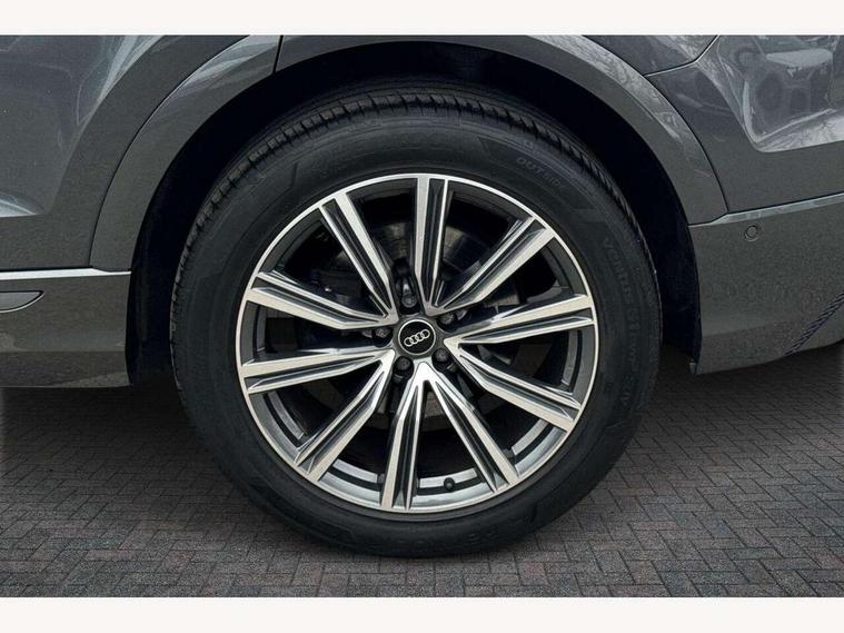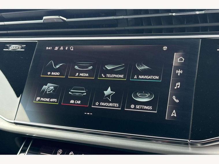 10.1" and 8.6" Dual colour touchscreens, Audi connect safety and service (e-call), Audi connect with Amazon Alexa Integration, Audi drive select, Audi parking system plus includes 360 degree display with front and rear sensors, Audi virtual cockpit - 12.3" high resolution LCD display with fully customisable instrument cluster, Automatic start/stop system, Electro-mechanical PAS, Low washer fluid indicator, MMI - Multi Media Interface control system, MMI navigation plus with MMI touch, Natural voice recognition, On board computer, Operating buttons in black, glass look with haptic feedback, Power operated tailgate, Rear view camera, Service interval indicator, Smartphone interface includes wireless Apple carplay/Android Auto, 48V Mild hybrid technology, 85 litre fuel tank, Adaptive sport air suspension, Quattro all wheel drive with self locking centre differential, Audi music interface with 2 USB ports with charge and data functions, Audi sound system with 6 channel amplifier, 180 watt amplifying capacity and 10 loudspeakers including subwoofer, Aux-in socket, DAB Digital radio, 3rd brake light, Acoustic windscreen, Aluminium window trim, Audi HD Matrix LED headlights with dynamic front and rear indicators, Auto dimming frameless rear view mirror, Body colour door mirrors, Coming/leaving home lighting function, Electric front+rear windows, Electrically folding auto dimming/adjustable/heated door mirrors with memory function, LED side indicators and kerb view function for passenger side, Headlight washers, Heat insulating glass in windshield, Illuminated door sill trims with S line logo, LED signature daytime running lights, Platinum grey front spoiler lip and diffuser insert with honeycomb grille in black, Privacy glass - dark tinted rear and rear side windows from B-pillar backwards, Rain and light sensors, Rear side wing doors, Rear wiper, S line badges on front wings, S Line body styling, S line bumpers in full body colour paint finish, S line roof spoiler, S Line side skirts, S line side ventilation grille, 2 zone automatic climate control, 3 bench rear seats in 2nd row, 4-way lumbar support for front seats, 40:20:40 split folding rear bench seat, Black cloth headlining, Comfort front centre armrest, Driver seat memory function, Electrically adjustable front seats, Front head restraints, Front/rear floor mats, Heated front seats, ISOFIX child seat mounting for front passenger seat and 2 outer rear seats with top tether child seat mounting for all 3 rear seats, LED interior ambient lighting, Luggage compartment sill protection in stainless steel, Rear centre armrest with 2 cupholders, Rear headrests, Single front passenger seat, Stainless steel pedals, Sunvisors with illuminated vanity mirrors, 3 point seatbelts on all seats, Audi pre sense front, Child locks on rear doors, Driver and front passenger, front side and curtain airbags, Electromechanical parking brake, Electronic Stability Control (ESC) including ABS, ASR and EDL, Front passenger airbag deactivation, Hill descent control, Hill hold assist, Predictive pedestrian protection, Seatbelt monitoring, Traction control, Tyre pressure loss indicator, Warning triangle and first aid kit, Anti theft alarm with tow away protection, Anti-theft wheel bolts and wheel loosening detection, Immobiliser, Keyless go with remote central locking, Dark matt brushed aluminium inlay, Tool kit, Tyre repair kit,