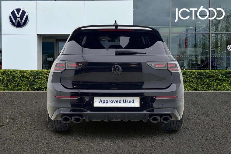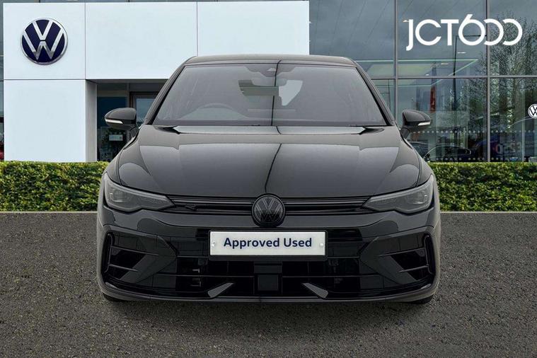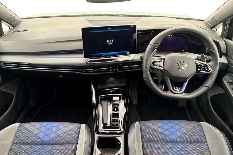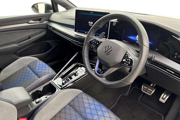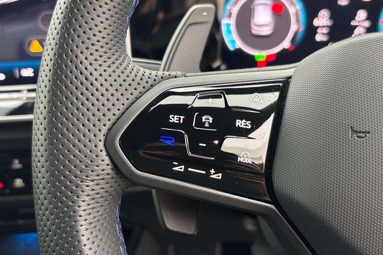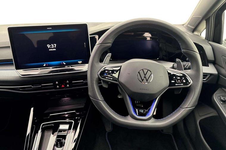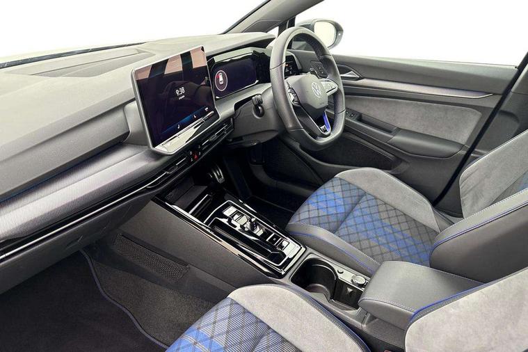 Activated carbon canister, Adaptive cruise control (ACC), Advanced driver attention and drowsiness monitor, Dynamic road sign display, E-Sim card for online connectivity, eCall emergency call system, Electronic maximum speed limit increased to 270 km/h, includes driving Modes 'drift' and 'special', larger roof spolier and GPS laptimer + G-Meter, Multi-color Digital cockpit pro, selection of different info profile possible, Multifunction front facing camera for distance control, Navigation system, Oncoming vehicle braking when turning including swerve support, Preparation for light assist system, Progressive steering, Side assist blind spot lane change system, rear traffic alert and exit warning system, Speed limiter, Speedo, rev counter, electronic odometer, trip, service interval display, exterior temperature and fuel gauge, Traffic jam assist, Voice enhancer and voice control, Warning signal and warning light for front and rear seatbelts not fastened, We connect plus preparation, We connect preparation, Wireless app connect, All wheel drive - 4Motion, Petrol Particulate Filter, Sports suspension, Start-stop system with battery regeneration (recuperation - energy recovery during braking), XDS electronic differential lock for improved traction and handling, 2 USB C ports in front, 2 USB charging sockets on the centre console in the rear charging capacity upto 45W, Comfort telephony + wireless charging, without wireless aerial connection, Digital radio reception (DAB), Diversity antenna for FM reception, Gaming platform via car app, Infotainment system with 12.9" display, Mobile phone interface with inductive charging feature, 3rd brake light, Auto dimming rear view mirror, Auto headlights, Automatic headlamp activation with Coming home and Leaving home feature, Black badge on B-pillar, Black mirror caps, Black strips on radiator grille and headlights, Body colour door handles, Darkened headlights, Darkened R Logos and VW logos in front, rear and on fender, Exhaust system with black tailpipe, Exterior ambient lighting with illuminated lighting animation and wake up/goodbye scenario, Exterior mirrors convex on the left and aspherical on the right, Front and rear electric windows, Front fog lamps and cornering light, Heat insulating windshield made of laminated glass, LED daytime running lights, LED matrix headlights with ambient light V2, advanced high beam, dynamic range contol with cornering, LED rear lamp with indicator, poor weather, R name plate, Rain sensor, Rear fog light on one side and reversing lights on both sides, Rear side wing doors, Rear tinted glass 65% light absorbing from B pillar backwards, Rear windscreen washer and wiper with interval delay, Remote electrically foldable door mirrors, puddle lights and reverse activated passenger's door mirror, Welcome light with surround lighting, 12V socket in front centre console, 12V socket in luggage compartment, 3 rear head restraints, 3 seat bench in 2nd row, 30 colour ambient lighting, illuminated center console storage compartment in front, Air care climatronic 3 Zone automatic climate control with rear air conditioning control panel, Aluminium gearshift handle, Brushed stainless steel pedals, Carpet mats, front and rear, Front centre armrest, Integrated front head restraints, ISOFIX anchors for child seats on outer rear bench seats and on front passanger seat compatible for i-Size, Luggage compartment lighting, Rear cupholder and loadthough, Single front passenger seat, Soul black instrument panel, Split folding backrest with centre armrest and unsplit rear seat bench, Storm grey roof lining, Sun visors with illuminated vanity mirrors, Driver assistance pack - Golf DSG Estate/Hatchback, R styling pack - Golf, Technology park and comfort pro package - Golf Hatchback, 3 point height adj front seatbelts + pretensioners, 3 rear three point seatbelts, ABS, Autonomous emergency braking front assist with pedestrian and cyclist monitoring, Child locks on rear doors, Disc brakes in rear incl. brake calipers in black with darkened R-logo, Driver and front passenger airbag with front passenger airbag deactivation, Electronic parking brake with auto hold, ESC (Electronic Stability Control), Extended pedestrian protection measures, Hill start assist, Two tone horn, Tyre pressure loss indicator, Volkswagen roadside assistance, Anti theft wheel bolts, Preparation for alcohol interlock, Wheel hub cover with darkened R-logo,