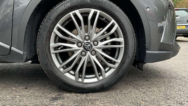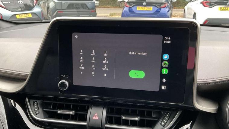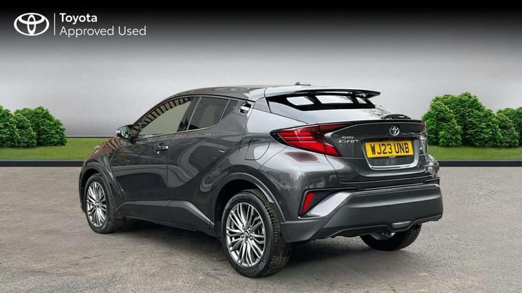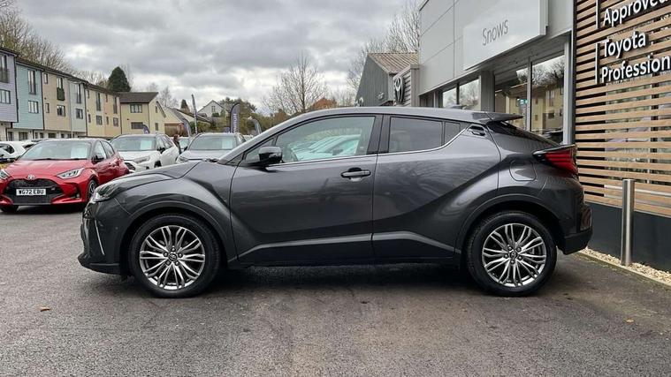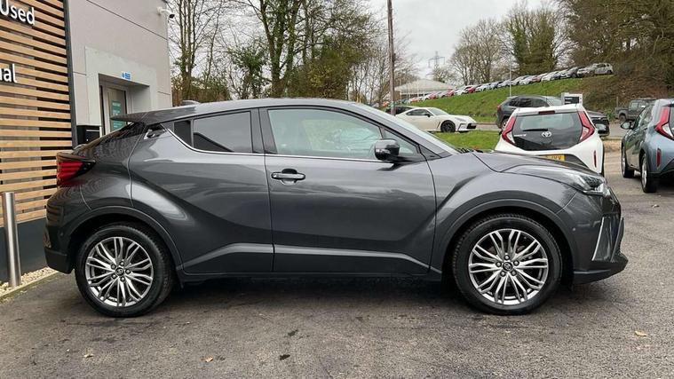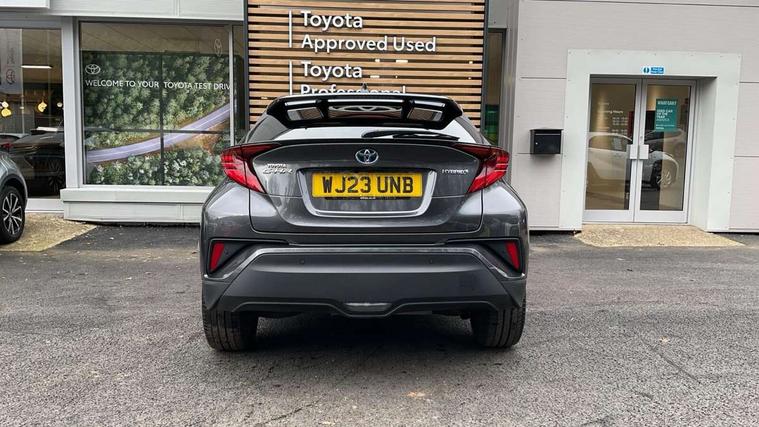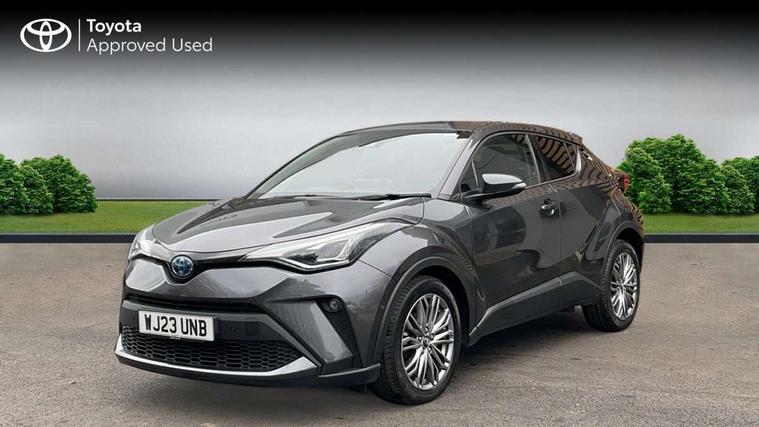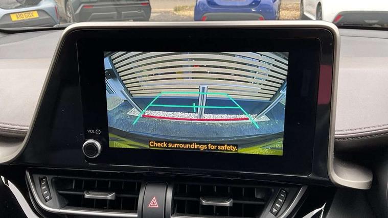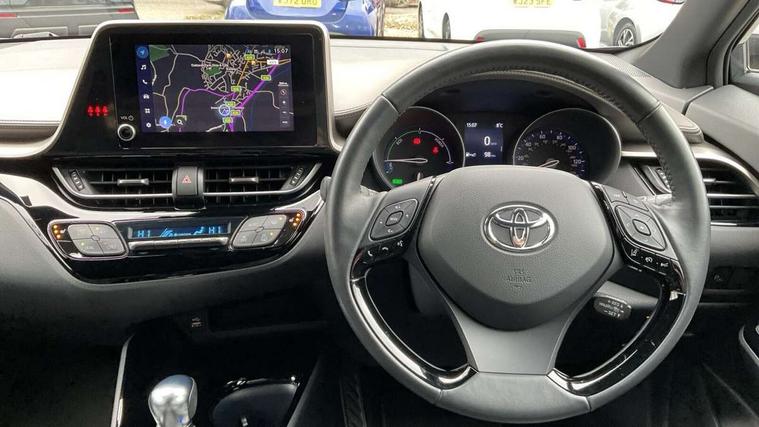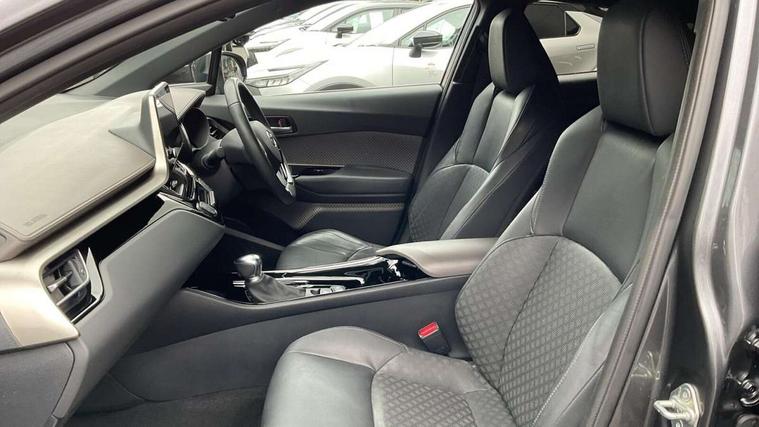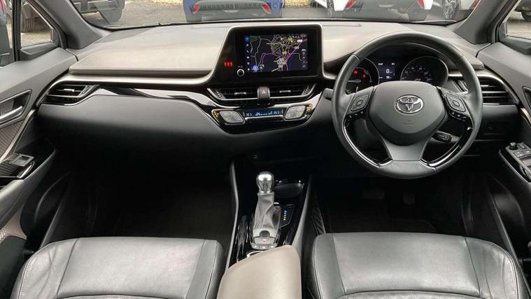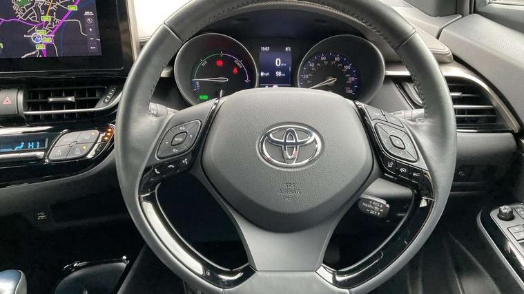 4.2" coloured TFT screen for multi-information display, Adaptive cruise control, Apple car play and Android auto, Bluetooth connectivity, E-call, Electric power steering, Hybrid system indicator, Lane departure alert with steering control, Lane trace assist, Push button tailgate release, Remote boot door release in cabin, Remote boot door release in key, Reversing camera, Road sign assist - RSA, Simple Intelligent parking assist, Smart voice assist, Touch 2 Go navigation system, Trip computer, Voice recognition, Wireless smartphone integration, Vehicle Stability Control (VSC), 6 speakers, AM/FM radio, DAB Radio (Digital Audio Broadcasting), Toyota touch 2 multimedia system with 8" display, USB connector, Wi-fi connectivity, Adaptive front light system, Adaptive LED Headlights, Anti-jam protection on power windows, Auto high beam, Auto up and down function on all power windows, Automatic headlight levelling, Automatic headlights, Automatic headlights cut-off, Black and body coloured rear bumper, Black lower front grille, Black upper front grille, Body colour door handles, Body colour door mirrors, Body colour front spoiler lip, Body coloured front bumper, Boot door release with push button, Electric heated door mirrors, Follow me home headlights, Front and rear power windows, Headlight cut off reminder, Honeycomb lower front grille, LED daytime running lights, LED fog lights, LED front light guide, LED High mounted stop light, LED rear brake lights, LED rear combination lights, Noise reduction layer on front windows and windscreen, Power adjustable door mirrors, Privacy glass, Rain sensor, Rear sequential indicators, Rear side wing doors, Rear spoiler, Rear tailgate, Rear window defogger, Rear window wiper, Shark fin antenna, UV-filter on driver and passenger windows, UV-filter on rear windows, Variable front intermittent wipers, 12v power outlet - front, 3 rear headrests, 3 seat bench in 2nd row, 3 spoke leather steering wheel, 60/40 split folding 2nd row rear seats, Adjustable rear headrests, Adjustable speed limiter switch on steering wheel, Assist grips front and centre pillar, Audio and telephone switches on steering wheel, Black front door assist grips, Blue ambient lighting on front cup holders, Blue ambient lighting on front doors, Boot light, Chrome interior door handles, Driver and front passenger personal light, Driver and front passenger Whiplash Injury Lessening seats, Driver and passenger seatback pockets, Dual zone automatic air conditioning, Floor mats, Front cupholders, Front head restraints, Front sports seats, Glovebox with internal light, Hard tonneau cover, Heated driver and front passenger seats, Heated steering wheel, Hooks for luggage holding net, Humidifying Nanoe air purifier, Illuminated entry system, Isofix attachments on outer rear seats, Leather gearshift, Light on driver sun visor, Light on passenger sun visor, Manual telescopic steering wheel, Manual tilt steering wheel, Microphone on front personal light, Mirror on driver sun visor, Mirror on passenger sun visor, Multimedia switches on steering wheel, Pollen filter, Power adjustable lumbar support on driver seat, Power tilting cushion on driver seat, Shopping bag hooks, Single front passenger seat, Slow opening on lower glovebox, Voice recognition switch on steering wheel, Leather pack - C-HR, Tech with parking sensor pack - C-HR, 16 Disk front wheel brake, 3x3 point rear seatbelts, ABS+EBD+Brake assist, Electronic parking brake, Front and rear seatbelt reminder, Front passenger airbag on/off switch, Hill start assist control (HAC), Pre collision system with pedestrian detection, Pre-tensioners and force limiters, Rear door child safety locks, SRS Airbags - Driver + Front passenger, front side, front and rear curtain and driver's knee airbags, Toyota safety sense, Tyre pressure monitoring system, Tyre pressure warning system, Acoustic vehicle alert system (AVAS), Glass-breaking alarm sensors, Immobiliser, Intrusion alarm, Intrusion sensor, Motion sensor alarm, Power door locks, Power passenger window lock, Remote central locking, Black lower dashboard, Dark brown upper dashboard, Piano black console, Silver deco line on upper dashboard, Tyre repair kit,