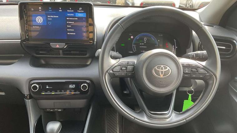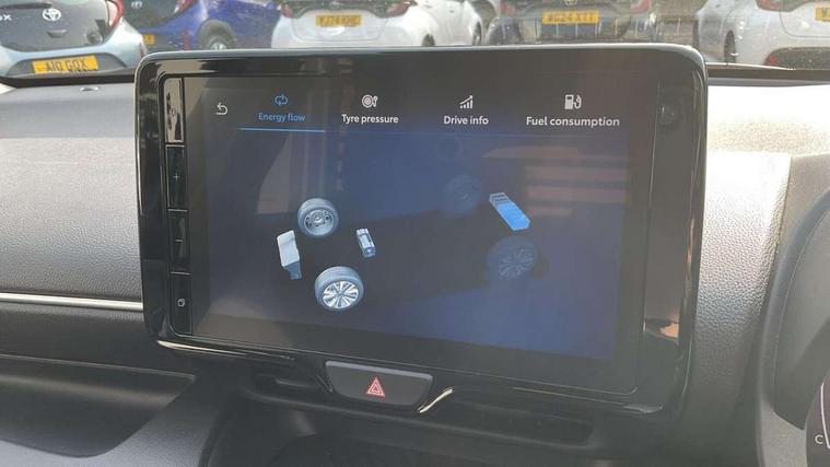 7" Digital Combimeter, Adaptive cruise control, Adjustable speed limit with speed warning, Bluetooth connectivity, Colour binocular inspired displays with digital speedometer, E-call, Electric power steering, Hybrid energy display, Multi information display switches on steering wheel, Reversing camera, Smartphone integration with Apple CarPlay and Android auto, Tailgate, Voice recognition, Vehicle Stability Control (VSC), 4 speakers, 9" Multimedia touch display, Toyota Touch 3 system with DAB radio, USB connection, Acoustic windscreen glass, Auto windscreen wipers, Automatic headlights, Body coloured door mirrors, Electric adjustable heated door mirrors, Follow me home headlights, Front auto power windows with anti jam protection, Full LED rear lights, LED daytime running lights, LED front fog lights, LED front light guide, LED Headlights, LED High mounted stop lamp, LED Indicators, LED rear light guide, Manual headlight levelling, Painted chequered front grille, Rain sensor, Rear auto power windows with anti jam protection, Rear privacy glass, Rear side wing doors, Rear spoiler, Rear wiper, Shark fin antenna, Turning signal integrated indicators in door mirrors, Variable front intermittent wipers, 3 adjustable rear headrests, 3 seat bench in 2nd row, 3 spoke leather steering wheel, 60/40 split folding rear seat, Active headrests, Adjustable boot height, Auto air conditioning, Coat hooks in rear grab handles, Cup holders (2 front & door), Data Communication Module (DCM) connected services, Fabric upholstery, Front armrest, Glovebox, Grey roof lining, Height adjustable driver's seat, Isofix seat fixing, Leather gearshift, Pollen filter, Shopping bag hooks, Single front passenger seat, Tilt/telescopic steering column, 3 point seatbelts on all rear seats, ABS+EBD+Brake assist, Electronic parking brake, Emergency brake light system (EBS), Front passenger airbag on/off switch, Front seatbelt reminder, Hill start assist control (HAC), Rear child proof door locks, Rear seat belt reminder, Supplemental Restraint System (SRS) 8 airbags: Driver & passenger's airbags, dual side curtain airbags, side impact airbags, front centre airbag, Toyota Safety Sense 3 with over the air updates, Tyre pressure warning system, 2x Master key, Alarm/immobiliser, Remote powered central double locking doors, Soft touch instrument panel, Space saver spare wheel,