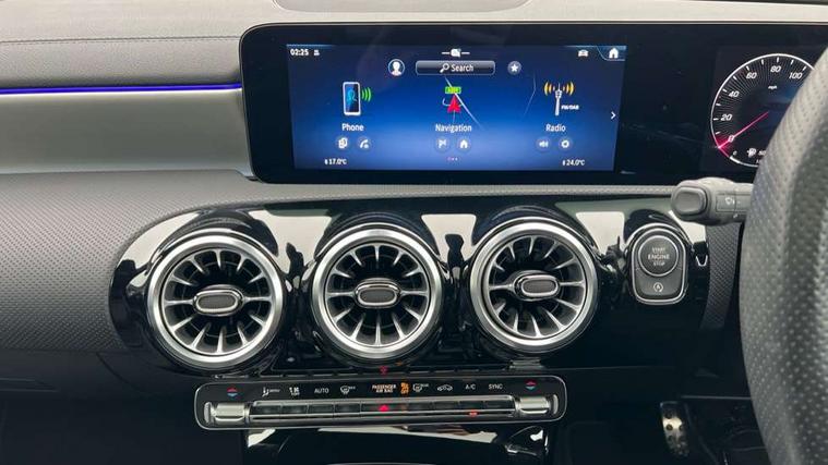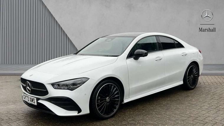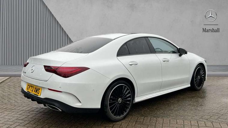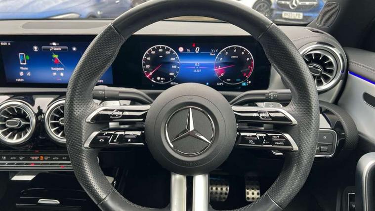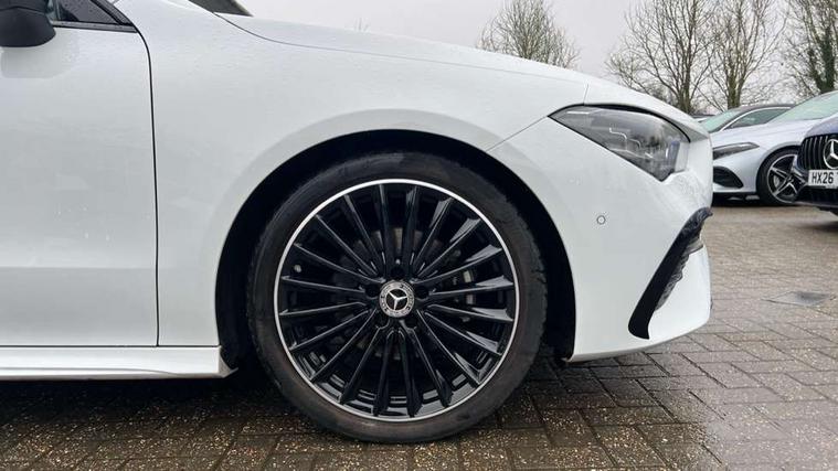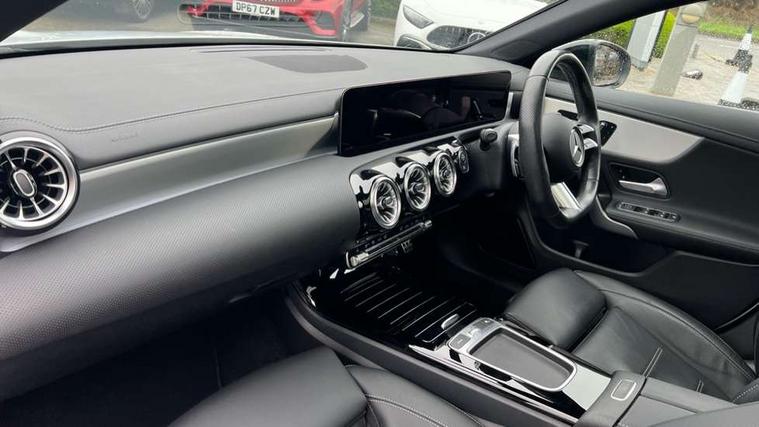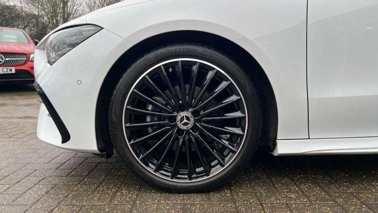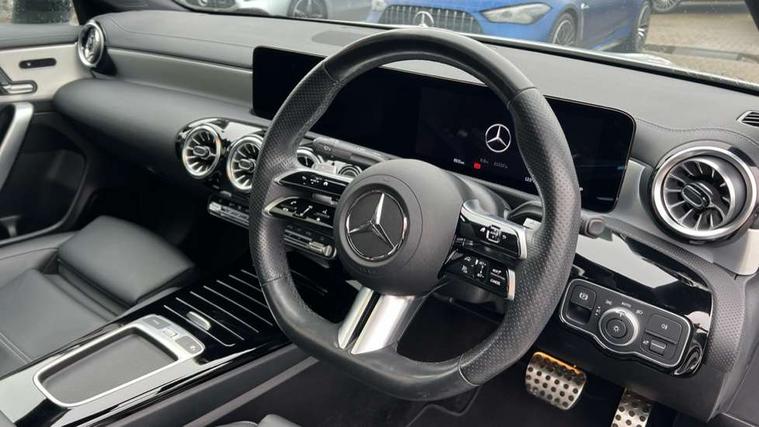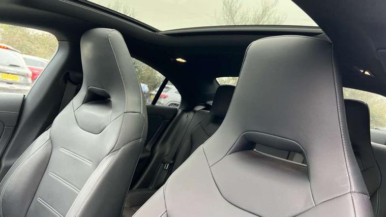 10.25 inch Instrument display with digital cockpit, 10.25 inch touchscreen central media display, Active lane keeping assist, Attention assist - Monitors steering behaviour and long journey fatigue, Bluetooth connection, Car wash mode, Cruise control with limiter, Direct steer system, DYNAMIC SELECT with a choice of driving modes (ECO, Comfort, Sport and Individual), ECO start/stop function, Fluid level warning indicator for fuel, oil, coolant and washer fluid, Hard-disk navigation, Hey Mercedes Voice activation, Lamp failure indicator, MBUX augmented reality for navigation, Mercedes me connect including emergency call system, accident recovery, breakdown and maintenance management, Mercedes me remote services, Outside temperature gauge, Owners manual in English, Pre-installation of private car share, Radio aerial integrated into front and rear windshields, Service indicator (ASSYST), Smartphone integration with Apple CarPlay and Android auto, Traffic sign assist, Trip computer in multifunction display with current consumption indicator, Wireless charging in the front centre console, Comfort suspension with ride height lowering, Rear axle multi-link, DAB digital radio tuner, MBUX multimedia system, Mercedes Benz advanced sound system (225 W) with 10 speakers, 1 central speaker, speakers on doors, a tweeter on door, one sub woofer + boost amplifier, Pre installation for Mercedes Benz Link, Adaptive brake lights, AMG body styling with AMG front apron and rear apron and visible exhaust tailpipe in chrome trim elements, Body colour door handles, Electric panoramic sunroof with automatic tilt and convenience closing fuinctions, rain sensor auto closing and electronic roller sunblind, Electric windows, Electrically adjustable and heated door mirrors with integrated LED indicators, Exhaust system with 2 Visible tailpipe trim elements and rear apron with trim in chrome, Hand free access, Headlamp assist automatic headlamp activation, Heated glass rear windscreen + timer control, High gloss beltline strips, High level LED third brake light, Integrated LED daytime running lights, Interior mirror with black reading lamps and frameless, LED tail lamp, Multibeam LED headlamps with adaptive highbeam assist plus, Privacy glass with dark tinting on rear side windows and rear window, Radiator grille with Mercedes-Benz pattern in chrome and central Mercedes star, single louvre in high-gloss black with chrome inserts, Rain sensing windscreen wipers with two sensitivity settings, Rear boot, Rear fog lamp, Rear side wing doors, Variable front intermittent wipers, 3 seat bench in 2nd row, 3 twin spoke flattened multifunction steering wheel in nappa leather - horizontal twin spoke in high gloss black, vertical twin spoke in silver chrome, 40:20:40 split folding rear seat backrests, Air conditioning - Two zone thermotronic luxury automatic climate control with display, Air vents with surround in silver chrome, Automatic child seat recognition sensor, Black roof lining, Brushed stainless steel sports pedals with rubber studs, Electrically adjustable front memory seats including 4 way lumbar support, Floor mats with stitched AMG lettering, Fluorescent jacket, Front centre armrest with stowage, Galvanished gear shift paddles in silver chrome, Heated front seats, Illuminated front door sills with Mercedes Benz lettering and changeable cover, Interior lighting - 64 colour Ambient lighting, Luggage net on driver/front passenger seat backrest, Manually height and reach adjustable steering column, Rear armrest with two integral cup holders for drinks, Rear head restraints, Single front passenger seat, Sport seats with fixed head restraints, Stowage compartment in centre console with retractable cover, Sunvisors with illuminated vanity mirrors, Twin front cupholders, Two outer rear seat isofix and top tether child seat fixing points, Drive parking assist pack with 360 degree camera - CLA, Keyless go comfort pack - CLA, Light and sight pack - CLA, Mirror pack - CLA, Night package - CLA, Seat comfort pack - CLA, USB package plus - CLA, Active bonnet pedestrain safety measure which detects an impact and raises bonnet by 65mm, Adaptive brake assist with hold function and hill start assist, Anti lock braking system (ABS) with brake assist, Black seat belts, Bonnet with power domes, Brake calipers with Mercedes-Benz lettering, Brake pad wear warning indicator, Childproof locks manually operated for rear doors and electrically operated for rear power windows, Crash responsive emergency lighting, Driver and front passenger head and sidebags, Driver and front passenger windowbags, Drivers knee airbag, Dual stage driver and front passenger airbags, Electric parking brake, Electronic stability programme with acceleration skid control, ESP curve dynamic assist, Exit warning, Front and rear seatbelt reminder, Front passenger seat occupancy sensor, Perforated front brake discs, Sports braking system, Three point rear seat belts, Tyre pressure monitoring system, Warning triangle and first aid kit, Alarm system with immobiliser and interior protection -Thatcham category 1, Guard 360 deg vehicle protection - tow away protection with visual, acoustic warning, interior monitoring, preinstallation for parking damage, Remote central locking and crash sensor with emergency opening function, Light aluminium with longitudinal grain interior trim, 19" AMG multi-spoke black painted light alloy wheels with high sheen rim finish, Summer tyres, Tirefit tyre sealant kit,