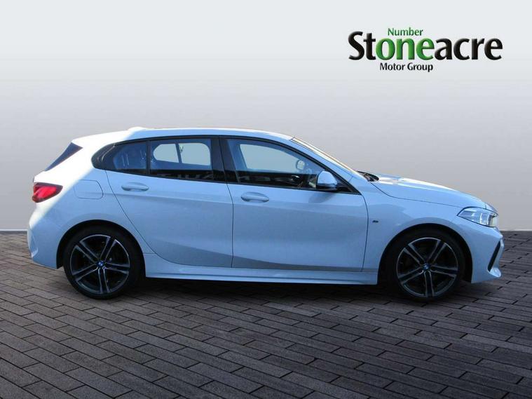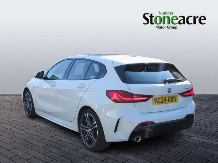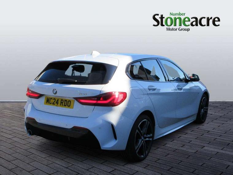 Active guard plus, Attentiveness assist, BMW ConnectedDrive online services, BMW Teleservices, Check Control warning system for monitoring of lights and door/luggage compartment open warning, Cruise control with speed limiter, Eco pro mode, Front axle single joint with specific axle kinematics to minimise drive influences on steering + provide increased rigidity agile driving behaviour, Integrated owners handbook, Lane departure warning system, Oil sensor for level and grade, On board computer, Optimum shift indicator, Personal Profile, Pull away assistant, Rigidly mounted rear subframe - Multi link construction with separate spring / damper configuration and excellent driving characteristics, Speed limit Info including no-overtaking indicator, Aluminium lightweight construction, Anti roll bar front and rear, Balancer shaft, Double VANOS twin scroll turbocharging system, Drive Performance Control, Electronic differential lock, High precision injection, M sport suspension, Petrol Particulate Filter, Twin tube gas filled shock absorbers with degressive characteristic curve, VALVETRONIC engine management, DAB Digital radio, Auto dimming rear view mirror, Automatic headlight beam throw control, Automatic windscreen wipers and automatic headlight, Body colour door handles, Body colour mirror caps, Body colour roof trims, Chrome 'M' logo side designation, Chrome exhaust twin tailpipes round 90mm in left, Chrome kidney grille frame with Satin Aluminium struts, Direction indicator side lights in exterior mirrors, Electrically adjustable exterior mirror with mirror adjustment switch on drivers armrest and aspheric on driver side, convex on passenger side, Fading support, Folding side mirrors with auto dimming/folding wing mirrors with auto dimming, Follow me home headlights, Front and rear bumper system with replaceable deformation elements, Front and rear electric windows with open and close fingertip control, anti trap facility and comfort closing, Front door sill finishers in black plastic with M designation in metallic look, Green tinted heat protection glazing, High gloss shadowline window frame, Recess cover mirror frames and B/C pillar embelisher trim, High level third brake light, Integrated front windscreen with washer jets, LED daytime running lights, LED eyebrow turn indicators, LED front fog lights, Lightweight engineering, Matt black air guide grilles, Matt black wheel arch trim, Model designation on electric bootlid, Nearside reverse light in rear light cluster, Preparation for high beam assistant, Rear fog lights, Rear side wing doors, Rear window wiper, Shark fin antenna, Trailer stabilisation logic, Visible VIN plate, Welcome lighting, 12V power socket in front centre console with blanking plug, 3 rear seat head restraints, 3 seat bench in 2nd row, 3 spoke sports leather steering wheel in black leather with black stitching and decorative finisher in pearl chrome, specific M badge + leather knob, Anthracite headlining, Black boot net with lashing eyes, Cargo function on 2nd seat row, Child seat ISOFIX attachment for two outer rear seats and front passenger seat with anchorage points, Conditioned based service, Driver and front passenger backrest net on rear, Driver and front passenger seat heating, Driver side folding compartment in instrument panel, Folding rear clothes hook, Four grab handles integrated in roof lining, Front and rear door pockets with bottle holders, Front and rear side armrest integrated into door trim, Front armrest, Front sports seats, Gearshift lever with M designation, Glove compartment, Height adjustable front head restraints, Luggage compartment for bag hooks on left and right, foldable luggage compartment liner and four lashing eyelets, Manual adjust steering wheel, Multi-function controls for steering wheel, Single front passenger seat, Storage compartment in centre console, Storage compartment in luggage compartment, Stowage of the parcel shelf in luggage compartment trim, Sun visors with vanity mirrors and insert tab, Two front centre console cupholders, Two zone automatic air conditioning, Type C two USB ports in rear centre console, Velour floor mats, Additional interior lighting pack - 1 Series, BMW live cockpit professional pack- 1 Series, Connected pack professional - 1 Series, Interior lights pack - 1 Series, M Sport exterior styling aerodynamics pack - 1 Series, 2 tone horn, 3 point seatbelts on all seats, front pyrotechnic belt tensioners, stopper and belt force limiters, rear coded belt buckles, Airbags - Front driver/passenger, front and rear curtain head protection, front side, manual deactivation of front passenger airbag, Anti lock braking system (ABS) with brake assist, BMW emergency call, Brake drying, Braking readiness, Child proof locking system in rear door, City braking function, Comfort modes, Cornering brake control, Crash sensor activating of airbags, Unlocking doors, hazard warning lights, interior light, safety battery terminal, Driver and front passenger seat belt security check, Dynamic stability control + (DSC+), Dynamic Traction Control - DTC, Electrically operated hand brake, Front and rear disc brakes, Seatbelt warning, Side impact protection, Tyre pressure monitoring system, Warning triangle and first aid kit, Central locking switch for all doors, fuel filler cap and luggage compartment, Deadlocking function system to all doors, Drive away locking system on all doors and luggage compartment with de-activated in iDrive settings, Locking wheel bolts, Remote control with integrated key with High-gloss Black inlay and M designation and 1 button for open/ close lock, window, open luggage compartment, Start/stop button illuminated in centre console with keyless engine start and auto start stop deactivation button, Thatcham Cat.1 alarm and immobiliser, Wheel slip limitation close to the actuator (ARB), Contrast stitching on instrument panel, 18" Burnished M double spoke bi-colour alloy wheels finished in orbit grey - style 819M