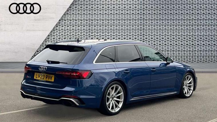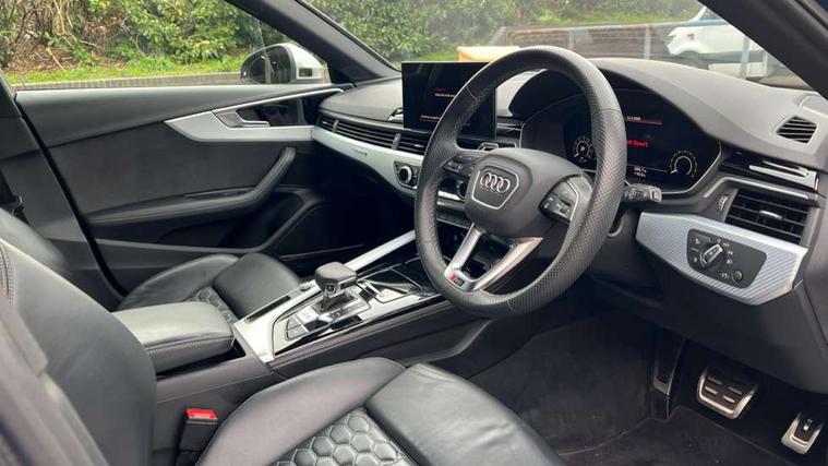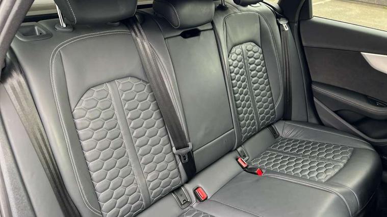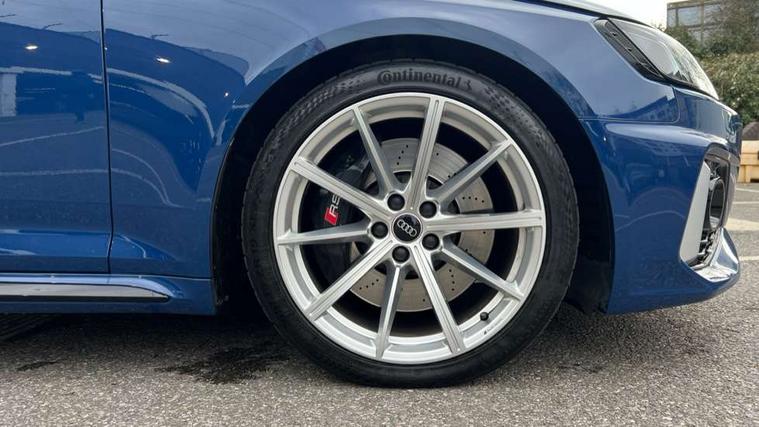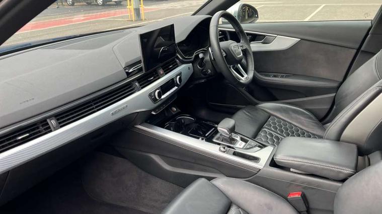 7" Colour driver information system, Amazon alexa Integration, Audi connect safety and service (e-call), Audi drive select, Audi side assist, Audi smartphone interface, Audi virtual cockpit with RS specific display, Automatic start-stop system with coasting functionality and efficiency programme, Bluetooth interface, Electromechanical power steering, Email, calendar and text messages displayed via MMI, MMI Navigation plus with MMI touch includes 10.1" high resolution colour MMI display, 3D map, Power opening/closing tailgate, Service interval indicator, Voice control system, 58 Litre fuel tank, Quattro sports differential, 2 USB charging ports, Audi sound system, DAB digital radio module, 3rd brake light, Acoustic windscreen, Audi Beam uses LEDs to project the RS logo onto ground as you exit your RS4, Audi matrix LED headlights with LED rear lights + dynamic front and rear indicators, Auto dimming rear view mirror, Automatic headlights + automatic windscreen wipers, Blue tinted glass, Body colour door handles, Electric front windows, Electric rear windows, Electrically folding auto dimming/adjustable/heated door mirrors with memory function, LED side indicators and kerb view function for passenger side, Flared front and rear wheel arches, Front bumper with enlarged air inlets, Front spoiler in matt aluminium look finish, Headlight range control, High beam assistant, High gloss black triangular aperture at rear door, Honeycomb design grille with quattro logo, Lateral air inlets next to front headlights, LED daytime running lights, LED indicators in door mirrors, Matt aluminium door mirrors, Privacy glass with rear acoustic glazing, Rain and light sensors, Rear side wing doors, Rear wiper, Roof rails in aluminium matt look finish, Roof spoiler, RS 4 badges on grille and rear, RS4 dual branch chrome tailpipes with left and right oval pipes, Side sill extensions in body colour with high gloss black inserts, 3 seat bench in 2nd row, 3 spoke multifunction plus leather steering wheel with heating and RS badging, 40/20/40 split folding rear seats with rear centre armrest, Black cloth headlining, Deluxe 3 zone electronic climate control, Electric load area cover, Electrically adjustable front seats, Fine nappa leather with contrast honey comb stitching + super sports seats with pneumatic massage function, Front centre armrest, Front headrests, Front/rear floor mats, Heated front seats, Height and reach adjustable steering wheel with full size airbag, Illuminated door sill trims with RS4 logo, ISOFIX child seat mounting and top tether, Leather door armrests and knee pad, Luggage compartment carpet, Perforated leather gear lever knob with contrast stitching, Rear headrests, Retractable load area cover, Single front passenger seat, Stainless steel pedals, Sunvisors with vanity mirrors, LED Interior light pack - RS4, Non Smokers pack, 3 point seatbelts on all rear seats, Adaptive driver and front passenger airbags, Electromechanical parking brake, Electronic stabilisation control including ABS, ASR and EDL, Enhanced braking system, Front head airbags, Front seatbelt pretensioners + load limiters, Front side airbags, Hill hold assist, Manual child lock in rear doors, Multi-Collision braking, Pop-up bonnet for pedestrian protection, Pre sense city, Rear side airbags, Seatbelt monitoring, Traction control, Tyre pressure warning, Variable restraint system, Warning triangle and first aid kit, Anti theft alarm, Anti-theft wheel bolts, Immobiliser, Keyless Go, Remote central locking, Remote control key with RS emblem, Aluminium race inlays, Tool kit, Tyre repair kit,