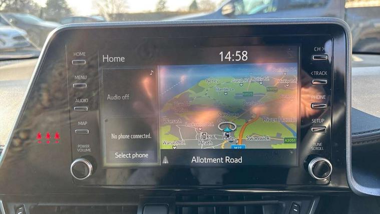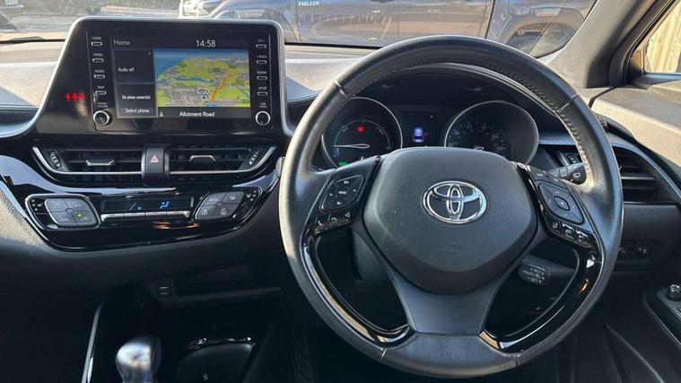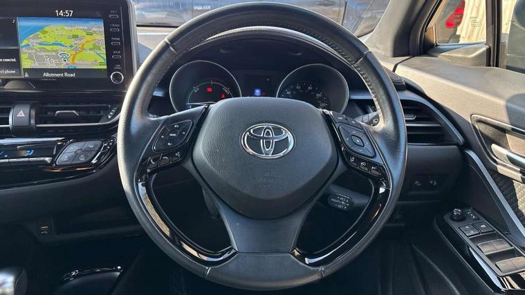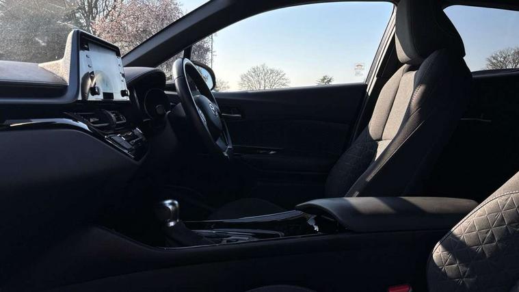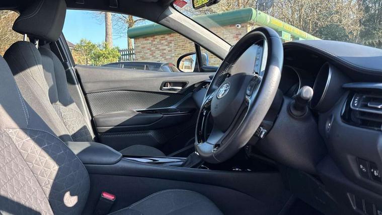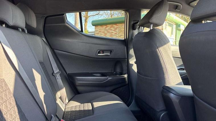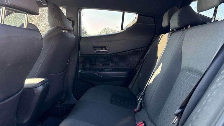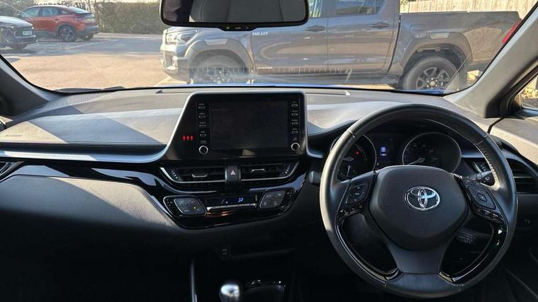 4.2" coloured TFT screen for multi-information display, Adaptive cruise control, Bluetooth connectivity, Electric power steering, Hybrid system indicator, Lane departure alert with steering control, Remote boot door release in cabin, Remote boot door release in key, Reversing camera, Road sign assist - RSA, Simple Intelligent parking assist, Touch 2 Go navigation system, Trip computer, Voice recognition, Vehicle Stability Control (VSC), 6 speakers, Aux connectors + 12V front outlet, DAB Radio (Digital Audio Broadcasting), Toyota touch 2 multimedia system with 8" display, USB connector integrated with radio and CD player, Wi-fi connectivity, Anti-jam protection on power windows, Auto high beam, Auto up and down function on all power windows, Automatic headlights, Automatic headlights cut-off, Automatic wipers with heated folding mirrors, Black and body coloured rear bumper, Black front bumper, Black upper front grille, Body colour door handles, Body colour door mirrors, Boot door release with push button, Electric heated door mirrors, Follow me home headlights, Front and rear power windows, Front fog lights, Front spoiler, Hard tonneau cover, Honeycomb lower front grille, LED daytime running lights, LED front light guide, LED High mounted stop light, LED rear brake lights, LED rear combination lights, Manual headlight levelling, Noise reduction layer on front windows and windscreen, Power adjustable door mirrors, Privacy glass, Rear spoiler, Rear tailgate, Rear window defogger, Rear window wiper, Reflective LED headlights, Shark fin antenna, UV-filter on driver and passenger windows, UV-filter on rear windows, 12v power outlet - front, 3 rear headrests, 3 spoke leather steering wheel, 60/40 split folding rear seat, Adjustable rear headrests, Adjustable speed limiter switch on steering wheel, Assist grips front and centre pillar, Audio and telephone switches on steering wheel, Black front door assist grips, Blue ambient lighting on front cup holders, Blue ambient lighting on front doors, Boot light, Chrome interior door handles, Cloth upholstery, Driver and front passenger personal light, Driver and front passenger Whiplash Injury Lessening seats, Driver and passenger seatback pockets, Dual zone automatic air conditioning, Floor mats, Front cupholders, Front head restraints, Front sports seats, Glovebox with internal light, Heated driver and front passenger seats, Hooks for luggage holding net, Humidifying Nanoe air purifier, Illuminated entry system, Isofix attachments on rear seats, Leather gearshift, Light on driver sun visor, Light on passenger sun visor, Manual telescopic steering wheel, Manual tilt steering wheel, Manually adjustable lumbar support on driver seat, Manually height adjustable driver seat, Manually height adjustable front passenger seat, Manually reclining driver seat, Manually reclining front passenger seat, Manually sliding driver seat, Manually sliding front passenger seat, Microphone on front personal light, Mirror on driver sun visor, Mirror on passenger sun visor, Multimedia switches on steering wheel, Pollen filter, Shopping bag hooks, Slow opening on lower glovebox, Voice recognition switch on steering wheel, Parking sensor pack - C-HR, 16 Disk front wheel brake, 3x3 point rear seatbelts, ABS+EBD+Brake assist, Electronic parking brake, ESP + traction control, Front and rear seatbelt reminder, Front passenger airbag on/off switch, Hill start assist control (HAC), Pre collision system with pedestrian detection, Pre-tensioners and force limiters, Rear door child safety locks, SRS Airbags - Driver + Front passenger, front side, front and rear curtain and driver's knee airbags, Toyota safety sense, Tyre pressure monitoring system, Glass-breaking alarm sensors, Immobiliser, Intrusion alarm, Intrusion sensor, Motion sensor alarm, Power door locks, Power passenger window lock, Remote central locking, Remote door lock, Black lower dashboard, Black lower driver dashboard, Black upper dashboard, Piano black console, Satin grey deco line on upper dashboard, Tyre repair kit,