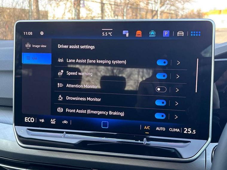 Activated carbon canister, Adaptive cruise control (ACC), Advanced driver attention and drowsiness monitor, Dynamic road sign display, E-Sim card for online connectivity, eCall emergency call system, Multi-color Digital cockpit pro, selection of different info profile possible, Multifunction front facing camera for distance control, Navigation system, Oncoming vehicle braking when turning including swerve support, Speed limiter, Speedo, rev counter, electronic odometer, trip, service interval display, exterior temperature and fuel gauge, Traffic jam assist, Voice enhancer and voice control, Warning signal and warning light for front and rear seatbelts not fastened, We connect plus preparation, We connect preparation, Wireless app connect, Charging cable Mode 2 Type 2 (10A), Charging cable mode 3, type 2 32 A, Electric motor (hybrid electric vehicle) total system output 200kw, unit OEK A, Hybrid propulsion system, Petrol Particulate Filter, Start-stop system with battery regeneration (recuperation - energy recovery during braking), XDS electronic differential lock for improved traction and handling, 2 USB C ports in front, 2 USB charging sockets on the centre console in the rear charging capacity upto 45W, 6 Speakers - 4 in front and 2 in rear with central speaker, Digital radio reception (DAB), Diversity antenna for FM reception, Gaming platform via car app, Infotainment system with 12.9" display, Mobile phone interface with inductive charging feature, 3rd brake light, Automatic headlamp activation with Coming home and Leaving home feature, Body colour door handles, Body colour door mirrors, Exterior mirrors convex on the left and aspherical on the right, Front and rear electric windows, Heat insulating windshield made of laminated glass, LED separate daytime running light, Rear exhaust tailpipe, Rear fog light on one side and reversing lights on both sides, Rear side wing doors, Rear tinted glass 65% light absorbing from B pillar backwards, Rear windscreen washer and wiper with interval delay, Remote electrically foldable door mirrors, puddle lights and reverse activated passenger's door mirror, Standard bumpers, Welcome light with surround lighting, 12V socket in front centre console, 12V socket in luggage compartment, 3 rear head restraints, 3 seat bench in 2nd row, Air care climatronic 3 Zone automatic climate control with rear air conditioning control panel, Chrome plated radiator grille inserts, air vent surrounds and light switch surrounds, Front + rear black carpet mats, Front centre armrest, Front head restraints, Front seat lumbar support adjuster, ISOFIX anchors for child seats on outer rear bench seats and on front passanger seat compatible for i-Size, Luggage compartment lighting, Manual height adjustable front passenger seat, Manually height adjustable driver seat, Plastic gear knob, Rear cupholder and loadthough, Single front passenger seat, Soul black instrument panel, Split folding backrest with centre armrest and unsplit rear seat bench, Standard pedal cluster, Storm grey roof lining, Sun visors with illuminated vanity mirrors, Technology park and comfort pro package - Golf Hatchback, 3 point height adj front seatbelts + pretensioners, 3 rear three point seatbelts, ABS, Autonomous emergency braking front assist with pedestrian and cyclist monitoring, Child locks on rear doors, Driver and front passenger airbag with front passenger airbag deactivation, Electronic parking brake with auto hold, ESC (Electronic Stability Control), Extended pedestrian protection measures, Hill start assist, Rear disc brakes, Two tone horn, Tyre pressure loss indicator, Volkswagen roadside assistance, Anti theft wheel bolts, Preparation for alcohol interlock, Nature cross brushed decorative inserts for dashboard and front door panels, Tool kit for tyre mobility set, Tyre mobility kit Includes 12V compressor and tyre sealant,