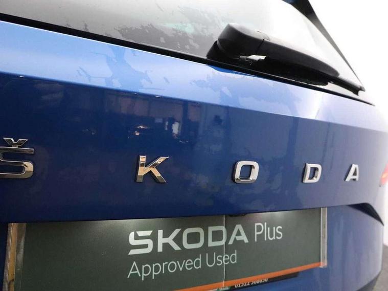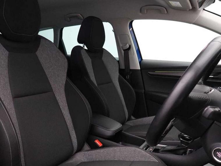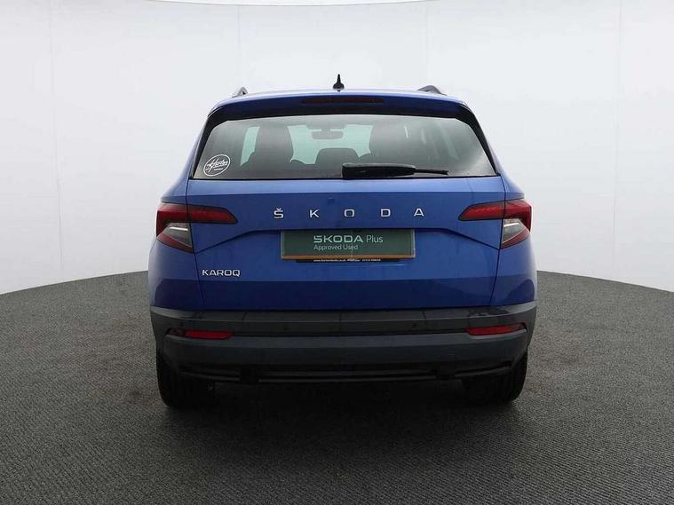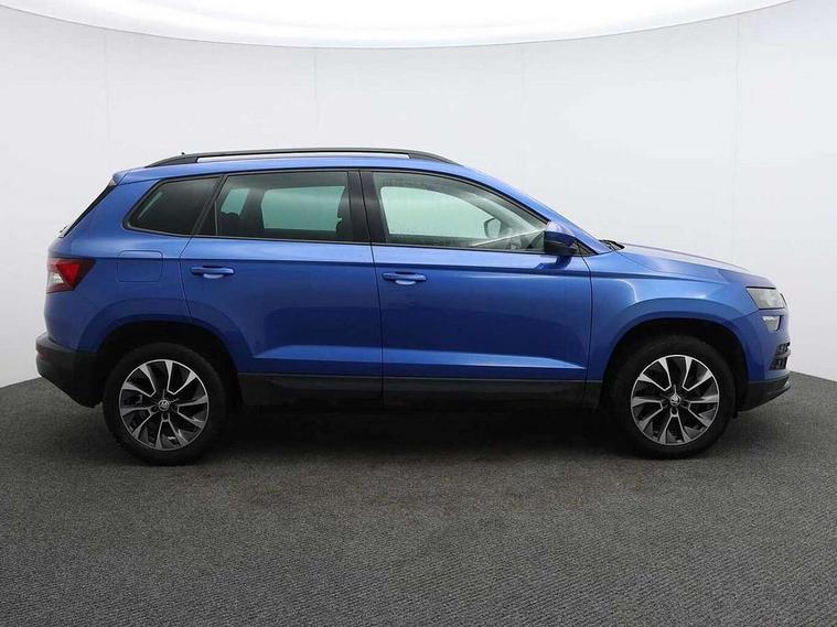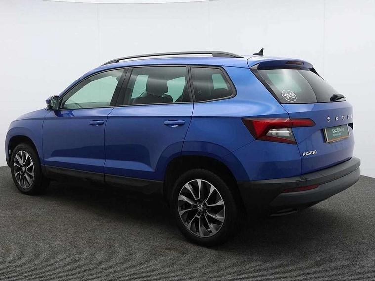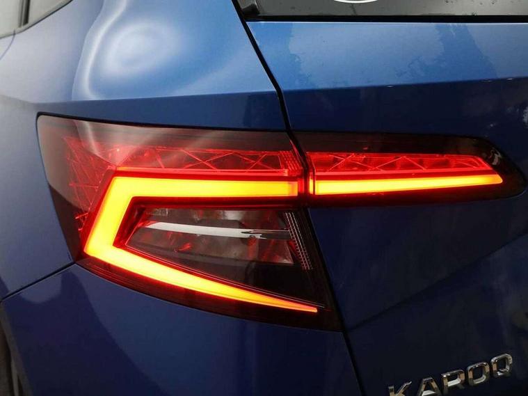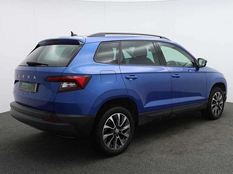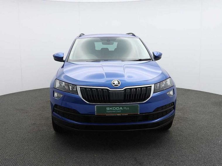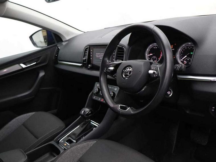 Amundsen satellite navigation with 8" touchscreen display with maps Europe, WLAN and web radio, Care connect, Driver alert system, Driver fatigue sensor, Driver profile selection, Electro-mechanical PAS, Multifunction colour trip computer, Outside temperature gauge, Rear view camera, Service interval indicator, SmartLink + wireless for Apple and wired for Android, Start/stop system with regenerative braking, USB C Port x 2 in front centre console, DAB radio with Bluetooth, SD card slot, USB connection, Acoustic glass, Aero front windscreen wipers with intermittent function, Automatic headlight control system, Black electric window control buttons, Body colour door mirrors and handles, Body coloured bumpers, Doors steps in front with Karoq badging, Electric front and rear windows with child proof lock, Electrically adjustable heated folding and auto dimming door mirrors, Heated rear windscreen, LED rear lights with high functionality, Light assistant (coming/leaving home/tunnel light), Privacy glass, Safety reflectors on front doors, Third brake light, 1.5 litre bottle holders in driver and front passenger door panels, 12V socket in boot, 12v socket in front centre armrest with storage compartment and rear air vents, 2 Folding hooks and nets in boot, 2 Front readings lights for driver and passenger, 3 rear height adjustable headrests, 4 foldable roof handles with rear coat hooks, 4 lashing points on luggage floor, Backrest release, Cargo elements in boot, Chrome inner door handles, Door sill scuff plates, Driver and passenger seats height adjust, Fabric upholstery, Folding tables on the front seat backrests, Front head restraints, Front seat and rear pockets, Height adjustable front three point seats belts with tensioners, Height/reach adjust steering wheel, Ice scraper, Illuminated and cooled glovebox, Illuminated luggage compartment, Isofix child seat preparation outer rear, Manual lumbar support for front seats, Net programme in boot, Pen holder, Pollen filter, Rear boot cover, Rear reading lights, Rear seats fixed folding and divided 60:40, Safety vest holder, Storage box in upper central dashboard closed, Sunvisors with illuminated vanity mirrors, Textile floor mats, Umbrella under passenger seat, LED Interior lighting pack with Skoda welcome logo - Karoq, Airbags - Front side, head, knee and curtain, Automatic door unlocking in case of crash, Automatic fuel cut off in case of crash, Driver airbag, Electronic parking brake with auto hold function, Emergency rear braking signal, ESC including ABS, MSR, ASR, EDS, HBA, DSR, RBS, MKB and traction control, Front assist radar scanning of the space in front of the car with automatic braking, Hill hold control, Passenger airbag with switch-off function, Pedestrian monitor, Seatbelt reminder signalisation and pretensioner for all seats, Three point seatbelts rear, Two tone horn, Tyre pressure display, Tyre pressure monitor, Alarm with interior monitoring, back up horn and tilt sensor with safe function, Electronic engine immobiliser, Remote central locking with 2 remote folding keys, Chrome framed air vents, 17" Aero alloy wheels with anti theft wheel bolts, Storage on wheel cover,