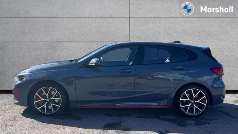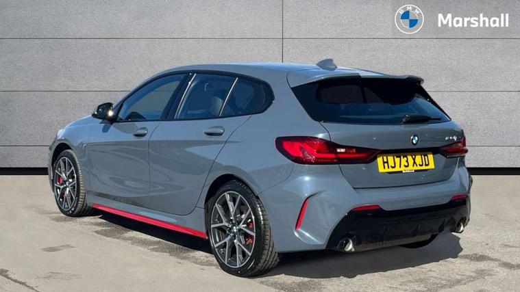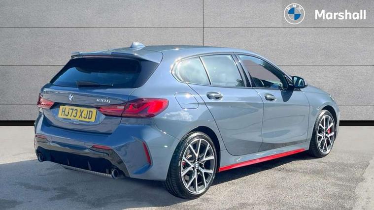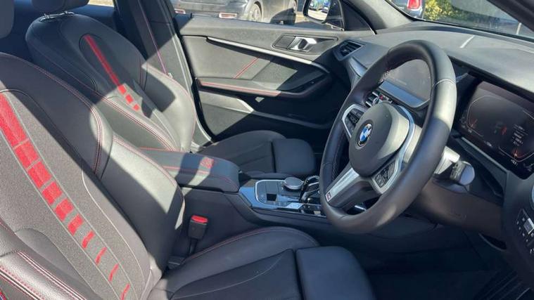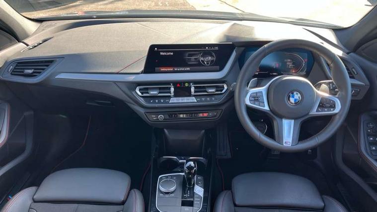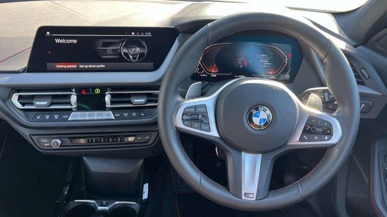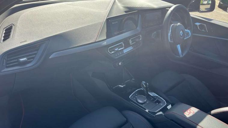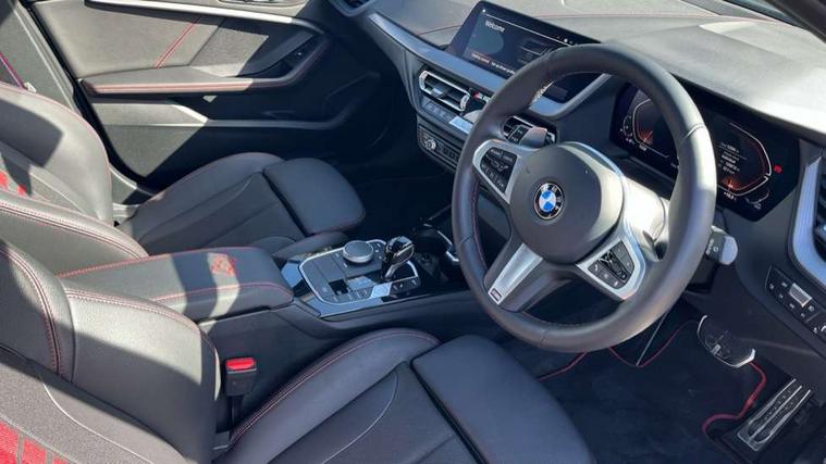Active guard plus, Attentiveness assist, BMW ConnectedDrive online services, BMW Teleservices, Check Control warning system for monitoring of lights and door/luggage compartment open warning, Cruise control with speed limiter, Eco pro mode, Electric power steering with Servotronic steering optimised at all speed ranges, Front axle single joint with specific axle kinematics to minimise drive influences on steering + provide increased rigidity agile driving behaviour, Integrated owners handbook, Lane departure warning system, Oil sensor for level and grade, On board computer, Optimum shift indicator, Personal Profile, Pull away assistant, Rigidly mounted rear subframe - Multi link construction with separate spring / damper configuration and excellent driving characteristics, Speed limit Info including no-overtaking indicator, Aluminium lightweight construction, Anti roll bar front and rear, Balancer shaft, Double VANOS twin scroll turbocharging system, Drive Performance Control, Eight speed sport automatic transmission with gearshift paddle switches, Electronic differential lock, High precision injection, Larger fuel tank capacity (50 litres), M sport suspension with M128i xDrive specific settings, Petrol Particulate Filter, Twin tube gas filled shock absorbers with degressive characteristic curve, VALVETRONIC engine management, DAB Digital radio, Auto dimming rear view mirror, Automatic headlight beam throw control, Automatic windscreen wipers and automatic headlight, Black chrome tailpipe finishers, BMW individual high gloss shadow line with extended content, Body colour door handles, Body colour mirror caps, Body colour roof trims, Chrome 'M' logo side designation, Chrome kidney grille frame with Satin Aluminium struts, Direction indicator side lights in exterior mirrors, Electrically adjustable exterior mirror with mirror adjustment switch on drivers armrest and aspheric on driver side, convex on passenger side, Fading support, Folding side mirrors with auto dimming/folding wing mirrors with auto dimming, Follow me home headlights, Front and rear bumper system with replaceable deformation elements, Front and rear electric windows with open and close fingertip control, anti trap facility and comfort closing, Front door sill finishers in black plastic with M designation in metallic look, Green tinted heat protection glazing, High gloss shadowline window frame, Recess cover mirror frames and B/C pillar embelisher trim, High level third brake light, Integrated front windscreen with washer jets, Kidney frame and struts in high gloss black extended, LED daytime running lights, LED eyebrow turn indicators, Lightweight engineering, Matt black air guide grilles, Matt black wheel arch trim, Model designation on electric bootlid, Nearside reverse light in rear light cluster, Preparation for high beam assistant, Rear fog lights, Rear side wing doors, Rear window wiper, Shark fin antenna, Trailer stabilisation logic, Visible VIN plate, Welcome lighting, 12V power socket in front centre console with blanking plug, 3 rear seat head restraints, 3 seat bench in 2nd row, Anthracite headlining, Black boot net with lashing eyes, Cargo function on 2nd seat row, Child seat ISOFIX attachment for two outer rear seats and front passenger seat with anchorage points, Conditioned based service, Driver and front passenger backrest net on rear, Driver and front passenger seat heating, Driver side folding compartment in instrument panel, Folding rear clothes hook, Four grab handles integrated in roof lining, Front and rear door pockets with bottle holders, Front and rear side armrest integrated into door trim, Front armrest, Front sports seats, Glove compartment, Height adjustable front head restraints, Luggage compartment for bag hooks on left and right, foldable luggage compartment liner and four lashing eyelets, Manual adjust steering wheel, Multi-function controls for steering wheel, Single front passenger seat, Storage compartment in centre console, Storage compartment in luggage compartment, Stowage of the parcel shelf in luggage compartment trim, Sun visors with vanity mirrors and insert tab, Three spoke M sport design multi function leather steering wheel in unique red stitching, Two front centre console cupholders, Two zone automatic air conditioning, Type C two USB ports in rear centre console, Additional interior lighting pack - 1 Series, BMW live cockpit professional pack- 1 Series, Connected pack professional - 1 Series, Interior lights pack - 1 Series, M Sport exterior styling aerodynamics pack - 1 Series, 2 tone horn, 3 point seatbelts on all seats, front pyrotechnic belt tensioners, stopper and belt force limiters, rear coded belt buckles, Airbags - Front driver/passenger, front and rear curtain head protection, front side, manual deactivation of front passenger airbag, Anti lock braking system (ABS) with brake assist, BMW emergency call, Brake drying, Braking readiness, Child proof locking system in rear door, City braking function, Comfort modes, Cornering brake control, Crash sensor activating of airbags, Unlocking doors, hazard warning lights, interior light, safety battery terminal, Driver and front passenger seat belt security check, Dynamic stability control + (DSC+), Dynamic Traction Control - DTC, Electrically operated hand brake including automatic hold function, Front and rear disc brakes, M Sport brakes with red calipers, M Sport seatbelts, Seatbelt warning, Side impact protection, Tyre pressure monitoring system, Warning triangle and first aid kit, Central locking switch for all doors, fuel filler cap and luggage compartment, Deadlocking function system to all doors, Drive away locking system on all doors and luggage compartment with de-activated in iDrive settings, Locking wheel bolts, Remote control with integrated key with High-gloss Black inlay and M designation and 1 button for open/ close lock, window, open luggage compartment, Start/stop button illuminated in centre console with k