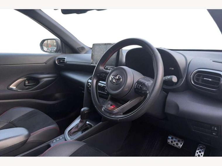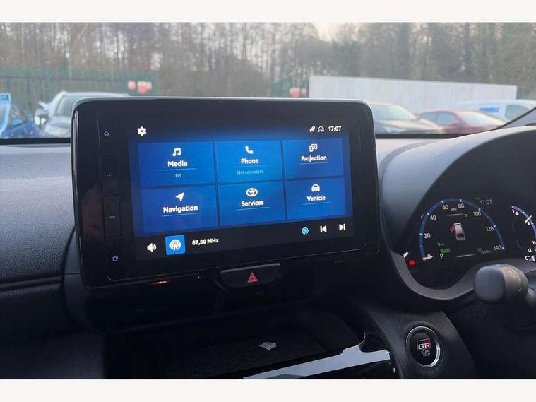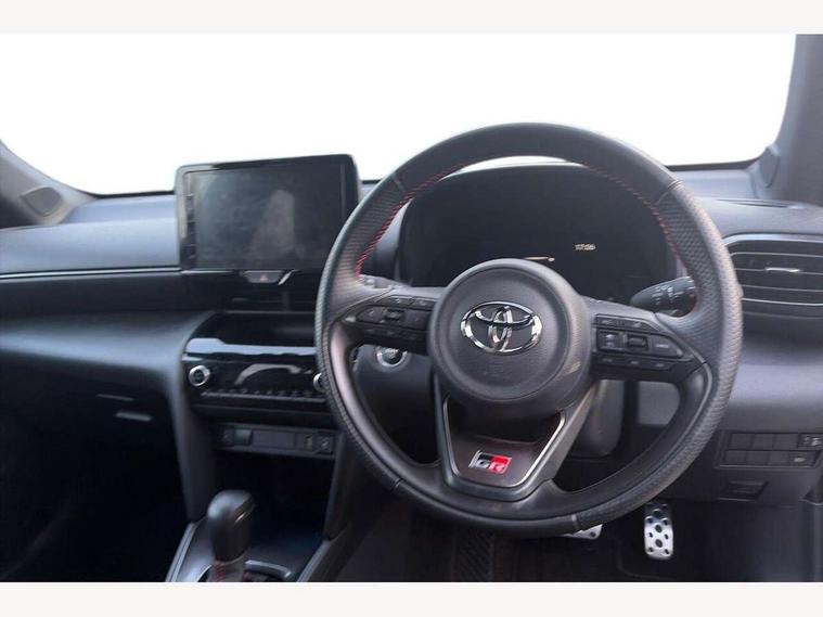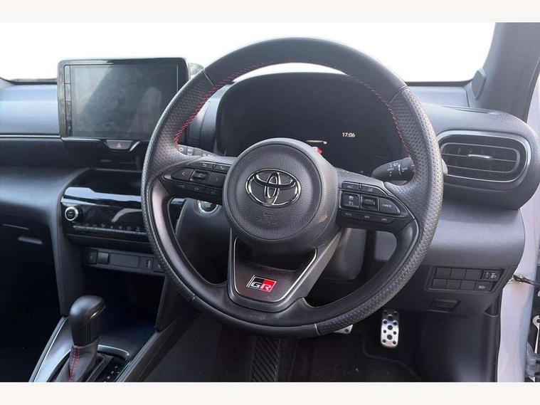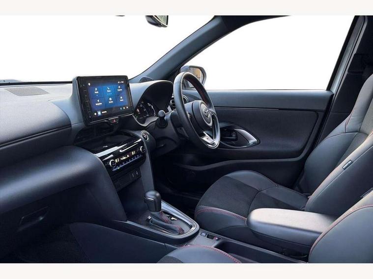 7" Multi information display screen, Adjustable speed limiter, Bluetooth connectivity, Driver attention alert system, eCall emergency system, Electric power steering, Full range intelligent adaptive cruise control, Hybrid system indicator, Key reminder warning, Lane trace assist, Multimedia, audio, telephone and voice recognition switches on steering wheel, My T Connected services, Pre-collision system enhanced with emergency steering assist, Reversing camera, Road sign assist - RSA, GR suspension tuning, Steering assisted vehicle stability control, 6 speakers, DAB Digital radio, USB connection, 3rd brake light, Acoustic windscreen glass, Aluminium roof rails, Anti-jam protection on power windows, Auto high beam [AHB] with on/off switch, Automatic headlights, Automatically retractable door mirrors, Black lower front grille, Black rear bumper, Black rear under run, Black Shark-fin antenna, Black wheel arch mouldings, Body colour door handles, Body colour front bumper, Dark chrome plated insert on upper front grille, Electric adjustable heated door mirrors, Electrochromatic auto dimming rear view mirror, Follow me home headlights, Front and rear electric windows with auto up/down function, Front intermittent wipers, Gloss black upper front grille, Headlight cut off reminder, Indicators integrated on door mirrors, Intermittent rear wiper, LED daytime running lights guide, LED front fog lights, LED front light guide, LED Indicators, LED projector headlights, LED rear light guide, Manual headlight levelling, Noise reduction layer on windscreen, Privacy glass, Rain sensor, Rear LED lights with sequential indicators, Rear side wing doors, Rear spoiler, Rear window defogger, 12v power outlet - front, 12V power point in boot, 2x Rear coat hooks, 3 seat bench in 2nd row, 3 spoke leather sports steering wheel, 40:20:40 split folding rear bench seat, Adjustable speed limiter switch on steering wheel, Black roof lining, Boot light, Central armrest, Centre console in light blue ambent lighting, Driver and front passenger personal lights, Driver and passenger seatback pockets, Dual zone automatic air conditioning, Fabric door trim, Footwell in light blue ambient lighting, Front console box, Front cup holders, Front head restraints, Front sport seats, Glovebox, GR scuff plates, Heated driver and passenger seats, Height adjustable driver's seat, Height adjustable front passenger seat, Hooks for luggage holding belts, ISOFIX child restraint system, Lane departure alert switch on steering control, Leather gearshift, Light blue ambient lighting on front doors, Light on driver and front passenger sun visor, Manual telescopic and tilting steering wheel, Mirror on driver and passenger sun visor, Nanoe-X air purifier, Perforated alcantara/leather upholstery, Pollen air filter, Power adjustable lumbar support on driver seat, Rear cup holders, Rear head restraints, Single front passenger seat, Soft tonneau cover, Storage box under boot floor, Tech pack - Yaris Cross, 3x3 point rear seat belts, ABS+EBD+Brake assist, Driver and passenger central airbags, Driver and passenger front airbags, Driver and passenger side airbags, Electronic parking brake, Emergency brake light system (EBS), Front seat belt reminder, Hill start assist control (HAC), Passenger airbag on/off switch, Pre-collision system with pedestrian and cyclist detection, Rear door child safety locks, Rear passenger side airbags, Rear seat belt reminder, Traction control, Tyre pressure warning system, Immobiliser, Intrusion alarm, Keyless smart entry with push button start, Power door locks, Power passenger window lock, Remote door lock, Tyre repair kit,