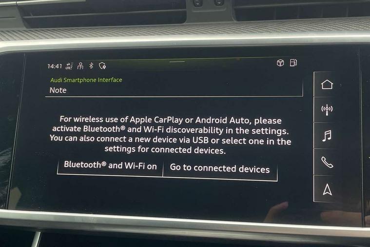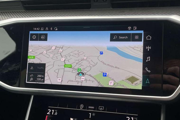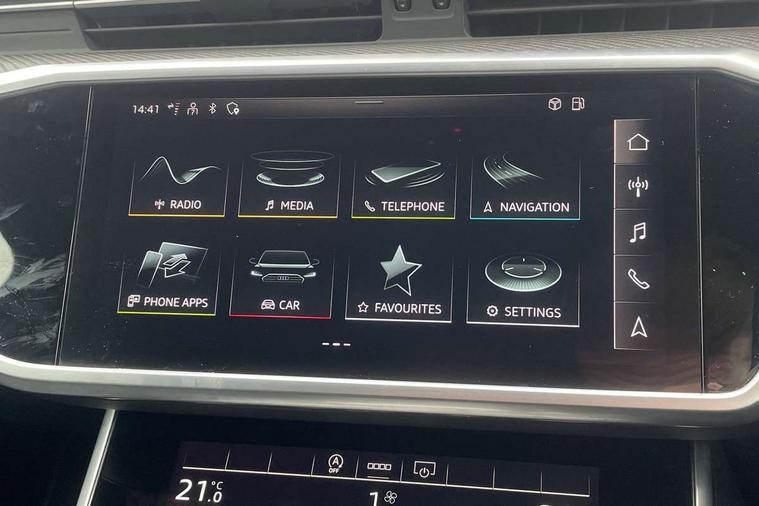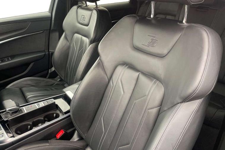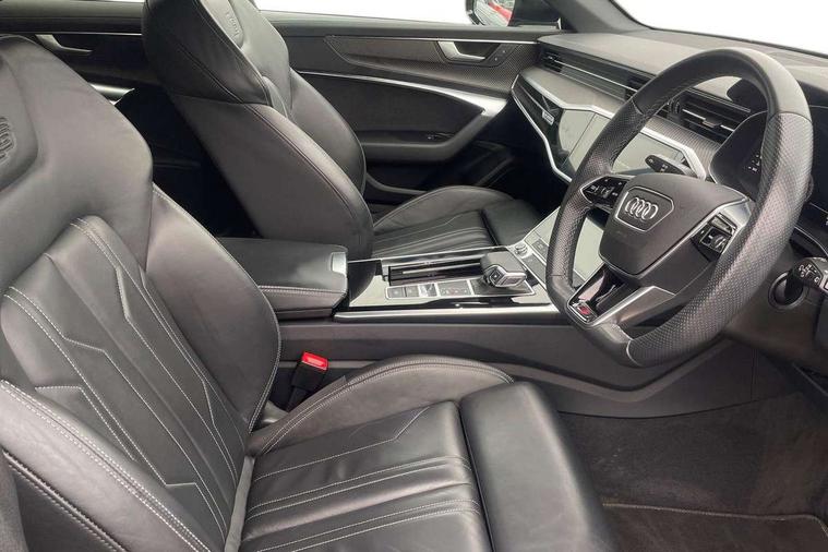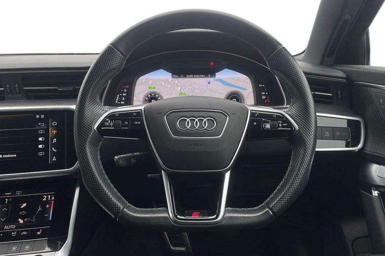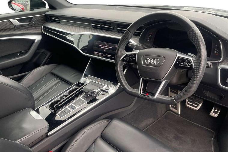 7" high resolution colour driver information display system, Audi connect safety and service (e-call), Audi connect with Amazon Alexa Integration, Audi drive select, Audi parking system plus - acoustic and visual park assist system for front and rear, Automatic start/stop system with coasting functionality, Bluetooth interface, Lane departure warning system, Power operated tailgate, Progressive steering, Rear view camera, Service interval indicator, Smartphone interface includes wireless Apple carplay/Android Auto, Voice control system, 12V Mild hybrid, Quattro on demand, Sports suspension, Audi front music interface, Audi sound system, Auxiliary input socket, DAB Digital radio, USB connection, All weather LED headlights, Black roof rails, Electric front/rear windows, Frameless auto dimming interior rear view mirror, Front intermittent wipers, Gloss black highlights on the exterior area of the Audi Single frame, Gloss black highlights on the front and rear bumpers, Gloss black highlights on the radiator grille, Gloss black highlights on the side windows trim strips, Headlight washers, Heat insulating darkened glass in side and rear windows, Heat insulating glass in windshield, LED rear lights, LED signature front daytime running light, LED third brake light, Matt black rear diffuser with diffuser strip and tailpipes in chrome, Matt black side air intake grille with inlay in matt aluminium, Privacy glass, Rain and light sensors, Rear roof spoiler, Rear side wing doors, Rear wiper, 2 zone deluxe electronic climate control, 4 way electric lumbar support for driver and front passenger, 40/20/40 split folding 3 rear seat bench in 3 parts with rear centre armrest, Black cloth headlining, Black front and rear carpet floor mat, Black steering wheel insert, Electrically adjustable front seats with driver memory, Front centre armrest, Front head restraints, Heated front seats, Height/reach adjust steering wheel, Illuminated door sill trims with S logo, Illuminated sun visors with vanity mirrors, ISOFIX child seat mounting and Top Tether with front passenger airbag deactivation, Leather gear knob, Luggage compartment system, Rear headrests, Single front passenger seat, Stainless steel pedals and foot rest, LED Interior Ambient Lighting Pack - A6, Non smoking pack - A6, Technology pack - A6, 3 point seatbelts on all seats, Airbags - Front side, front and rear including head, Audi pre-sense front, Black seatbelts, EBD - Electronic brakeforce distribution, Electromechanical parking brake, Electronic Stability Control (ESC) including ABS, ASR and EDL, Extended pedestrian protection measures, Manual child proof rear door locks, Seatbelt monitoring, Tyre pressure warning light, Warning triangle and first aid kit, Anti theft alarm with tow away protection, Anti-theft wheel bolts and wheel loosening detection, Immobiliser, Keyless Go, Remote central locking, Carbon twill inlays, 20" 5 V spoke star design Audi sport cast aluminium alloy wheels in matt titanium look,