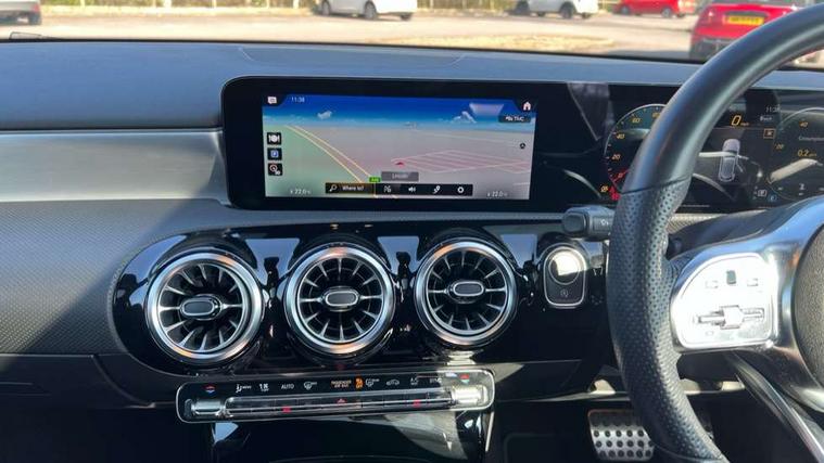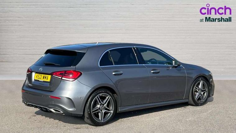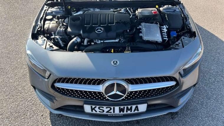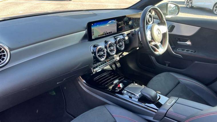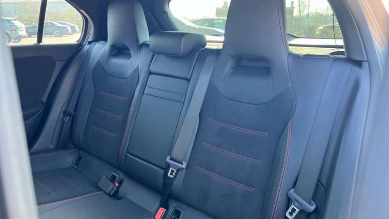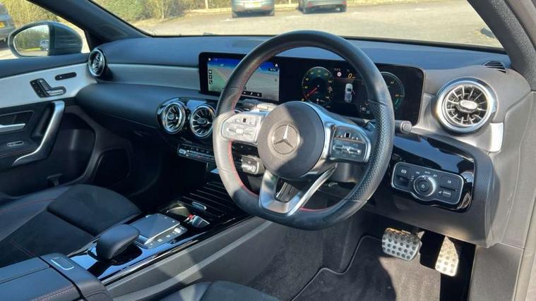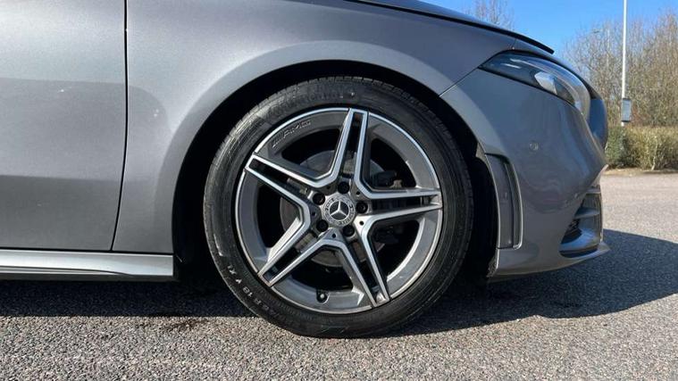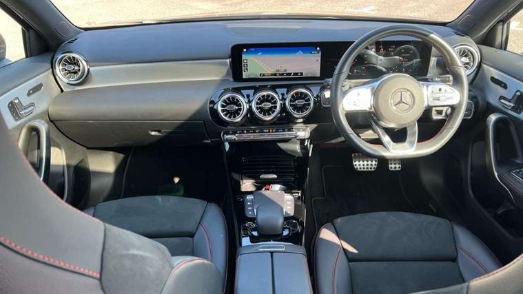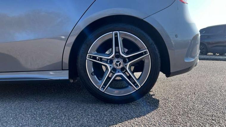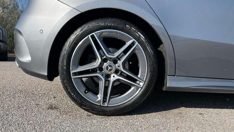 10.25" Digital instrument cluster display screen, 10.25" media display, 180 degree rear view camera with parking guidelines, Active parking assist with visual and audible warning of detected obstacles, Attention assist, Brake pad wear indicator warning light, Car wash mode, Direct steering, Dual bluetooth interfaces, DYNAMIC SELECT with a choice of driving modes (ECO, Comfort, Sport and Individual), ECO start/stop function, Fluid level warning indicator for fuel, oil, coolant and washer fluid, Hard-disk navigation, Hey Mercedes Voice activation, Lamp failure indicator, MBUX augmented reality for navigation, Mercedes me connect including emergency call system, accident recovery, breakdown and maintenance management, Mercedes me remote services, Outside temperature gauge, Owners manual in English, Pre-installation for private car sharing, Preinstallation for Mercedes Benz link, Service indicator (ASSYST), Smartphone integration with Apple CarPlay and Android auto, Traffic sign assist, Trip computer, Ultrasonic sensors positioned in the front and rear bumpers, Wireless charging, Lowered comfort suspension, Rear axle torsion beam, 10 speakers, 2 USB ports (type C) in rear stowage compartment and one in front of center console, DAB Digital radio, MBUX multimedia system with DAB digital radio and touchpad including satellite navigation, Mercedes-Benz advanced sound system - 225W, 4 Electric Front and Rear windows, Adaptive brake lights, AMG bodystyling - Front apron with splitter in chrome, rear apron with chrome trim and chrome visible trim elements in tailpipe, Black weather strip, Body colour bumpers, Body colour door handles, Body colour side skirt, Body coloured door mirrors, Chrome beltline trim, Diamond radiator grille with chrome pins and silver louvre + chrome insert, Electric adjustable and heated door mirrors with integrated LED side indicators, Exhaust system - Twin visible tailpipes in polished stainless steel, Headlamp assist automatic headlamp activation, Heated glass rear windscreen + timer control, LED high performance headlamps with integrated LED daytime running lights, LED tail lamp, LED third brake light, Multibeam LED with adaptive highbeam assist plus, Panoramic sliding sunroof, Privacy glass, Radio aerial, Rain sensing windscreen wipers with two sensitivity settings, Rear fog lights, Rear wiper, Window line trim strip in chrome, 3 Spoke flat bottom leather multi function steering wheel with perforated leather in grip area, 40:20:40 split folding rear seats, Artico man-made leather/Microfibre Dinamica upholstery with red contrast stitching, Auto Mercedes-Benz child seat recognition sensor, Black air vents with surround in silver chrome, Black roof lining, Brushed stainless steel sports pedals with rubber studs, Controller on centre console with chrome surround, Electrically adjustable front memory seats including lumbar support, Floor mats with stitched edging and AMG lettering, Front centre armrest with storage compartment, Front seat backs luggage nets, Front seat cushion length adjustment, Galvanished gear shift paddles on steering wheel, Heated front seats, Height/reach adjustable steering column, Illuminated front door sills with changeable cover, Interior lighting - 64 colour Ambient lighting, Interior mirror with reading lamps in black and frameless, Rear armrest with 2 cupholders, Rear head restraints, Seat occupancy sensor for front passenger seat, Sports seats with integrated headrests, Stowage compartment in centre console with retractable cover, Sunvisors with illuminated vanity mirrors, Touchpad on center console, Twin front cupholders, Two zone thermotronic luxury automatic climate control, Light and sight pack - A Class, Mirror package - A Class, Seat comfort pack - A Class, 3 rear 3 point seatbelts, ABS with Brake Assist, Active bonnet, Adaptive brake assist with hold function and hill start assist, Black seatbelts, Childproof locks manually operated for rear doors and electrically operated for rear power windows, Crash responsive emergency lighting, Driver and passenger head and side airbags, Drivers knee airbag, Dual stage driver/passenger airbags, Electronic parking brake, ESP curve dynamic assist, ESP with ASR, Front and rear seatbelt reminder, Front brake callipers with Mercedes Benz lettering, ISOFIX and top tether child seat fixing points in two outer rear seats, Tyre pressure monitoring system, Warning triangle and first aid kit, Window airbags, Alarm system/interior protection/immobiliser, Keyless entry lock/unlock, Keyless Go, Remote central locking and crash sensor with emergency opening function, Urban guard vehicle protection system with immobiliser and interior protection, Light aluminium with longitudinal grain interior trim, 18" AMG 5 twin spoke light alloy wheels in titanium grey with highsheen finish, Summer tyres, Tirefit sealant kit,