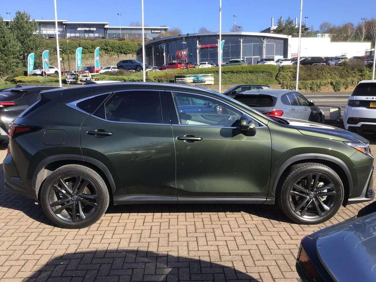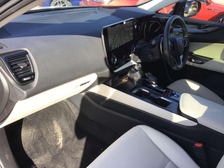 360 degree panoramic view monitor, 7" colour multi information display, 7" display in instrument binnacle, Blind spot monitoring with rear cross traffic alert, Bluetooth telephone connectivity, Digital speedometer, Drive mode select (Eco, Normal, Sport), Driver monitor camera, eCall emergency system, Electric speed sensitive power steering, Emergency driving stop system, Emergency steering assist, Front cyclist detection, Front motorcycle rider detection daytime, Head up Display, Intelligent parking sensors - 4 front and 4 rear with object and pedestrain detection, Intersection turn assist, Lane change flasher function, Lexus link connect - Cloud based navigation, cloud based voice assistant, always online, 14" HD touchscreen, embedded nav and faster CPU, Pre-crash system, Proactive driving assist (PDA), Push button starter, Reversing camera with back guidelines, Road sign linked speed limiter, Service interval indicator, Tailgate, Tailgate electric lift and close, Tailgate height memory function, Tazuna cockpit with 7" improved meters display, 10" HUD and capacitive touch steering wheel switches, Trip meter, Variable ratio rack steering, Wireless Apple CarPlay/Android Auto, Wireless Smartphone charger, 5m mode 3 charging cable, 6.6 kW onboard charger, All Wheel Drive (AWD), Hybrid automatic transmission, Key cylinder protector, Predictive efficient drive, Standard suspension, Vehicle Dynamics Integrated Management (VDIM), Vehicle Stability Control (VSC), 10 speakers, 3 USB Type-C charging ports, DAB Digital radio, 4 eye LED headlight with adaptive high beam, Acoustic glass (front side and windshield glass), Active brake lights, Auto dimming interior rear view mirror, Auto levelling headlights, Automatic headlights, Automatic rear flashing hazard lights, Black roof, Body coloured door handles, Body coloured door mirrors, Body coloured roof spoiler, Double hidden exhaust pipes, Electrically adjustable door mirrors, Electrochromatic driver's door mirror, Front and rear one touch power windows, with anti-jam protection, Heated and auto folding door mirrors, Hidden exhaust in rear bumper, LED brake lights and rear lights with emergency brake signal, LED cornering lights, LED daytime running lights, LED front fog lights, LED front indicators, LED rear fog lights, Muffler, Optical rear view mirror, Power back door with kick sensor, Privacy glass, Puddle lights, Radiator grille, Rain sensor windscreen wipers, Rear side wing doors, Rear wiper, Roof rails, Shark fin antenna, Silver roof rails, Stainless steel scuff plates with LEXUS name, Ultra Violet (UV) and heat insulating tinted glass, 12V accessory port centre console and luggage compartment, 12V socket in front and boot, 12V socket in rear, 2 cupholders in front centre console, 2 way manually adjustable front headrests, 2 way manually adjustable rear headrests, 2 x fixed shopping bag hooks in boot, 2 x sun visors with vanity mirror and lamp, 3 seat bench in 2nd row, 3 spoke leather trimmed steering wheel, 4 way electrical lumbar adjustment for driver, 4 x tie down hooks in the boot, 60/40 split folding rear seat, Adjustable rear seat backrest, Automatic air circulation control, Card holder installed in driver and passengers sun visors, Centre armrest with storage box, Chrome side windows frame moulding, Driver seat easy entry and exit function, Driver seat memory function, Driving position memory for 3 users (seat, steering wheel & door mirrors), Dual zone climate control air conditioning system with humidity sensor, Electric adjustable steering column, Electronic climate control with nanoeTM, Front and rear textile carpet mats, Front passenger seat, Glove box with key, Heated and ventilated front seats, Heated rear seats, Heated steering wheel, Illuminated entry system, Leather gearshift, LED ambient lighting, LED boot light, LED Glovebox light, LED interior illumination, Lexus climate concierge, Luggage cover manually folding, Overhead front console sunglasses holder, Paddle shifts, Rear centre armrest with 2 cupholders, S-Flow technology for climate control, Smooth leather upholstery, Steering wheel easy entry and exit function, Steering wheel mounted customizable touch control, USB port (Type - A) front centre console, Whiplash Injury Lessening (WIL) feature (active headrest) for seats, 18" front disc brake, 3 point ELR front seatbelts with pretensioners, 3x3 point rear seat belts, ABS, Acoustic vehicle alerting system, Adjustable seat belt anchor points, Driver 2 stage airbag, Driver/front passenger side airbags, Drivers knee airbag, E-Latch with safe exit assist, EBD + Brake Assist, ECB (Electronically Controlled Brake System), Electronic parking brake, Front and rear curtain shield airbags, Front center airbag, Front passenger seat cushion airbag, Front passenger single stage airbag, Hill assist control, Lexus safety system - dynamic radar cruise control, pre collision system day and night, lane tracing assist, road sign, automatic high beam, OTA, Manual rear child locks, Outer rear seatbelt pretensioners, Passenger airbag cut-off device, Rear wheel brake - 17inch discs, Safety kit, Traction control, Tyre pressure warning with auto location, Anti-theft system with alarm, intrusion sensor, glass breakage sensor, tilt sensor and engine immobiliser, Double door lock, Locking wheel nuts, Smart entry ( front/rear/boot), Smart key, Speed sensitive auto door locking, Ultra Wide Band (UWB) Anti-theft system, VIN Window etching, Wireless door lock, 3D prism black Inlay, Organic inlay, Extended mobility tyres, Resin moulding wheel arches, Run flat tyres,